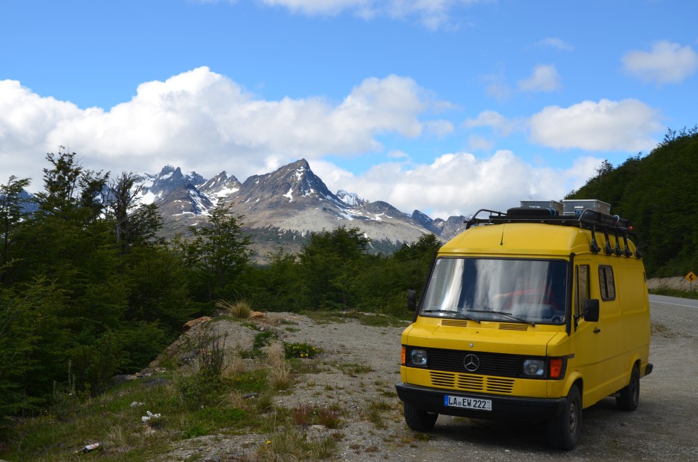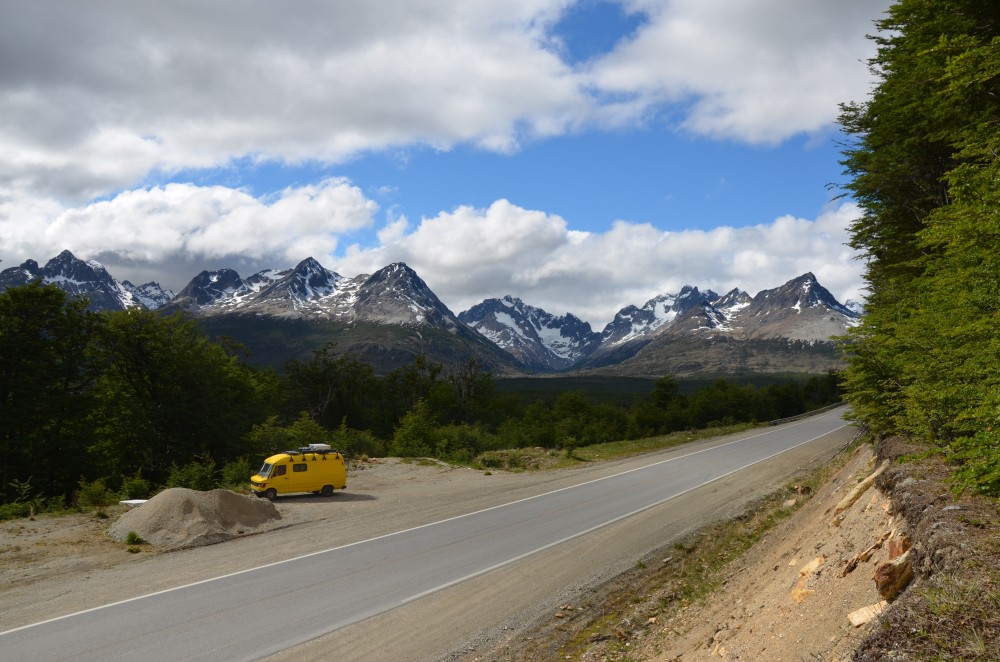 Nach einer Nacht in Rio Grande ging es dann weiter… Nach Ushuaia. Ans „Ende der Welt“. Es war schon ein tolles Gefühl. Nach 6 Wochen und fast 6000 Kilometern Fahrt erreichten wir unser erstes Etappenziel. Die Landschaft hier in Feuerland ist atemberaubend schön. Endlose Weiten, Flüsse die sich durch schneebedeckte Berge schlängeln… es ist windig, dennoch sonnig aber kalt zugleich.