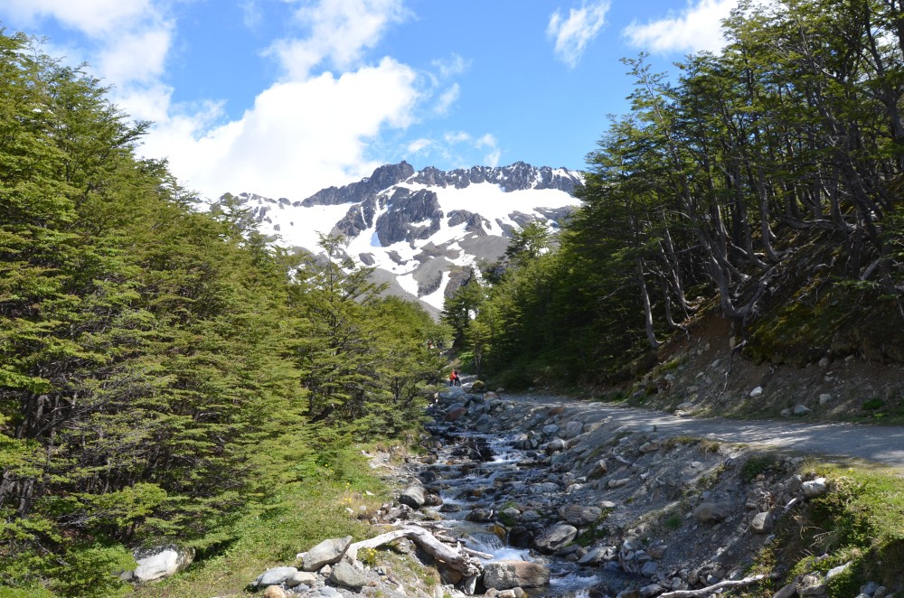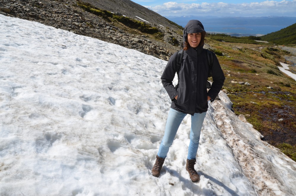 Wir übernachteten an einem Parkplatz, der den Startpunkt einer Wanderung zum „Glaciar Martial“ bildet. In der Nacht bekamen wir zum ersten Mal RICHTIGE Windböen zu spüren. Es war echt heftig… Erwin schaukelte richtig stark und wir hatten kurzzeitig Angst, dass der Wind unser „Dach abdeckt“. Doch zum Glück ist alles gut gegangen. Man muss hier in Patagonien schon wirklich gut aufpassen. Der Wind wurde natürlich immer stärker, je weiter wir in den Süden kamen. Von daher wussten wir ja was uns erwartet. Aber ganz im Süden ist es nochmal deutlich schlimmer. Die Windböen sind beim Fahren besonders gefährlich, wenn man an LKW´s im Windschatten vorbeifährt oder nach Hügelketten wieder aus dem Windschatten rausfährt. Beim Öffnen der Autotüren muss man auch wirklich jedes Mal daran denken, woher der Wind kommt und dass man die Türe nicht loslässt. Es kann schon mal passieren dass eine Windböe die Türe wegreisst und diese dann ein paar Meter fliegt. Wäre uns fast einmal passiert. Naja, zurück zum Gletscher. Der Gletscher liegt in 1050 m Höhe und bietet angeblich auch eine super Panoramaaussicht über Ushuaia und die angrenzenden Berge.