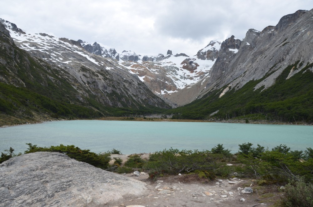 Nach einer zweiten Nacht in Ushuaia wollten wir wieder weiter ziehen und machten uns auf den Weg Richtung Norden. Wir haben dann ungefähr 20 Kilometer außerhalb von Ushuaia noch eine Wanderung zur „Laguna Esmeralda“ gemacht. Dort bekamen wir nochmal das facettenreiche Feuerland aufgezeigt. Wirklich sehr schön. Leider ohne Sonnenschein, aber auch der Regen hat uns nicht erwischt. Die Laguna Esmeralda ist wirklich sehr sehenswert. Eine türkisblaue Lagune umringt von Bergen. Wie im Bilderbuch.