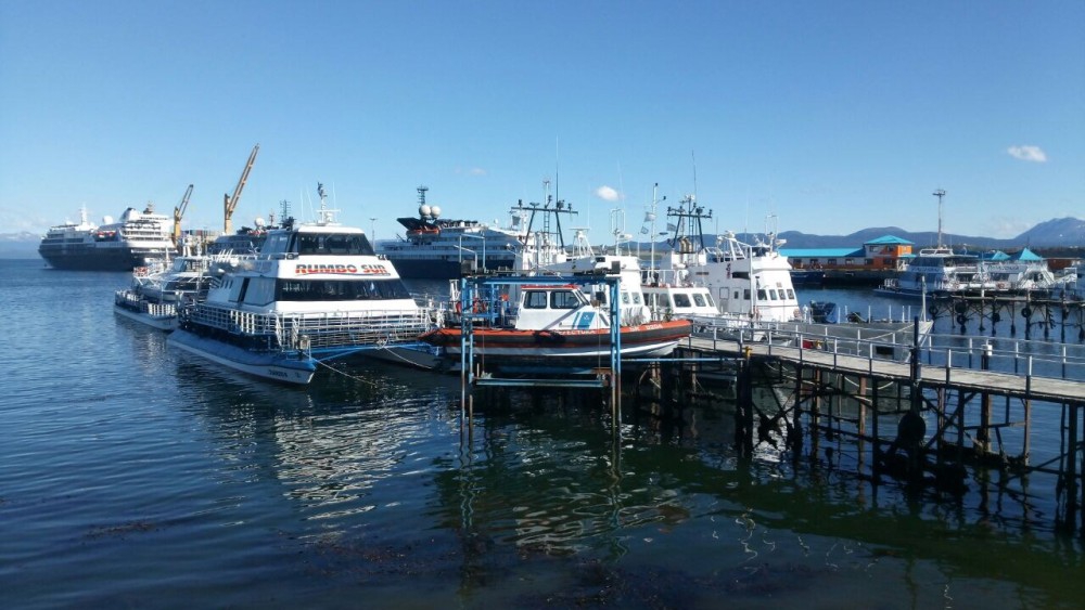 Ushuaia an sich ist relativ unspektakulär. Es gibt eine große Hauptstraße mit Restaurants, Souvenir Geschäften und Outdoorläden. Die Preise natürlich dementsprechend gehoben in einer derart touristischen Stadt. Es geht ja hauptsächlich um das Gefühl in der südlichsten Stadt der Welt gewesen zu sein. Was wir auf jeden Fall machen wollten war zum Einen der Must-Have Stempel „Fin del Mundo“ im Reisepass (erhätlich in jeder Touristen Info) und zum Anderen eine oder zwei Wanderungen um Ushuaia. Natürlich haben wir uns auch Ushuaia an sich angesehen, doch richtig tolle Sights gibt es hier weniger. Uns haben jedenfalls die Schiffe am Hafen sehr beeindruckt. Am liebsten hätten wir gleich an einem der unzähligen Schalter am Hafen einen „Last-Minute“ Trip zur Antarktis gebucht. Das wär doch mal was… doch natürlich geht das nicht einfach so. So ein Trip dauert mehrere Tage, bedarf gründlicher Planung und kostet ein Vermögen. Vielleicht im nächsten Leben…