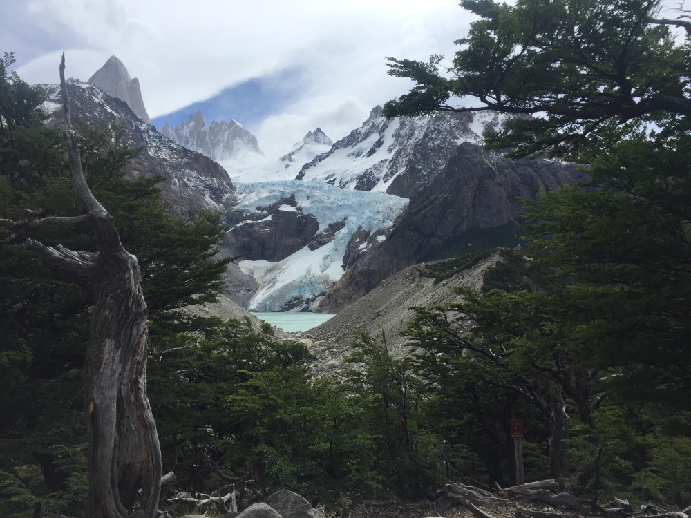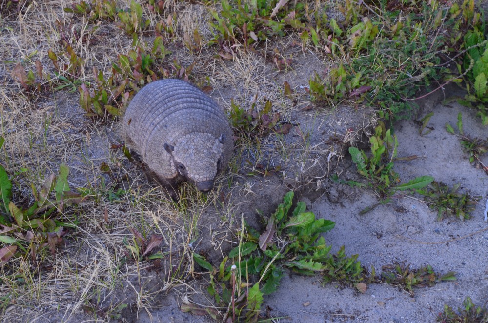 Das Ende vom Lied… nach 20!!! Kilometern waren wir wieder beim Erwin. Wir gingen natürlich nicht nur die 9 einfachen Kilometer, sondern dann auch noch „weil wir ja nur einmal hier sind“ den letzten steilen Kilometer bis zu der Laguna. Die Aussicht wollen wir euch an dieser Stelle natürlich nicht vorenthalten. Es war wirklich sehr schön da oben, und wir hatten diesmal auch wieder ein super Wetter. Normalerweise ist der Monte Fitz Roy meistens von Wolken umzingelt sodass man den Gipfel nur selten zu Gesicht bekommt. Wir hatten aber die ganze Zeit eine Super Sicht auf den Berg samt Gipfel. Den Rückweg wählten wir so, dass wir beim Gletscher „Piedras Blancas“ vorbei kamen. Beim Abstieg machten sich dann auch noch zahlreiche Alterungserscheinungen bemerkbar (Knie, Leiste, Füße) und wir sind völlig kaputt aber zufrieden am Abend am Parkplatz angekommen. Da hat uns tatsächlich auch noch das Gürteltier da unten besucht. Es war von uns recht unbeeindruckt und hat sich einfach mal am Parkplatz umgesehen.