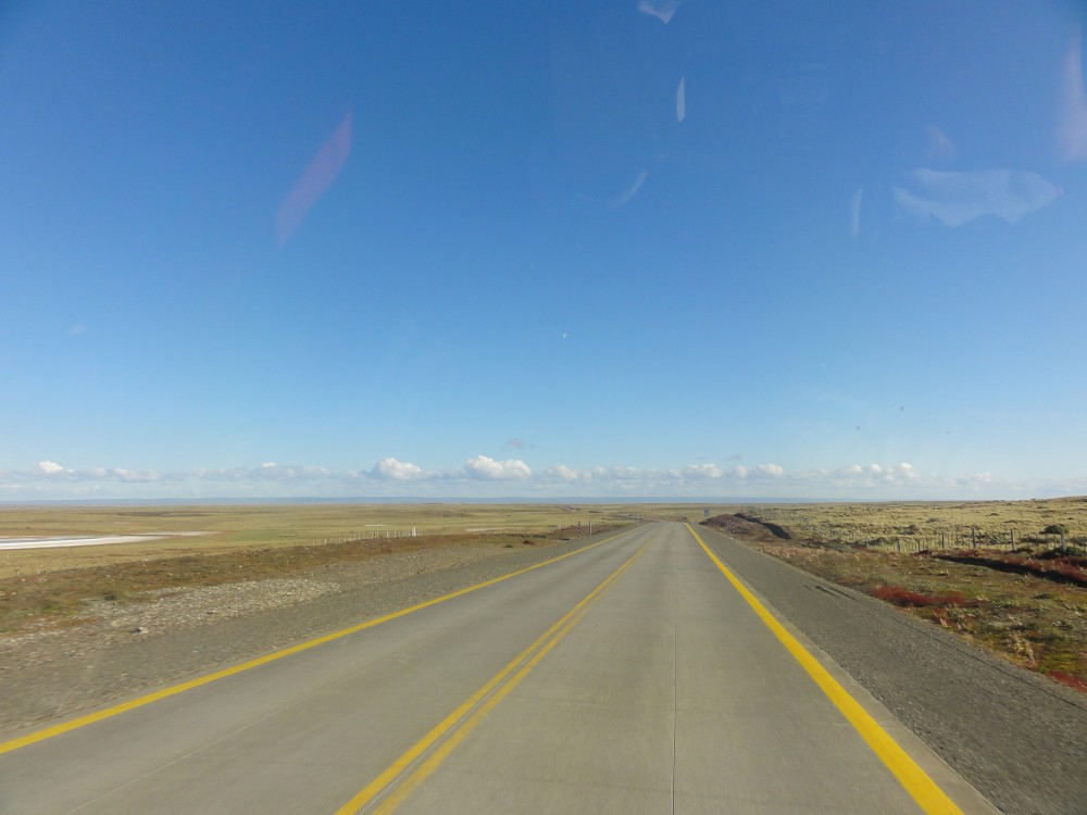 Unser Weg führte entlang der RN3 zurück zur Magellan Fähre. Danach wieder zum Grenzübergang nach Chile und diesmal fuhren wir weiter Richtung Puerto Natales. Diesen Ort hatten wir uns als nächstes Ziel gesteckt, da wir in den Nationalpark „Torres del Paine“ fahren wollten. Der erste Kontakt mit Chilenen war übrigens äußerst positiv. Neben der Tatsache, dass die Straßen im Gegensatz zu Argentinien um Welten besser sind, kamen wir an dem Abend recht spät (ca. 22:00 Uhr) an einer ganz kleinen Tankstelle mitten im Nirgendwo an und hofften auf Diesel. Der Tank war mittlerweile leer und wir hätten unsere Reserven anbrechen müssen. An der Tankstelle angekommen war nur ein Chilene, der bereits alles abgesperrt hatte, und uns mitteilte dass die Tankstelle schon um 20:00 Uhr schließt. Schade… wir parkten auf dem Tankstellengelände und holten einen Reservekanister raus. Bis Puerto Natales hätte es auf jeden Fall noch gereicht, doch wie wir ja schon gelernt haben sollte man doch jede Gelegenheit nutzen um zu tanken, und in Chile angeblich noch mehr als sonst wo. Der Chilene kam zu uns zurück und sagte plötzlich, dass wir gerne noch Diesel haben können, er würde extra für uns nochmal aufmachen. Das war natürlich sehr nett und wir fühlten uns sehr freundlich in Chile empfangen. Nach einem kurzen Smalltalk mit dem Tankwart fuhren wir weiter. Erst gegen Mitternacht haben wir unseren Schlafplatz an einem Rastplatz in einem ganz kleinen Ort bezogen. Es folgte die bisher kälteste, stürmischste und schlafloseste Nacht.