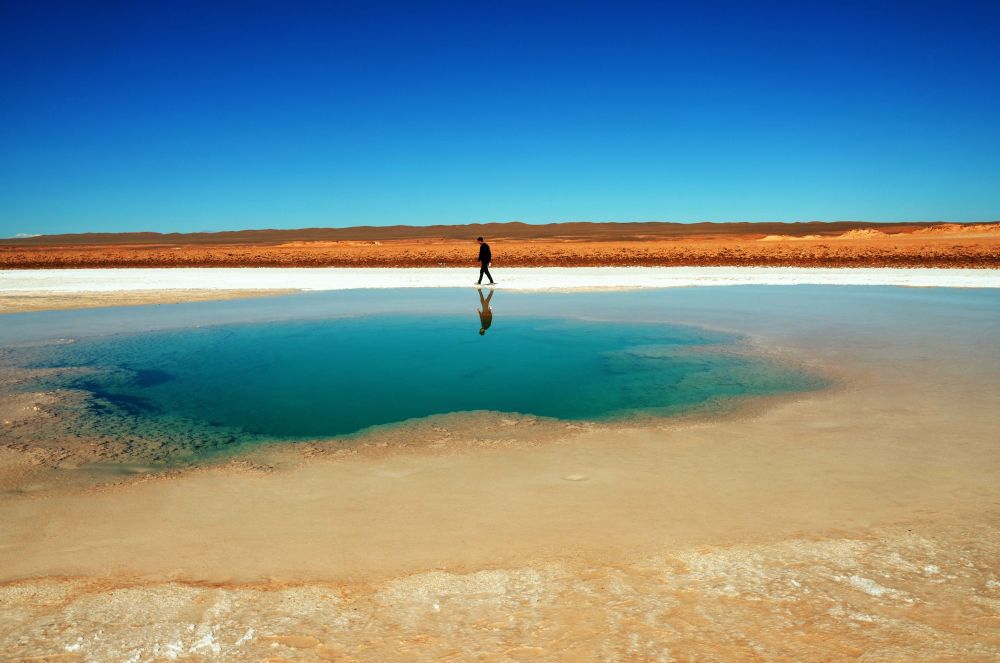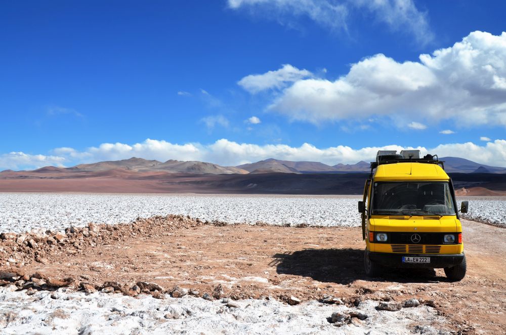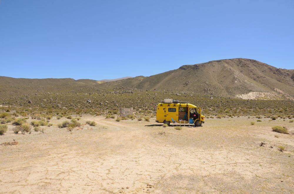 Die gute Nachricht – wir kamen aus dem Hexenkessel wieder erfolgreich heraus. Die steilen und engen Serpentinen (Tres Curvas) nach Antofallita haben unserem Erwin zwar wieder richtig zugesetzt, doch wir haben die 4300 Meter hohe Steigung zum Salar de Arizaro ohne Probleme bewältigt. Die Strecke bis Tolar Grande war landschaftlich gesehen der schönste Teil der verganenen Tage. Einsame Bergstrecken, der schier endlose Salar de Arizaro, eine Pyramide mitten im Salzsee sowie die leuchtend blauen Ojos del Mar haben die Zeit in der Puna für uns auf jeden Fall unvergesslich gemacht. Die Straßen haben uns und vor allem Erwin einiges abverlangt – doch wir würden es wieder tun. Nachdem wir in Tolar Grande noch eine letzte Nacht bei den Ojos del Mar verbrachten, ging es wieder zurück Richtung Salta. Über die Siete Curvas (sieben Haarnadel Serpentinen) und durch das Tal Desierto del Diablo fuhren wir Richtung San Antonio de los Cobres. Die Stadt kannten wir bereits von der Überquerung des Paso Sico und wollten dort übernachten. Als wir dort ankamen war es bereits bitterkalt und die Nacht wäre wohl noch wesentlich kälter geworden. De Stadt liegt auf 3800 Metern Höhe, da kann es in der Nacht gerne gegen 0°C gehen. So entschieden wir uns noch die 100 Kilometer Richtung Salta runter zu fahren. Eine gute Entscheidung, da wir auf dem Weg einen netten Stellplatz direkt am Fluss gefunden haben. In Salta lassen wir Erwin erst mal Außen gründlich reinigen, da wir ja doch einige Kilometer durch den Salzsee gefahren sind. Wir bereuen es nicht durch diese einsame Gegend gefahren zu sein. Es war ein besonderes Abenteuer mit einer unvergleichbaren Landschaft.