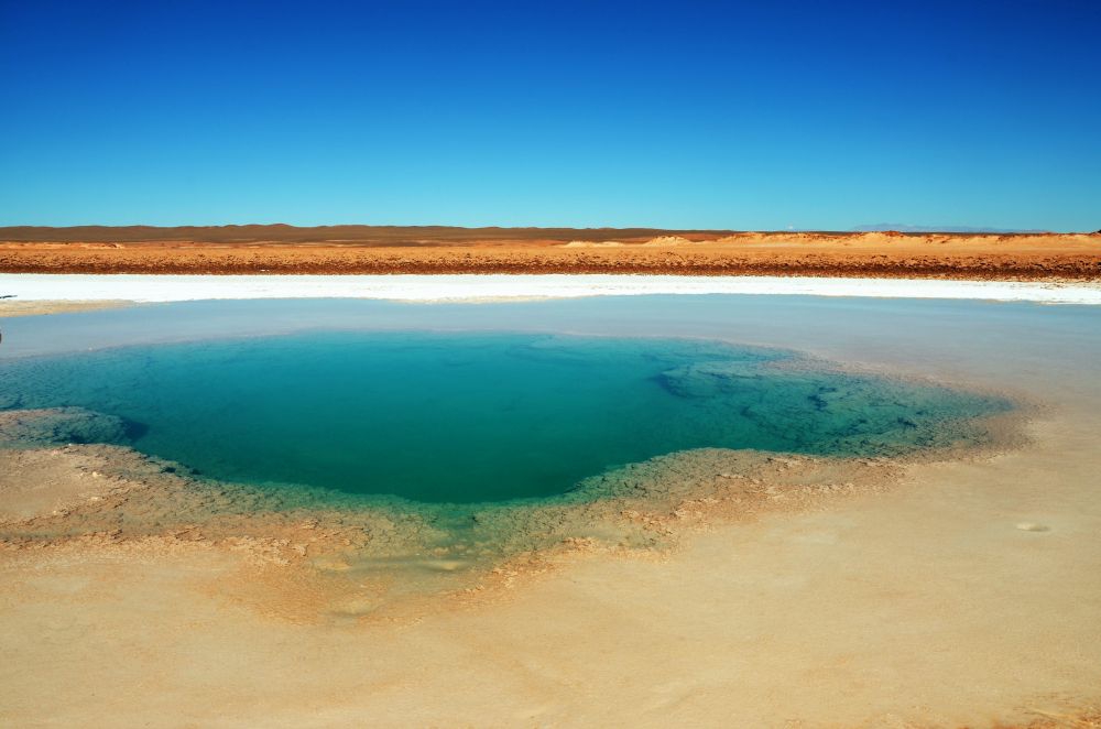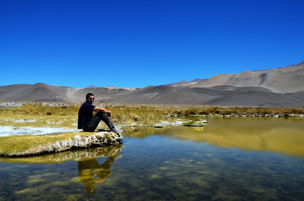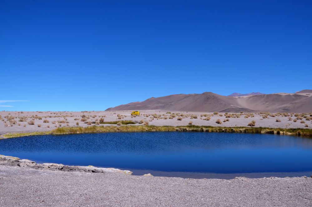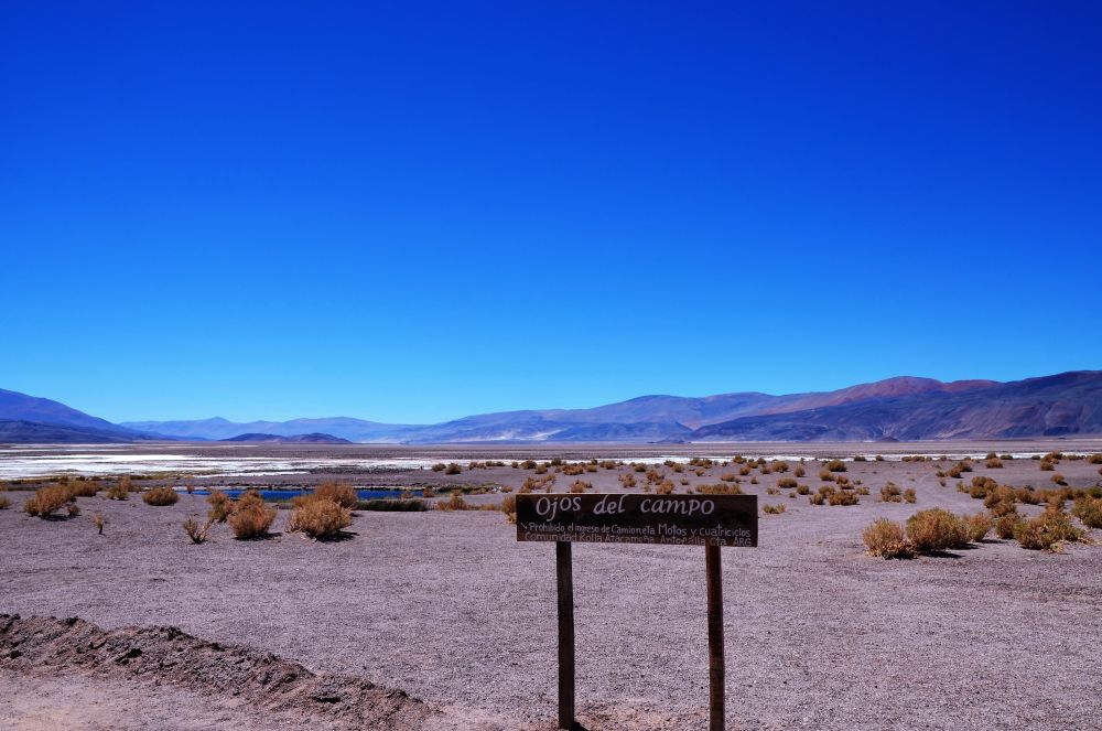 Nach der Anstrengung des Vortages kamen an Tag 5 nur etwa 16 Kilometer zusammen. Für die wir aber trotzdem fast eine ganze Stunde gebraucht haben. Von Antofalle bis zu den Ojos del Campo geht es südlich am Salar Antofalle entlang. Die „Straße“ besteht zum Großteil aus Wellblech gemischt mit Tiefsand. Schaufel und Sandbleche blieben zum Glück unbenutzt, es war aber hin und wieder grenzwertig. Die Ojos del Campo sind „Augen“ die aus ehemaligen Geysiren im Salzsee entstanden sind. Sie haben unterschiedliche Größen und leuchten je nach Tageszeit in verschiedenen Farben. Bei uns in Bayern würde man wahrscheinlich einfach „runder Weiher“ dazu sagen, aber hier sind es eben Ojos del Campo 😉 Da der Platz vor den Ojos sich gut als Übernachtungsmöglichkeit anbot blieben wir eine Nacht zum Ausruhen, bevor es die nächsten unüberwindbaren Pässe Richtung Norden ging. Ein bisschen mulmig war uns zu diesem Zeitpunkt schon, da wir in jede Richtung von Antofalla aus einen Pass bzw. eine steile Bergstraße überwinden mussten. Wie eingekesselt quasi. Züruck ging es nicht mehr, da die Straße wesentlich steiler zurück ging als der Abschnitt an dem wir fast scheiterten. Nach einer windigen, kalten Nacht an den Ojos starteten wir in den sechsten Tag unseres Abenteuers.
