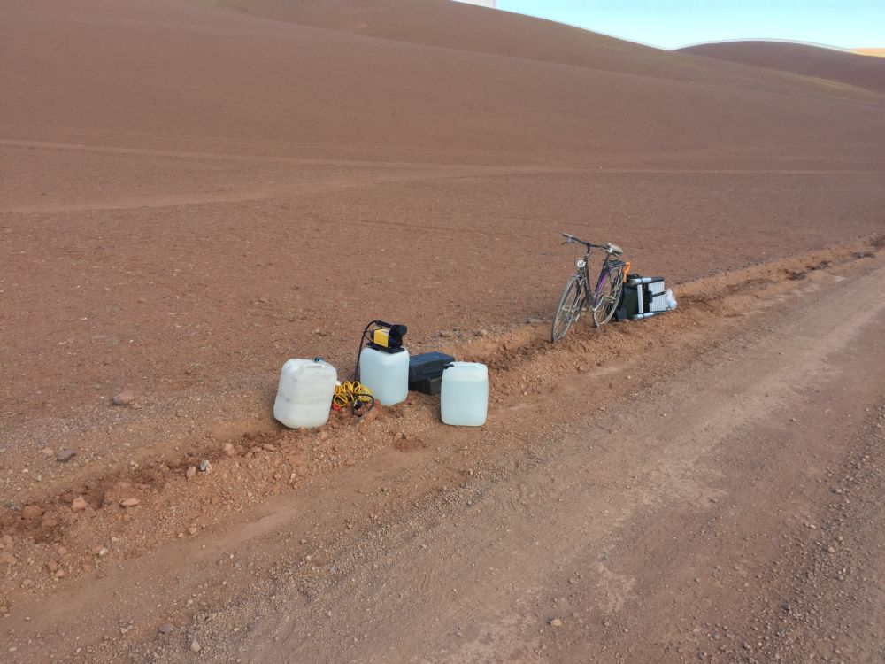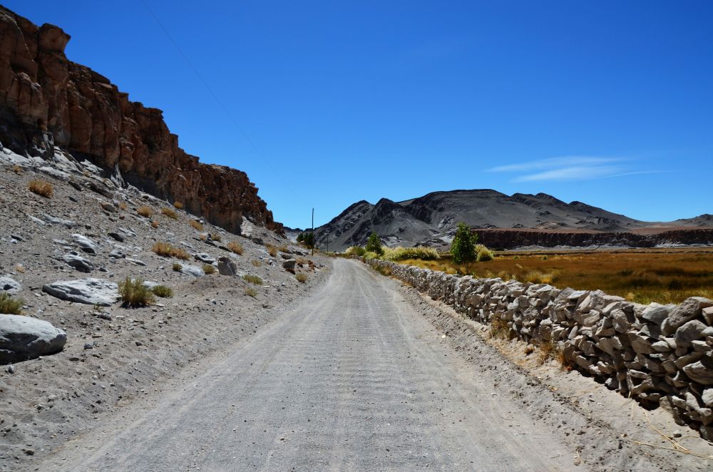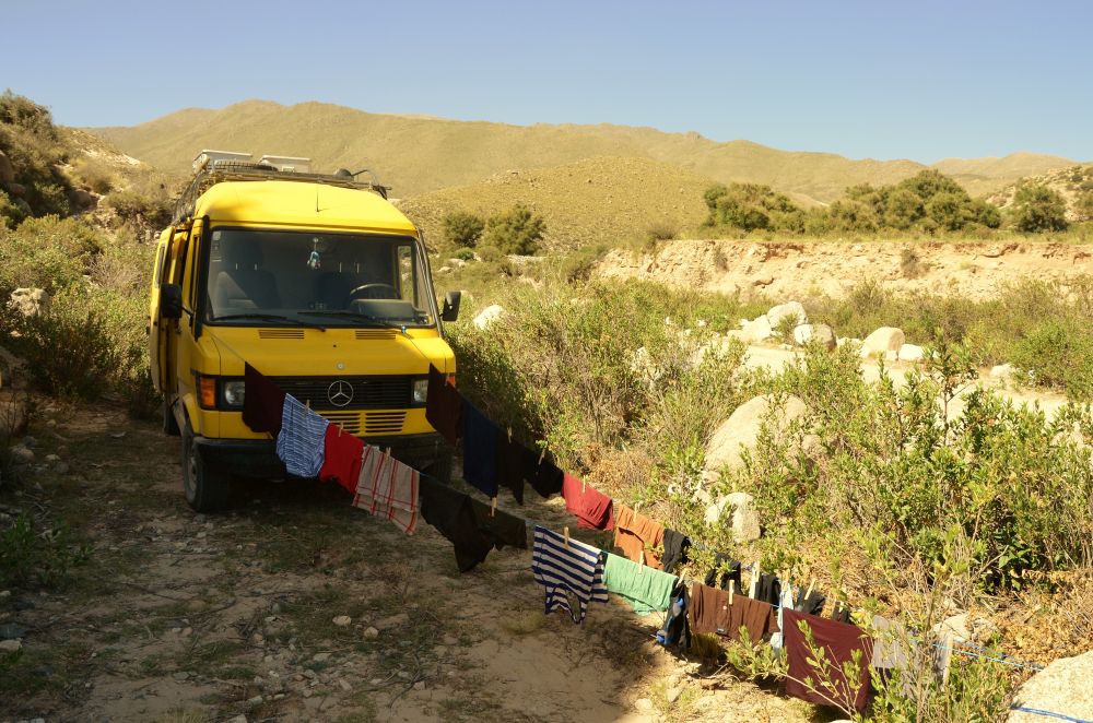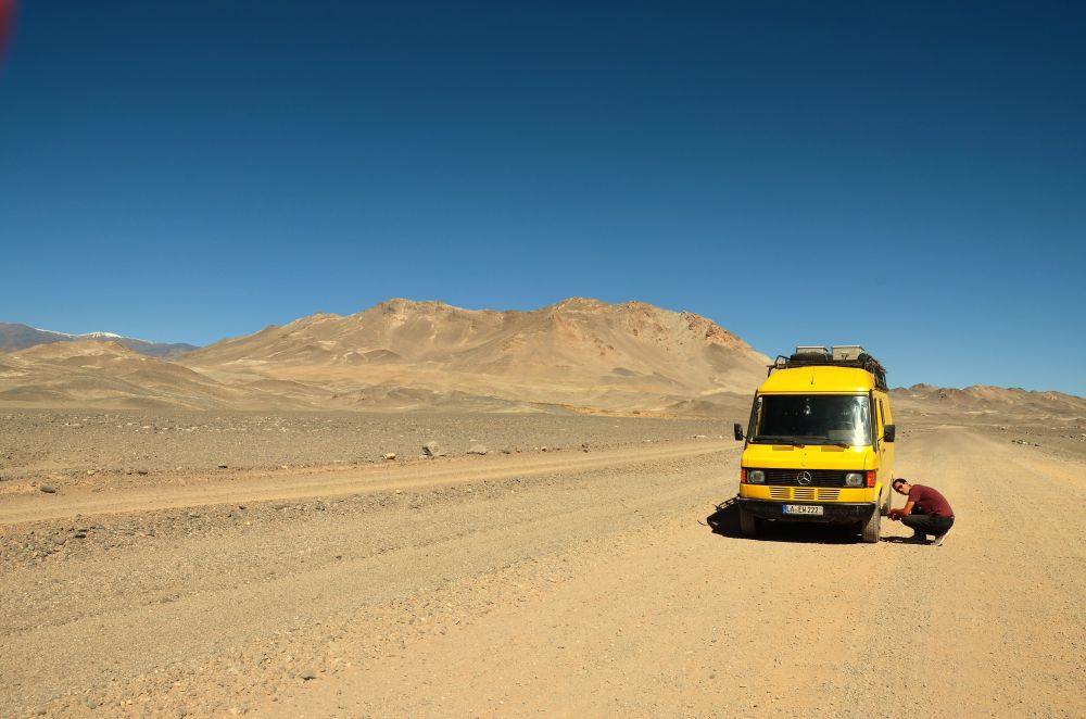Gut vorbereitet geht es los. Da wir zum Akklimatisieren nur ca 500 Höhenmeter pro Tag fahren werden, richten wir unser Buschcamp am ersten Tag bereits nach wenigen Kilometern an einem kleinen Flusslauf direkt an der RP 43 ein. Den angebrochenen Tag verbringen wir mit Flusswäsche und Routenplanung. Da die Straße kaum befahren ist, haben wir hier eine sehr ruhige Nacht auf ca. 3000 Metern Höhe.