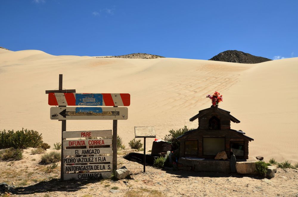 Wir starten unser „Abenteuer“ in eine der einsamsten Gegenden der Welt, der argentinischen Puna, in der kleinen Stadt Hualfin, südlich von Salta. Hier kaufen wir noch Lebensmittel ein und betanken Erwin, sowie die 40 Liter Reserve bis oben hin voll. Es erwarten uns schließlich mehr als 500 Kilometer entlegene Pisten, Bergpässe und Lagunen. Dörfer oder Städte findet man hier kaum. Die größten Orte, die wir auf der Tour passieren werden sind Antofagasta de la Sierra (letzte Tankmöglichkeit Richtung Norden mit ca. 1000 Einwohnern) und Antofalla mit ca. 40 Einwohnern.