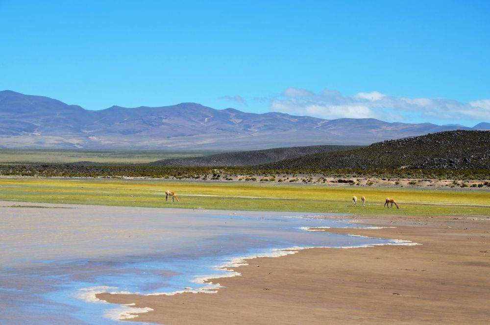 So richtig weit sind wir an dem Tag nicht gekommen, aber das hat uns überhaupt nicht gestört. Wir fuhren weiter die RP 43 entlang. Vorbei an einer riesigen Sanddüne und schönen Tälern erreichen wir irgendwann eines unserer Zwischenziele. Die Laguna Blanca liegt auf ungefähr 3200 Metern Höhe ca. 10 Kilometer von der Hauptstraße, RP 43 entfernt. Dieser Ort hat sich als Übernachtungsplatz quasi aufgedrängt. Wir standen direkt vor der Lagune, die von Vicunas und Flamingos umzingelt war. Ein grandioser Anblick der uns stundenlang vor die Kamera und das Fernglas gefesselt hat. Auch hier verbrachten wir bis auf den starken Wind wieder eine ruhige sternenklare Nacht.