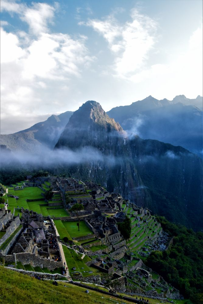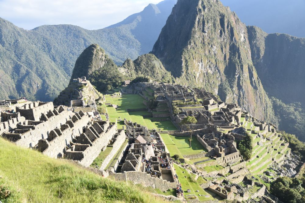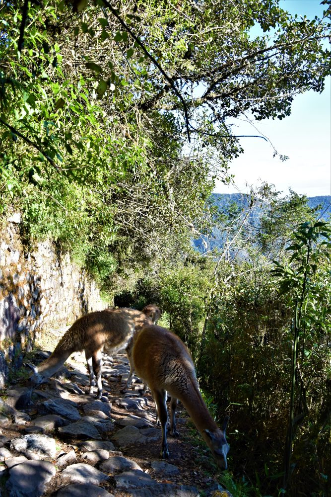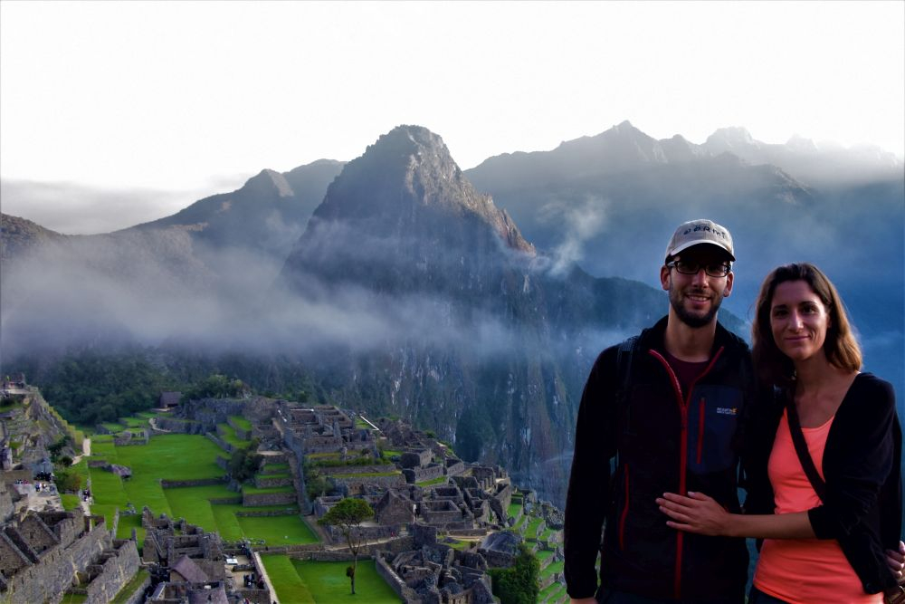 Ein kleines günstiges Hotel haben wir uns auch gebucht, da man Machu Picchu, sofern man selbst mit dem Auto bzw. zu Fuß anreist niemals an einem Tag schaffen kann. Bis 10 Kilometer vor Aguas Calientes kann man mit dem eigenen Auto fahren, danach geht nur ein Wanderweg weiter. Erwin konnten wir bei einem Restaurant für eine Nacht stehen lassen. Am ersten Tag wanderten wir also gemütlich am frühen Nachmittag los. Der Wanderweg nach Aguas Calientes ist wirklich lohnenswert. Man geht zwar immer an der Bahnstrecke entlang, jedoch kann man hier schon sehr viel Natur erleben und spart zudem die überteuerte Abzocke für die kurze Bahnfahrt. Wir kamen ungefähr 3 Stunden später in Aguas Calientes an und bezogen das Hotelzimmer. Aguas Calientes hat eine große Auswahl an Hotels, Hostels, Restaurants und Bars in allen Preisklassen. Nach einem leckeren Abendessen fielen wir auch schon ins Bett. Da wir das Vormittagsticket für Machu Picchu gekauft haben, mussten wir auch schon früh aufstehen. Um 4 Uhr klingelte der Wecker. Das Ticket ist ab 6 Uhr gültig und von Aguas Calientes muss man ja noch auf den Berg hoch kommen. Das geht entweder per Abzocke mit dem Bus (5 Minuten Fahrt für 25$ pro Person) oder zu Fuß über einen recht steilen Wanderweg. So marschierten wir nach dem Frühstück im Hotel, welches freundlicherweise schon ab 4:30 Uhr serviert wird los. Und der Weg hatte es in sich. Es ging in Treppenstufen fast senkrecht den Berg hinauf und wir waren richtig außer Atem als wir oben bei Machu Picchu angekommen sind. Doch als wir die Ruinen erblickten, war die Anstrengung schnell vergessen und wir waren wirklich überwältigt. Es ist einfach unglaublich wie die Inkas es damals nur geschafft haben, diese Stadt in den Berg zu bauen. Und noch viel unglaublicher ist, dass erst ein Teil von Machu Picchu freigelegt wurde. Die Präzision, mit der die gigantischen Mauern errichtet wurden ist atemberaubend. Ein Rundweg führte uns dann durch die gesamte Anlage. Umzingelt von tausenden Touristen und unfreundlichen Park-Rangern (Man darf nicht Essen auf den Grünflächen, man darf nur Sitzen – nicht liegen auf den Grünflächen, man darf nicht trinken auf dem Gelände und blablabla) Man glaubt nicht wie übermotiviert die Power-Ranger agieren können wenn man Ihnen ein UNESCO T-Shirt gibt. Bis ca. 14 Uhr haben wir uns die gesamte Anlage angesehen und Stephanie hat ungefähr 500000000 Fotos gemacht. Nachdem wir unsere Rucksäcke noch aus dem Hotel geholt haben, ging es die 10 Kilometer wieder zurück zu Erwin. Unser Fazit: Machu Picchu ist jede Anstrengung Wert. Abgesehen von den unglaublichen Preisen rund um den Ausflug, die sich in Grenzen halten wenn man viel Lauferei in Kauf nimmt, war Machu Picchu auf jeden Fall ein ganz großes Highlight unserer bisherigen Reise.