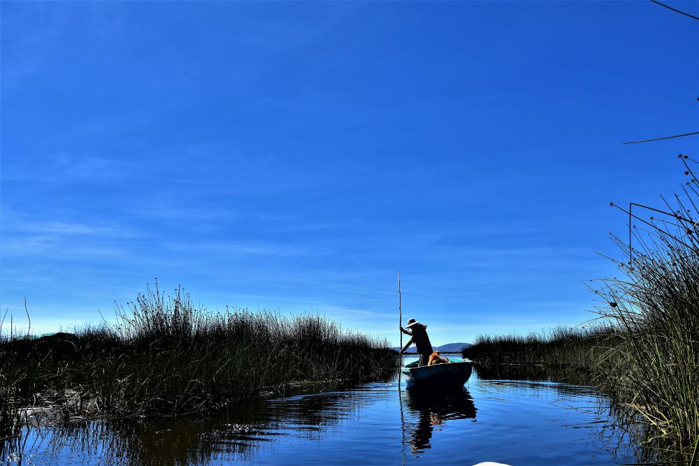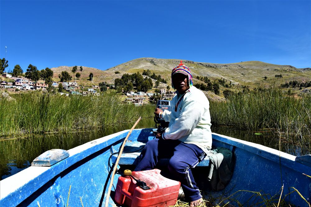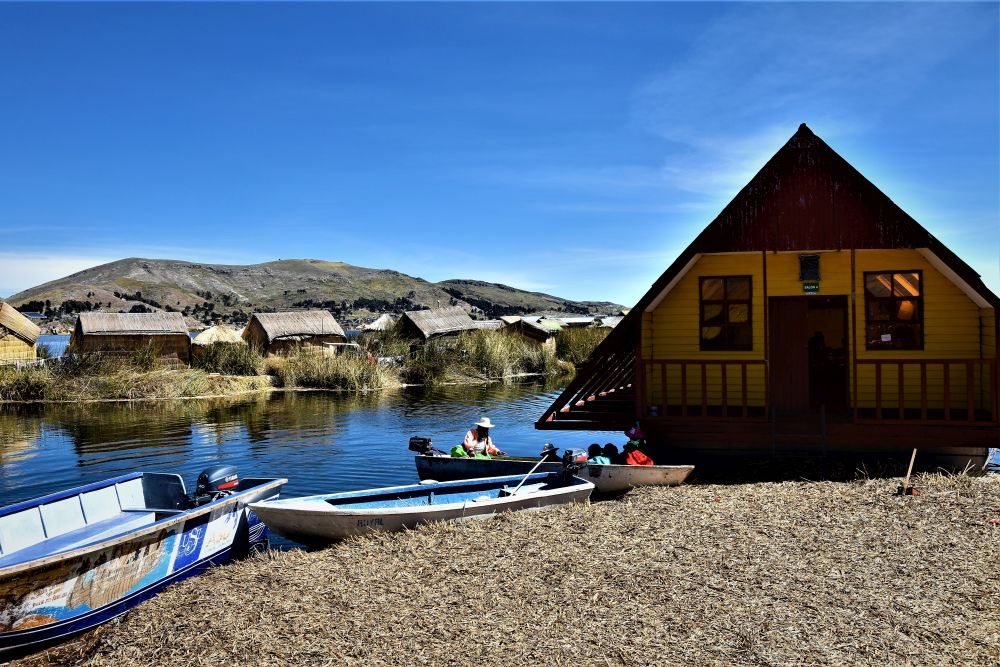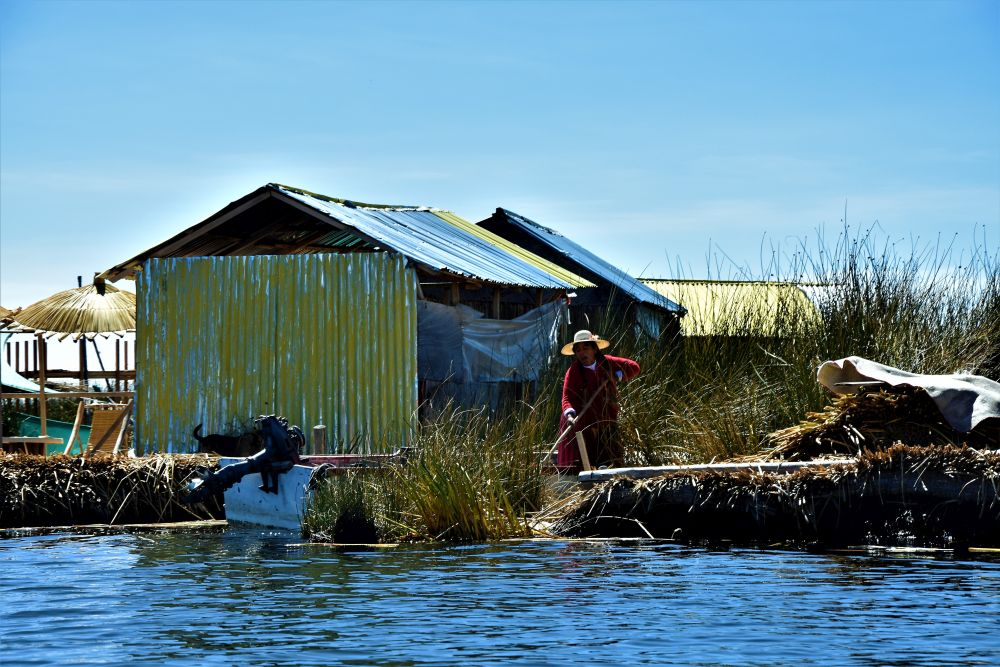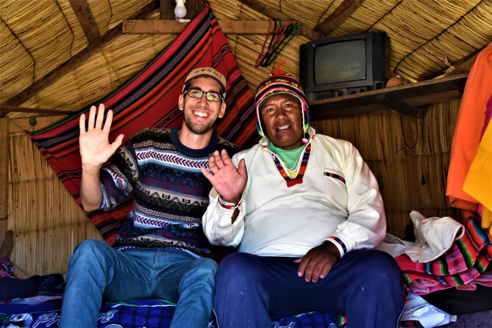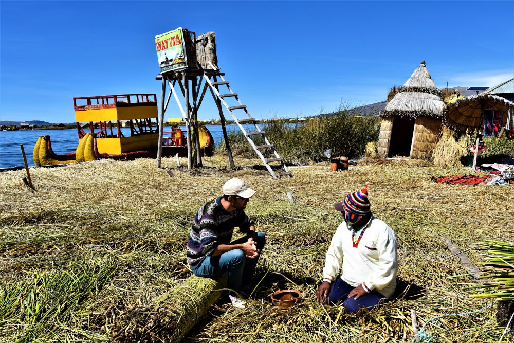 Nach Puno wollten wir primär wegen einer besonderen „Attraktion“, nämlich den „Floating Islands“. Es gibt auf dem Titicacasee ein indigenes Volk (die Uros), die aus dem dort wachsenden Schilf ihr ganzes Dorf schwimmend erbaut haben und noch immer darauf leben. Ein paar Minuten mit dem Boot von Puno entfernt liegt diese – man kann schon fast sagen „Kleinstadt“. Wir hatten das Glück und konnten uns einen Guide der Extraklasse ergattern. Roger ist Angehöriger der Uros und bietet nebenbei private Touren an um den Touristen das kleine schwimmende Dorf näher zu bringen. Wir trafen ihn an einem kleinen Bootsanleger und machten gleich für den kommenden Tag eine Tour aus. Am nächsten Morgen standen wir pünktlich am Bootsanleger und Roger packte uns auf sein kleines Boot. Man erreicht die Floating Islands über mehrere „Straßen“ – Wege auf dem Wasser die durch das Schilf geschlagen wurden. Er erzählt uns während der Bootsfahrt viel über sich und seine Familie. Er selbst hat eine große und wichtige politische Rolle in der Gemeinschaft und so erfahren wir sehr viel über die Kommune. Er sagt, dass wir unbedingt die Schule besuchen müssen weil sich die Kinder dort immer recht über Besuch freuen würden. Nun gut – fahren wir eben erst zur Schule. Und kaum haben wir eins der schwimmenden Klassenzimmer betreten stürzten sich auch schon die Kids auf uns. Sie zeigen uns ihre Schulsachen, das Klassenzimmer und versuchten mit ihrem soeben gelernten Englisch zu punkten. Nach der Schule wurden wir von Roger noch durch das Dorf gefahren und er hat uns viel zu den Gebäuden erklärt. Zum Schluss zeigte er uns auf seiner eigenen Insel noch wie diese gebaut werden und wie auch deren besondere Schiffe mit dem Schilf in mühevoller Handarbeit gefertigt werden. Nach einem interessanten Ausflug ging es mit dem Boot wieder zurück zum Festland. Ein wirklich gelungener Trip der besonderen Art. Man kann dort natürlich auch eine Tour bei einem der zahlreichen Anbieter in Puno buchen, jedoch darf man dann nur bestimmte Inseln betreten und die Schiffe fahren mehr oder weniger nur durch einen kleinen unspektakulären Teil des Dorfes.