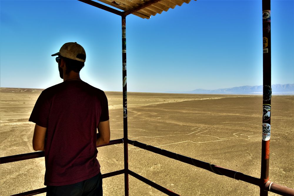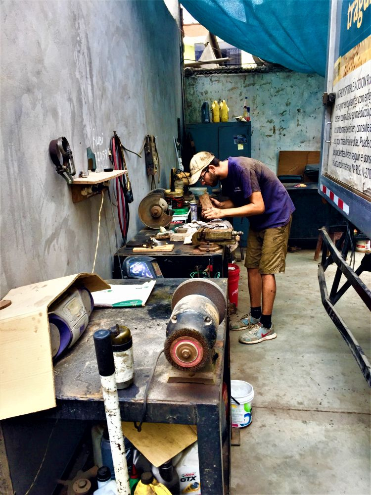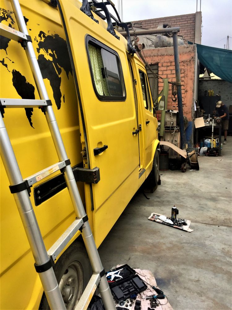 Am nächsten Tag wollten wir einen Zahn zulegen und schnell den Weg Richtung Lima angehen. Jedoch zog sich alles wesentlich länger als gedacht. Es ging bergauf und bergab, oft nur im Schneckentempo irgendwelche Serpentinen hoch und wieder runter. So schafften wir gerade mal 160 Kilometer am Tag. Einen Zwischenstopp haben wir noch bei den Nasca Linien eingelegt. Es gibt dort eine Aussichtsplattform auf der man ein paar Figuren sehen kann. Faszinierend sind die Linien schon irgendwie… man weiß bis Heute nicht wer die Linien gemacht hat und vor allem –warum? An der Küste sind wir dann auf der gut ausgebauten Panamericana wieder schneller vorangekommen. Zielstrebig steuerten wir in Lima einen Mechaniker an, mit dem wir bereits im Vorfeld Kontakt aufgenommen hatten. An Erwin waren ein paar Kleinigkeiten zu machen. Unter Anderem hat er seit ein paar Wochen schon immer stärker sein Revier markiert. Da das Öl aus der Getriebeglocke kam und sich seinen Weg schön langsam Richtung Kupplung suchte war hier Handlungsbedarf geboten. Der Kurbelwellensimmerring musste gewechselt werden. Den haben wir zum Glück aus Deutschland vorsichtshalber mitgenommen. Bei der Aktion braucht man schon einen guten Platz, da das ganze Getriebe samt Kupplung entfernt werden muss. Auf dem Parkplatz ist das nicht zu bewältigen. Mit Mario haben wir einen erstklassigen Mechaniker erwischt, der mit seinen guten Connections zu Ersatzteilgeschäften und anderen Mechanikern wirklich eine große Hilfe war. Ohne ihn wären wir Heute noch in Lima unterwegs und würden irgendwelche Kleinteile suchen. Bei der Aktion tauschten wir auch noch die vorderen Stoßdämpfer gegen stärkere aus, wechselten ein defektes Radlager an der Vorderachse und erneuerten auch noch die Ölwannendichtung. Wir konnten wie schon in Antofagasta auch im Erwin schlafen und standen zudem sicher in einem abgesperrten Hinterhof. Das machte die Schraubertage recht angenehm. Da wir uns mit unserem „Chefmechaniker“ Mario wirklich gut verstanden und er uns auch viel über Peru und Lima erzählt und uns in ein gutes Restaurant geführt hat, kam Matthias auch endlich in den Genuss ein „Guy“ zu probieren. Guy ist Meerschweinchen und zählt in Peru, Ecuador und Kolumbien zu den absoluten Delikatessen. Wenn man sich mal überwunden hat anzufangen schmeckt es wirklich sehr gut. Knusprig wie a Schweinsbraten und vom Geschmack her wie a Hehndl. Das war bisher aber das einzige Guy und wird es auch bleiben. Es ging ja nur ums Probieren.