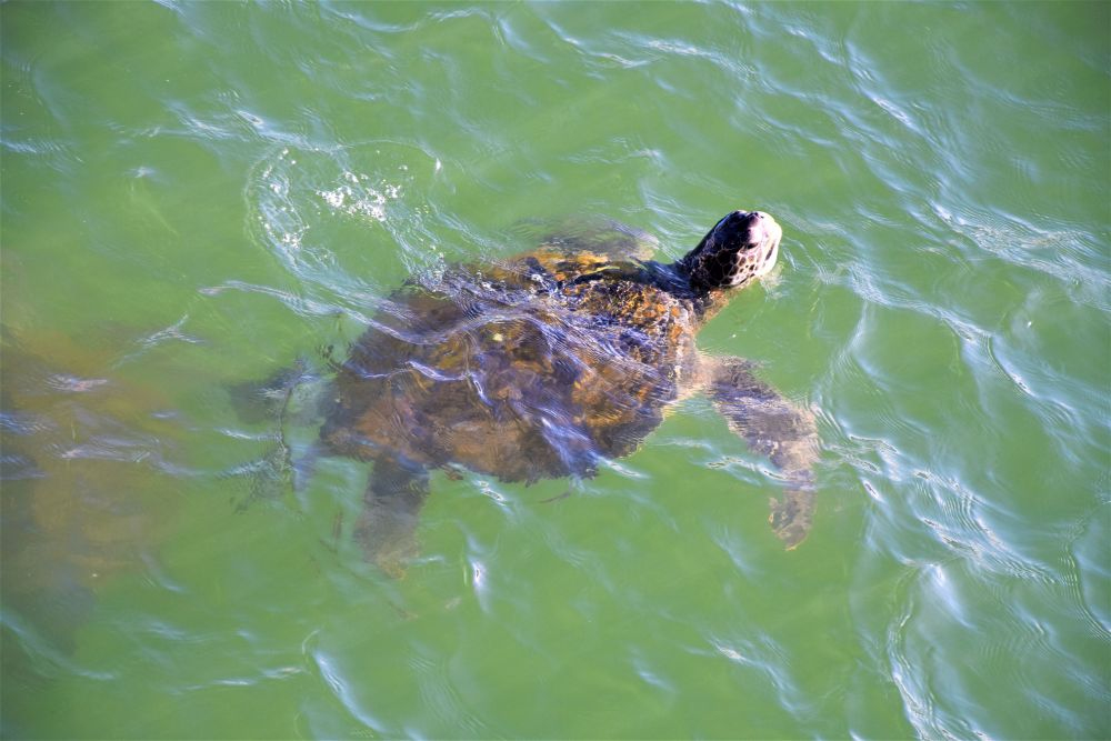 Einen doch etwas skurrilen Abschluss unserer Peru Tour bereitete uns dann noch ein übermotivierter Polizist der uns auf dem Weg in den Norden anhielt. Er fragte zunächst nach unseren Papieren und wir zeigten ihm alles, was wir hatten. Reisepässe, Zolldokumente für Erwin, internationale Führerscheine, KFZ-Versicherung und auch den Fahrzeugschein wollte er sehen. Nachdem er keinen Fehler in den Papieren finden konnte, merkten wir schon, dass er nicht locker lassen will. Es brauchte eine Gedenkenpause, die Blicke gingen suchend durch das Fahrerhaus unseres Erwins … und dann fiel es ihm plötzlich doch noch ein. Während des Autofahrens muss man immer beide Hände am Lenkrad haben. Mit einem Lutscher (Wir hatten beide einen in der Hand) wäre das nicht möglich und: „Das verdient jetzt eine Strafe“. Da waren wir erst mal baff. Wir konnten uns das Lachen leider nicht verkneifen und es folgte eine minutenlange unnötige Diskussion, ob Matthias nun mit einer Hand gefahren ist oder nicht. Eine Strafe hätten wir nie und nimmer bezahlt und haben uns auch entsprechend geweigert. Bei solchen Diskussionen ist es wichtig genug Zeit mitzubringen. Den Beamten wird es dann irgendwann schon zu blöd. Auf die Frage, ob wir dann überhaupt schalten dürfen während dem Fahren, da man dann ja auch nur eine Hand am Lenkrad hat, drehte er sich weg, gab uns die Papiere zurück und sagte wir sollen weiterfahren. Muchas gracias! Einen Kreativitätspunkt hat er sich auf jeden Fall verdient, wie wir finden. Einen Zwischenstopp legten wir im Norden aber noch ein. Es gibt an der Küste eine kleine Ortschaft, an dessen Bootsanleger man viele Schildkröten beobachten kann. Das ließen wir uns natürlich nicht entgehen.