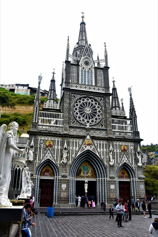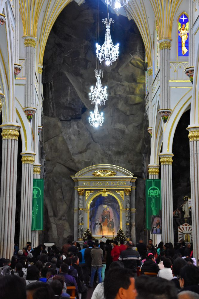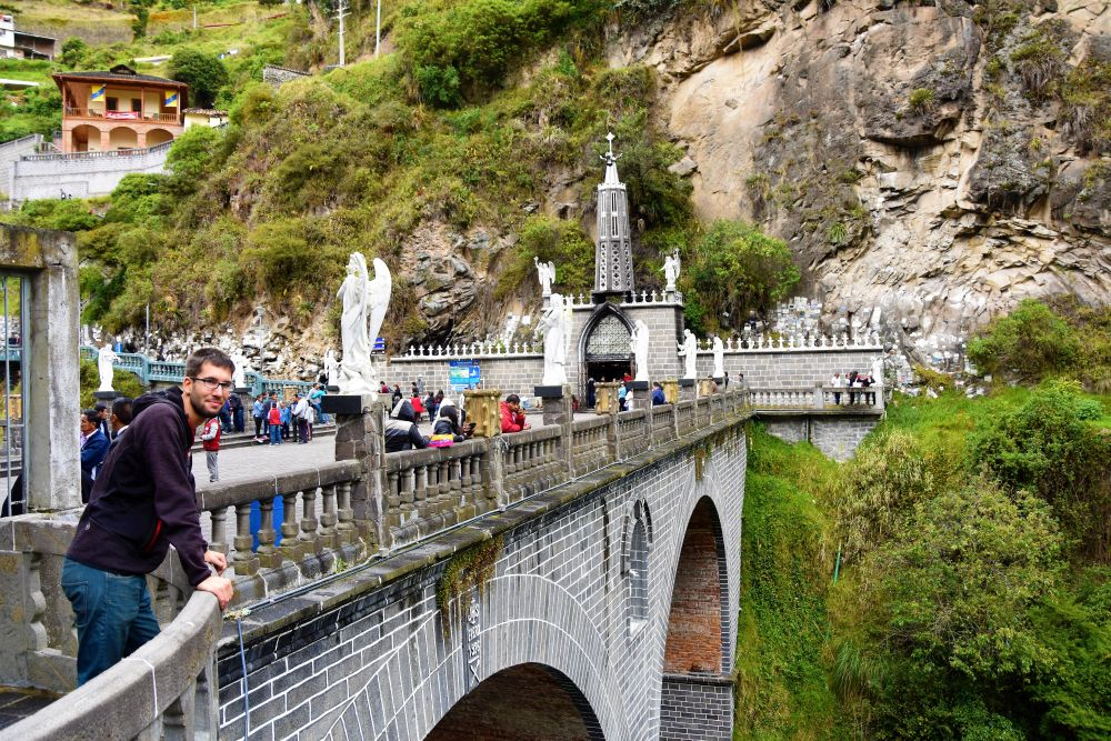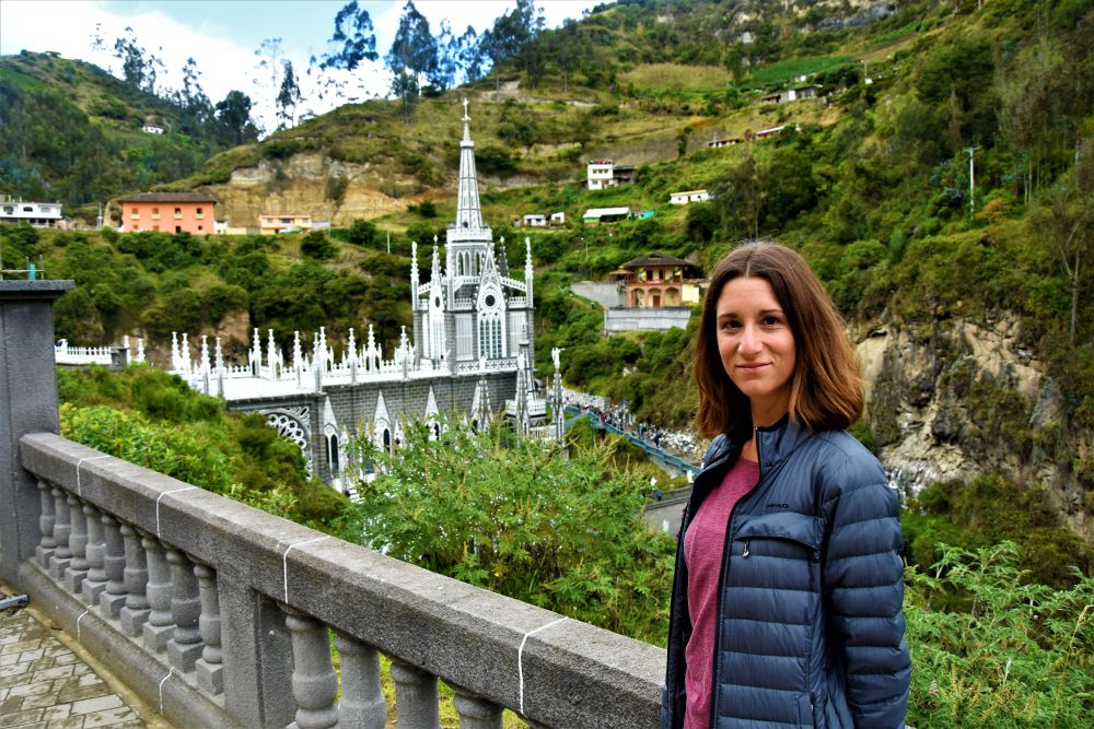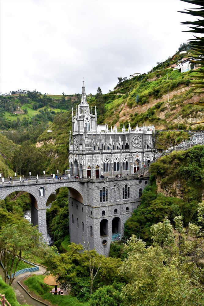 Am nächsten Morgen besuchten wir die für uns wohl schönste und umwerfendste Kirche in Südamerika, wenn nicht sogar der ganzen Welt. Die Iglesia de Las Lajas, so wie sie Heute zu sehen ist, wurde zwischen 1916 und 1949 in fünf Bauabschnitten gebaut. Eine alte Geschichte besagt, dass dort eine Mutter mit ihrer, bis zu dem Zeitpunkt taubstumm gehaltenen Tochter, Schutz vor einem Sturm suchte. Die Tochter zeigte plötzlich auf eine Erscheinung und sprach zu ihrer Mutter „Mamita, die Frau ruft mich…“. Die Geschichte wurde dann von Behörden und der Kirche geprüft und im Jahr 1754 bestätigt. Daraufhin entwickelte sich der Ort zu einem der wichtigsten Wallfahrtsorte in Kolumbien und man begann mit dem Bau. Durch unzählige Umbauten und Veränderungen entwickelte sich die Iglesia zur heutigen Form. Wir spazierten durch das Gelände und konnten auch für kurze Zeit bei einem Gottesdienst dabei sein. Der Bau ist wirklich faszinierend. Die Kirche wurde zum Teil direkt in den Berg gebaut und erstreckt sich mitsamt dem Vorplatz über einen Fluss in ungefähr 150 Meter Länge.
