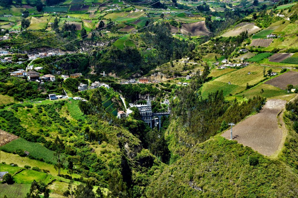 Das Prozedere an der Grenze war im Gegensatz zu unseren Erwartungen völlig stressfrei und einfach. Es verlief alles reibungslos und wir durften für 90 Tage einreisen. Bei der KFZ Versicherung waren wir uns in Kolumbien wieder mal nicht ganz sicher, ob diese benötigt wird oder nicht. Wir haben uns vorsichtshalber im nächsten Ort eine gekauft und können somit ruhigen Gewissens auch in die zu erwartenden Polizeikontrollen rauschen. Sicher ist sicher, und bei umgerechnet 21€ für 30 Tage Versicherungsschutz stellt sich die Frage nach der Notwendigkeit sowieso nicht mehr. Die lange Wartezeit an der Grenze, das Beschaffen von Versicherung und Bargeld nahm seine Zeit in Anspruch und es wurde schon dunkel. Somit wurden wir etwas unruhig und machten uns intensiv auf die Suche nach einer Bleibe für die Nacht. Diese war schnell gefunden und wir hatten zum Glück nur ein paar Kilometer zu fahren. In jedes Land das wir reisen, vermeiden wir Nachtfahrten so gut es geht. Zu oft wird davor gewarnt. Wir schlugen unsere Zelte auf einem großen Parkplatz der Gondelbahn, die zur Iglesia Las Lajas führt, auf. Die Iglesia wollten wir ohnehin ansehen und so bot es sich an dort zu fragen, ob wir für eine Nacht parken dürfen. Wir durften und wurden sehr freundlich von den Mitarbeitern der Station empfangen. Toiletten, Wifi und ein kostenloser Parkplatz mit Security für die Nacht – was will man mehr.