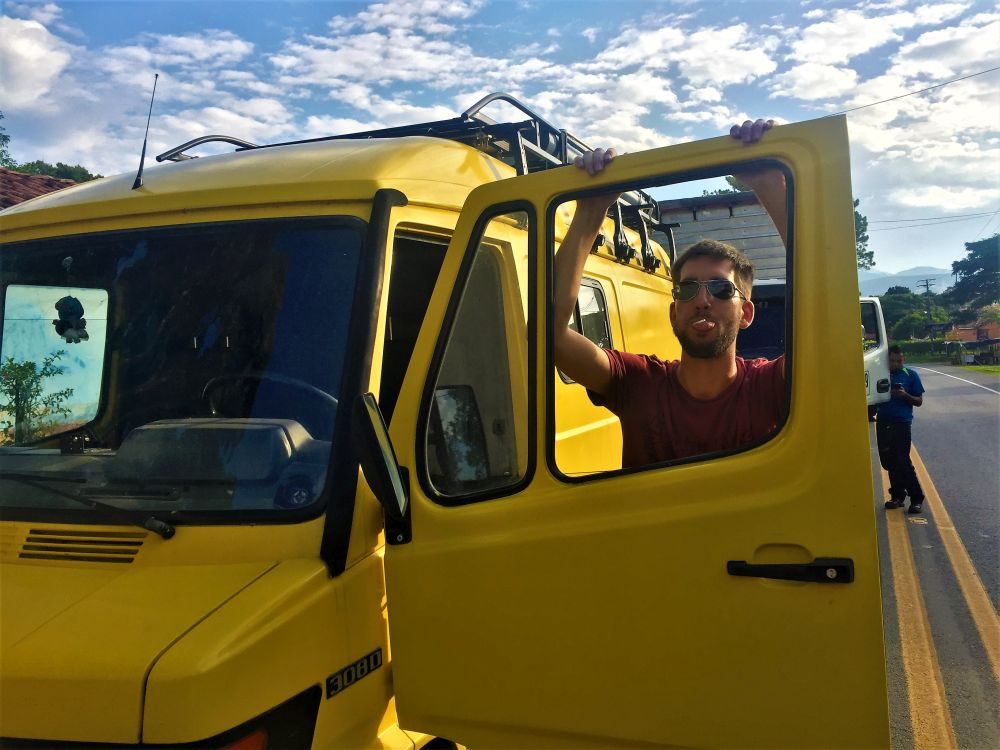 Das klingt jetzt vielleicht etwas übertrieben… wir wurden nicht eskortiert oder so. Aber entlang der Panamericana befindet sich ungefähr alle 30/40 Kilometer ein Militärposten und die Soldaten zeigen per Daumen an, ob der kommende Streckenabschnitt sicher befahrbar ist oder nicht. Wir hatten zum Glück nur Daumen nach oben, waren aber schon erschüttert wie allgegenwärtig die Gefahr von Guerillas und Paramilitärs noch in vielen Gebieten Kolumbiens ist. Nichtsdestotrotz fühlen wir uns sehr sicher und alle Soldaten, Polizisten und sonstige Menschen mit denen wir Kontakt hatten waren sehr freundlich und interessiert. Kolumbien empfing uns mit offenen Armen. In Popayan angekommen wird der herzliche Empfang nochmal durch eine Polizeikontrolle verdeutlicht. Wir werden am Ortseingang angehalten – Matthias Blick geht als erstes direkt zum Lichtschalter – eine Angewohnheit die uns die Korruption in Peru beschert hat. Dort werden regelmäßig ausländische Wohnmobile abgezockt weil sie ohne Licht unterwegs sind. Die Lichtpflicht gilt dort aus Polizeisicht natürlich nur für Ausländer… Auf jeden Fall war unser Licht an und so hatten wir eigentlich nichts zu befürchten. Der Beamte begrüßte uns freundlich und wollte zunächst nur unsere Pässe sowie Matthias Führerschein sehen. „Todo bien“ – sagte er und fragte uns wo wir hin wollen. „Ins Zentrum von Popayan, da haben wir von einem guten Stellplatz für Wohnmobile erfahren“, sagen wir. Er gibt uns daraufhin noch ein paar Tips was wir beachten sollen und wo wir sicher stehen können. Eigentlich wollte er nichts kontrollieren, er war nur neugierig und wollte mal ins Innere von Erwin schauen. Nach ein paar Minuten Small Talk verabschiedeten wir uns und er wünschte uns eine gute Weiterfahrt, einen schönen Aufenthalt in Popayan und erklärte uns nochmal freundlichst den Weg ins Zentrum. Am Plaza angekommen parken wir Erwin erst mal und erkunden ein bisschen die Gegend. Zwei andere Wohnmobile stehen auch noch da und wir knüpfen gleich mal Kontakte. Mit Edd und Melissa aus England und USA verstanden wir uns auf Anhieb gut und verabredeten uns zum gemeinsamen Fussball schauen in einer Bar. Es spielte Kolumbien gegen England. Leider verlor Kolumbien unglücklich, doch die Stimmung der Kolumbianer in der Bar und auf den Straßen war bis zum Schluss gigantisch. Wir saßen unter 50 Kolumbianern und waren mittendrin im WM Fieber.