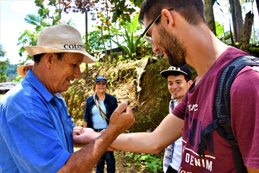 Nach Cali machten wir uns auf den Weg ins sog. Kaffeedreieck von Kolumbien. Eine Region, in der sehr viel Kaffee, aber auch Kakao angebaut wird. In dem kleinen gemütlichen Ort Buenavista hatten wir die Gelegenheit eine Kaffeefarm zu besuchen und etwas über den Anbau sowie die weitere Verarbeitung von Kaffee zu erfahren. Früh Morgens trafen wir uns mit dem Bauern am Dorfplatz und marschierten zu seiner Finca. Gespannt hörten wir zu was er alles erzählt. Zum Glück war ein Dolmetscher dabei, der sich ein paar Pesos dazu verdienen wollte. Unser Spanisch ist zwar mittlerweile „nicht schlecht“, doch verstehen wir einfach noch viel zu wenig, gerade wenn es um spezifische Themen mit Fachbegriffen geht. Es war sehr spannend zu sehen, wie auf so einer kleinen Finca der Kaffee produziert wird. Noch alles per Hand, ohne viel technisches Gerät. Der Farmer produziert 100% biologischen Kaffee. Natürlich bekamen wir auch eine Kostprobe und erstanden auch ein Päckchen vom feinen Kaffee. Ein schöner „Bonus“ der Tour war, dass wir auf dem Gelände unzählige (für uns) exotische Pflanzen sehen konnten und der Bauer viel darüber erzählt hat. Maracuja, Ananas, Bananen um nur ein paar zu nennen. Folgen hatte die Kaffeetour deswegen, weil wir während der Tour neue Bekanntschaften schließen konnten. Blanca und Cesar nahmen auch an der Tour teil und wir kamen ins Gespräch. Sie waren recht beeindruckt von unserer Reise und dass wir aus Deutschland sind, da ihre Tochter derzeit auch in Deutschland lebt. So wurden wir kurzerhand nach Pereira zu Ihnen eingeladen. Was uns dort erwartet, das wussten wir zu dem Zeitpunkt noch nicht.