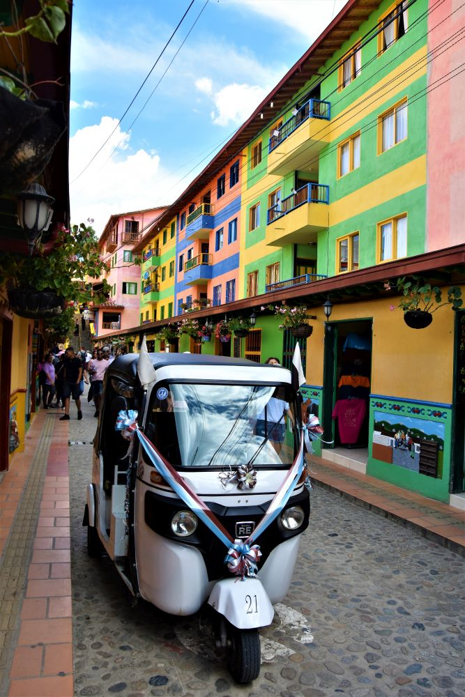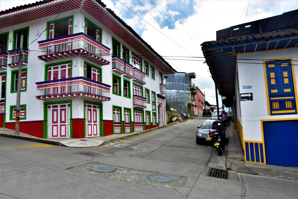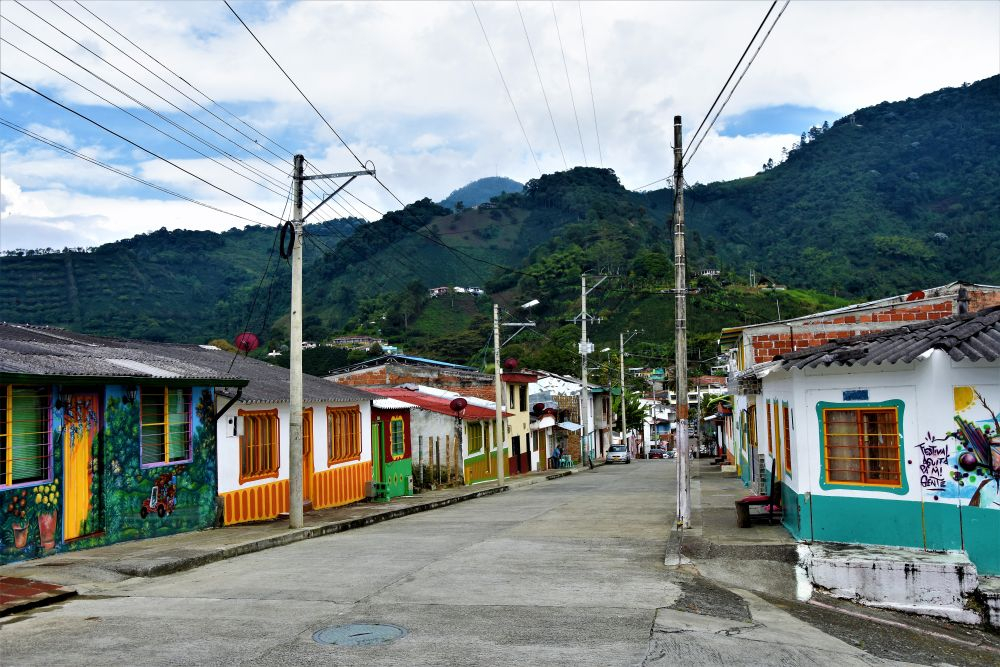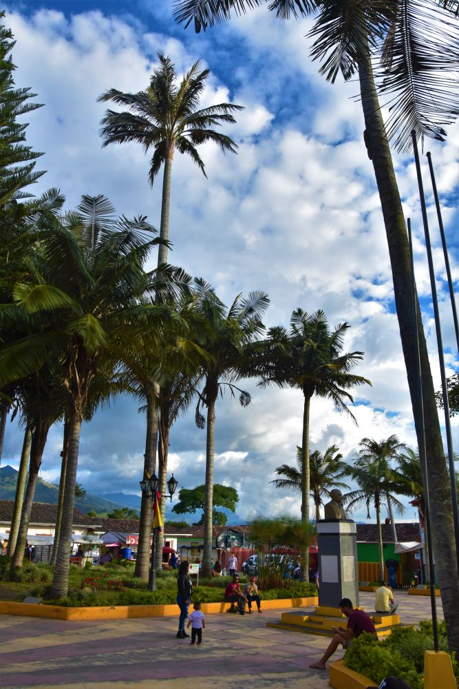 Dieses kleine Städtchen ist wohl das bekannteste in der Kaffeeregion Kolumbiens. Zum Einen aufgrund der bunten Häuserfassaden und zum Anderen wegen den höchsten Palmen der Welt – der Cocora Palme. Sowohl die Häuser, als auch die Palmen ließen wir uns nicht entgehen. Eine Nacht verbrachten wir dort und fuhren am Morgen per Jeep-Taxi in das Valle de Cocora. Es gibt dort einen etwas längeren Wanderweg bei dem man einen tollen Blick über das Valle bekommt und auch die bis zu 60 Meter hohen Palmen bewundern kann.
