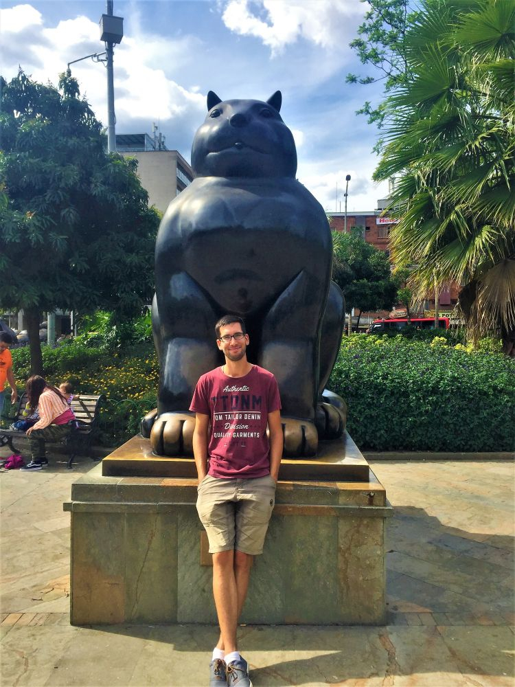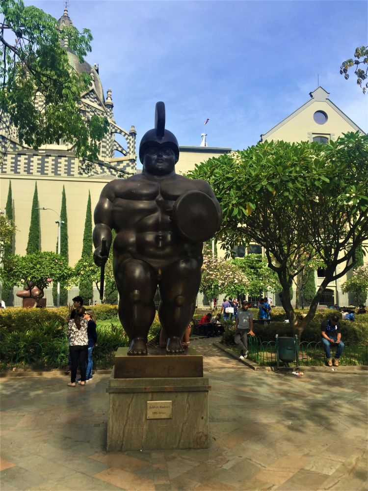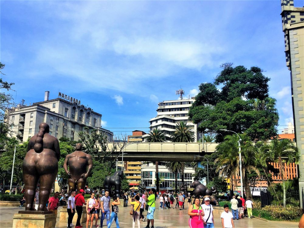 Bergauf und bergab geht es in unzähligen Kurven weiter nach Medellín (spricht man hier „Mehdeschin“). Dank unendlich nerviger Baustellen die sich auf die ganze Strecke verteilten brauchten wir für die 200 Kilometer Fahrt knappe 7 Stunden. Da sitzt man den ganzen Tag im Auto und ist am Abend völlig kaputt obwohl man nur 200 Kilometer gefahren ist. Aber ok, wir hatten schon ganz andere Rekorde (80 Kilometer in 10 Stunden – Bolivien). In der Stadt angekommen bezogen wir unseren Stellplatz diesmal vor einem Hostel. Edd und Melissa waren dort schon vor ein paar Tagen angereist und wir gesellten uns dazu. Zuerst hieß es dann WM-Endspiel schauen. Frankreich gegen Kroatien. Das ganze Daumendrücken half nichts… Kroatien war zwar gut, hat sich aber am Ende doch nicht durchsetzen können. Später wollten wir uns dann noch das Zentrum von Medellín ansehen. Und das war echt krass… man steigt in die tolle moderne Metro, steigt im Zentrum irgendwo wieder aus und steht unter Dealern, Konsumenten, Obdachlosen und Prostituierten. Kommt man zu einem touristischen Platz ist die Polizeipräsenz hoch und man sieht von dem Elend nichts mehr. Wir fühlten uns die ganze Zeit, egal wo, unsicher und unwohl. Selten waren wir so froh als wir wieder zurück bei Erwin waren. Das Hostel lag weit weg vom Zentrum in einem ruhigen, sicheren und eher modernen Viertel. Dass hier Menschen vor uns einfach die Crackpfeife auspacken konnten wir einfach nicht fassen. Aber es gab auch schöne Ecken, vor allem den Plaza Botero mit seinen vielen Figuren.