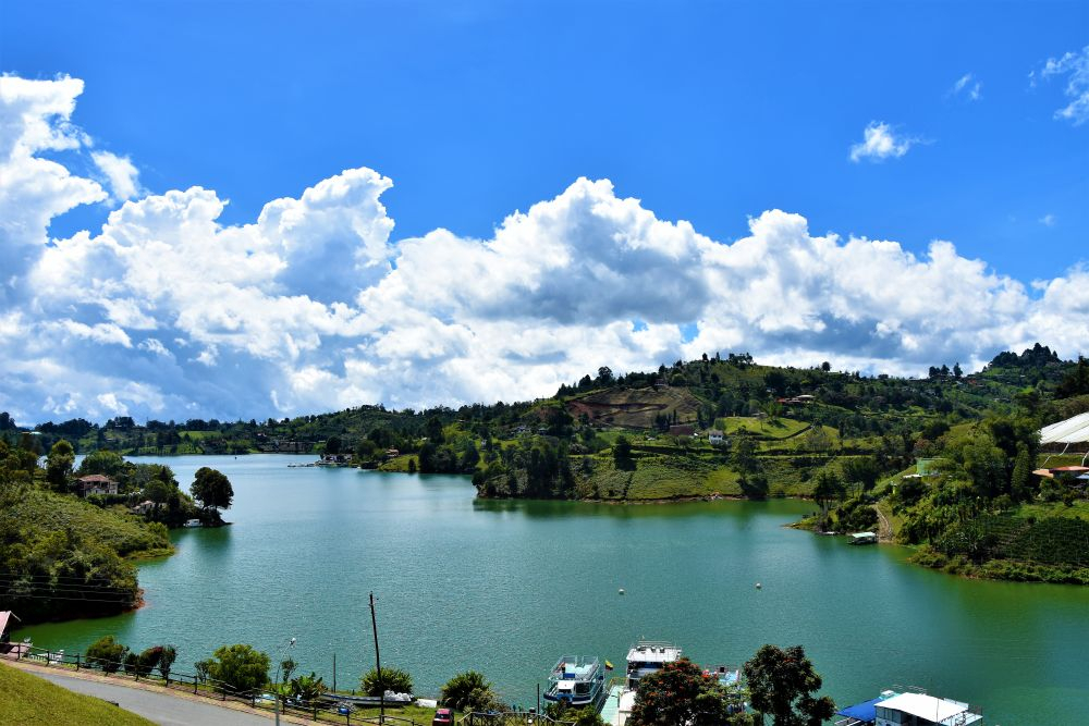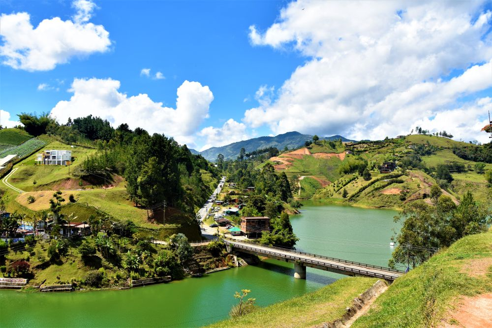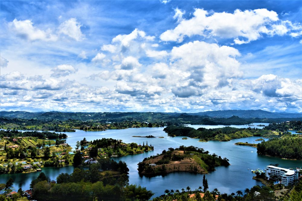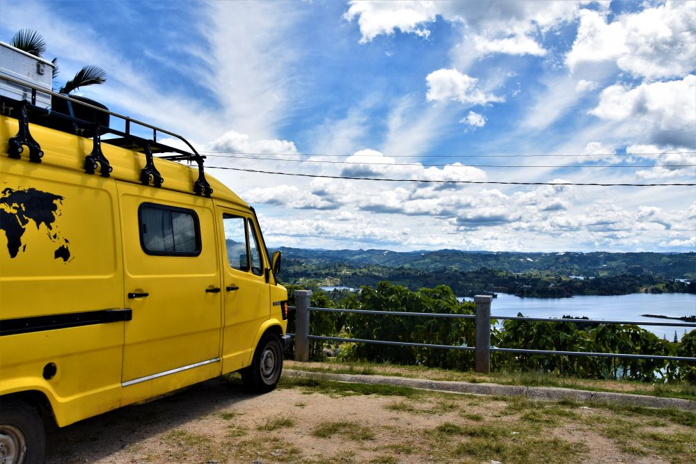 Nach Medellín war unser nächstes Ziel der Embalse el Penol und Guatape. Der künstliche See mit seinen vielen Flussarmen hat uns gleich in seinen Bann gezogen. Vor allem vom bekannten Piedra del Penol hat man einen tollen Blick über das ganze Gebiet. Natürlich inklusive dem vollen Touri-Programm auf dem Parkplatz vor dem Felsen, dem wir uns mit einem Spießrutenlauf wieder mal entzogen haben (Nein wir wollen nicht in das Restaurant, nein wir wollen keine Münze prägen lassen, nein wir wollen nicht mit dem überteuerten Aufzug auf den Berg gefahren werden, nein wir wollen keine billige Sonnenbrille und nein – wir sind noch lange keine AMIGOS!!!). Viel lieber lassen wir die Aussicht auf uns wirken und über eine gute Brotzeit im Erwin geht sowieso nix. Den Nachmittag schlenderten wir dann noch durch den wirklich schönen Ort Guatape und ließen uns den bisher besten Kaffee der Reise schmecken. Leider ist Guatape sehr touristisch aber man kann es trotzdem gut aushalten. Uns zog es jetzt aber doch irgendwie immer mehr in Richtung Karibik. Am frühen Nachmittag machten wir uns auf. Ein letztes Mal über die Berge – Erwin freut sich! Es ging immer bergab. Von 2700 Höhenmetern auf Meereshöhe. Und damit kam die Hitze. Und nein, nicht so ein bisschen Sonnenschein wie in Europa sondern tropisch. Heißt: Man schwitzt einfach immer. Im Sitzen, im Stehen, vor allem beim Essen und noch besser im Bett. Wind ist Mangelware und Abkühlung in der Nacht gibt es auch nicht. Wer es wagt, die Schiebetüre ohne Moskitonetz auch nur einen Spalt zu öffnen, wird sofort mit mindestens 10 aggressiven Mücken bestraft. So richtig fiese Biester, die richtig schöne große juckende Beulen hinterlassen. Aber wir haben es ja so gewollt und näherten uns der Karibik.
