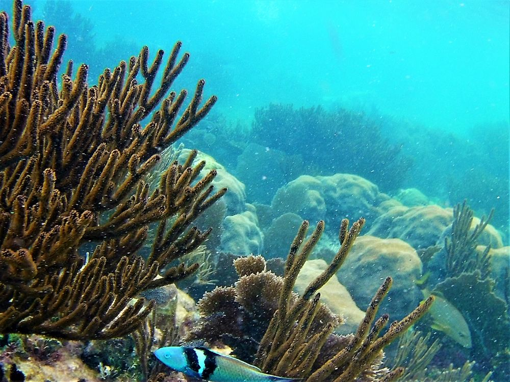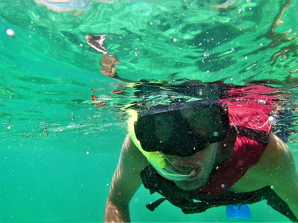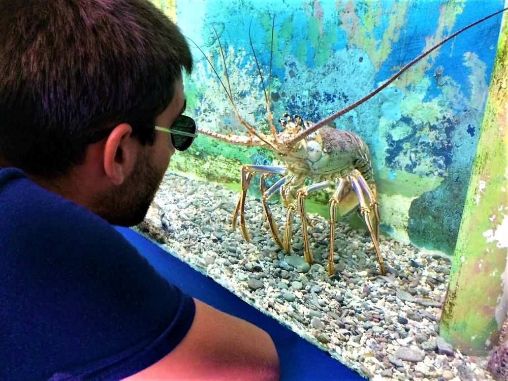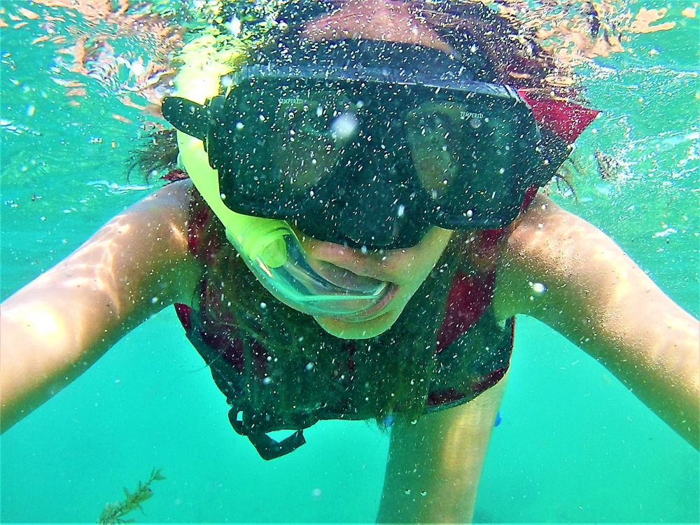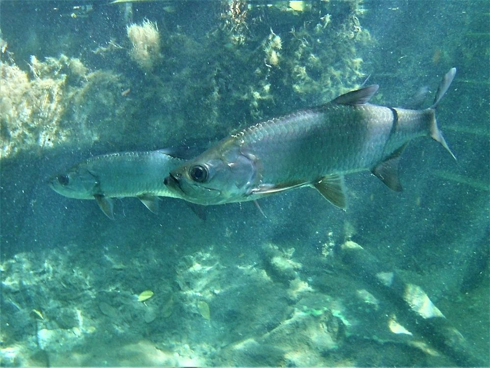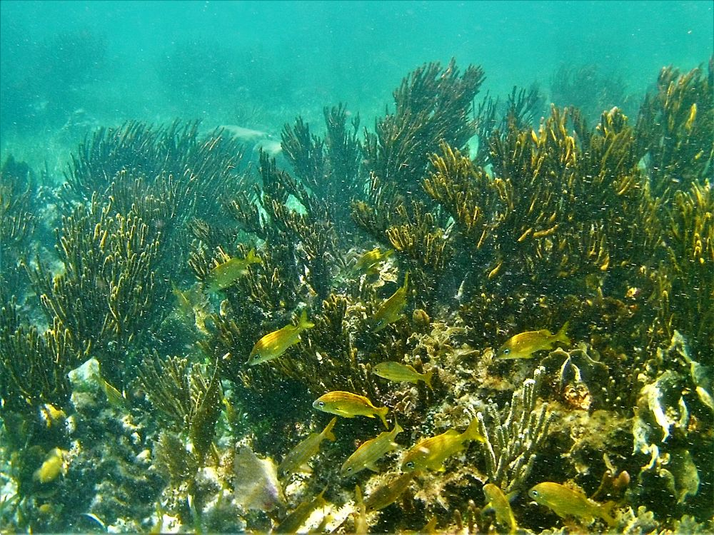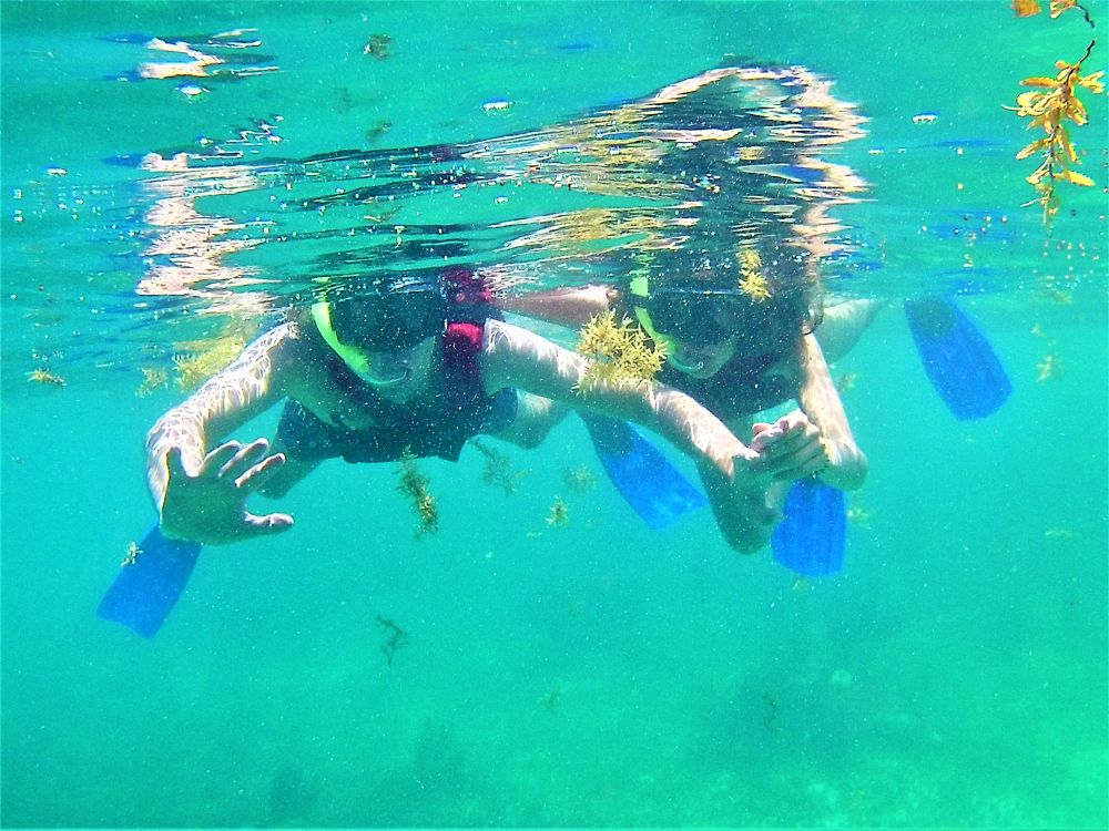 Nach der harten Nacht starteten wir gleich richtig los mit dem ersten Programmpunkt: Schnorcheln! Da gibt es in Mexiko, speziell an der Karibikküste natürlich unzählige Möglichkeiten. Nähe Cancun wurde uns der kleine Ort Puerto Morelos als Ausgangspunkt empfohlen. Aufgrund der diesjährigen Seegrasplage ist es leider kaum möglich direkt vom Strand aus zu schnorcheln oder zu baden. Wir wollten also mit dem Boot etwas weiter hinaus, um das Riff zu erkunden. Bei dieser Gelegenheit wurde auch gleich die neue Unterwasserkamera, die Bärbel und Christian mitgebracht hatten getestet. Die Bilder sind nicht schlecht und es macht uns auf jeden Fall sehr viel Spaß. Nach gut 1,5 Stunden brachte uns unser Guide wieder zurück an Land. Die Zeit war auch wirklich ausreichend und wir haben viele verschiedene Meeresbewohner zu Gesicht bekommen. Unter anderem auch eine riesige Languste. Zu nah wollten wir ihr nicht kommen, auf dem Bild erkennt man zumindest die langen Fühler 😉