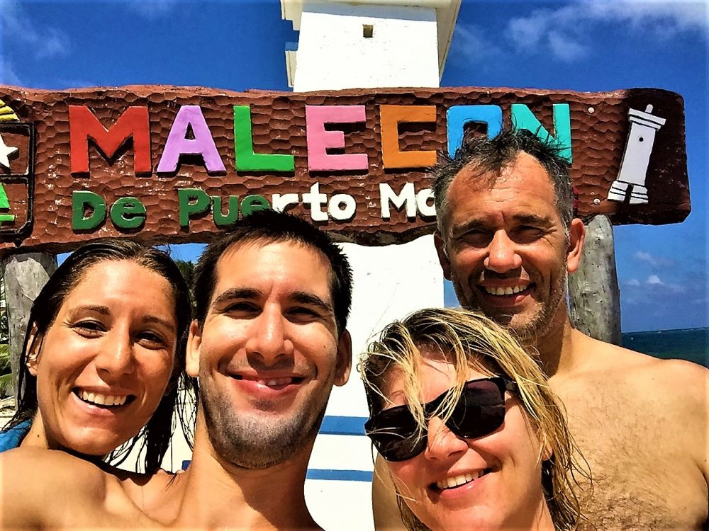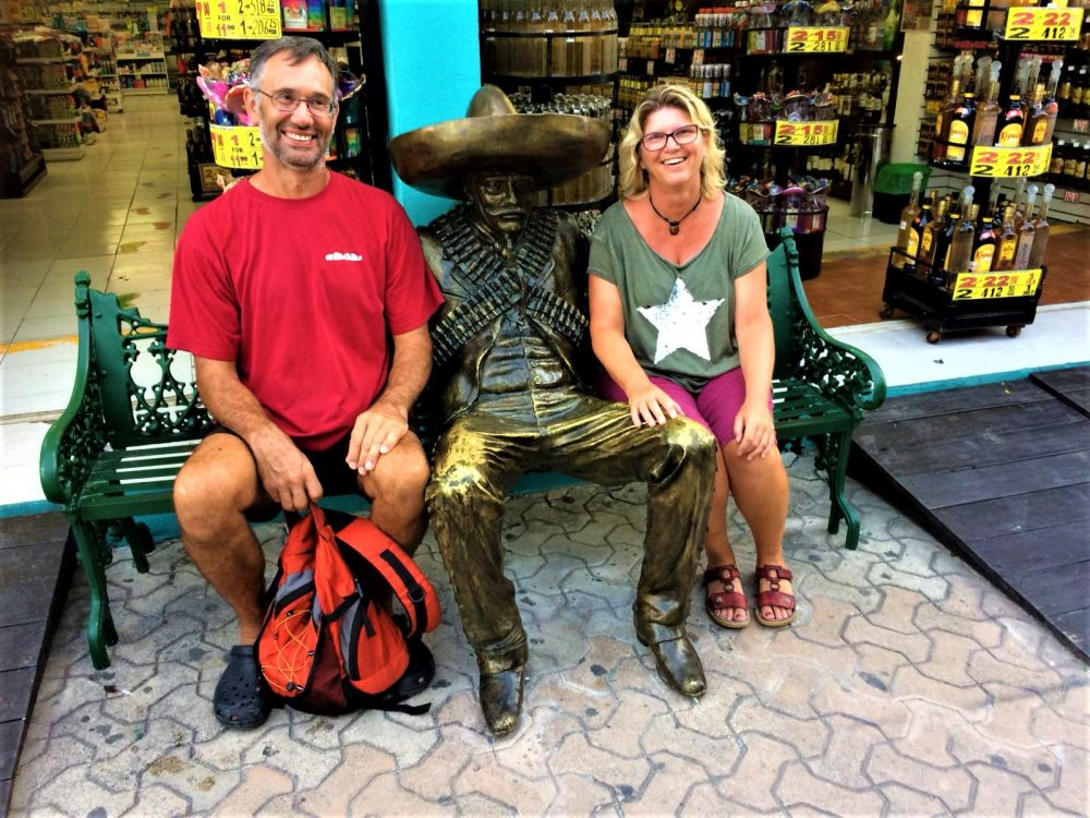 Nachdem wir das Wohnmobil in Tulum abgeholt hatten, machten wir uns nun mit zwei Autos auf direkten Weg nach Cancun, um Matthias Eltern vom Flughafen abzuholen. Über AirBnB haben wir das bereits im Voraus gebucht. Ein etwas in die Jahre gekommener Ford Transit, mit allem notwendigen ausgestattet, sollte als rollende Unterkunft für die nächsten 3 Wochen dienen. In Cancun erwarteten wir die beiden schon ungeduldig mit extra gebasteltem Empfangsschild am Flughafen Terminal. Nach schier endloser Wartezeit konnten wir die Beiden dann ein erstes kurzes Mal durch die Türen erblicken. Es ist schon ein gigantisches und überwältigendes Gefühl, wenn man sich nach ziemlich genau einem Jahr das erste Mal wieder in die Arme nehmen kann. Die Freude war auf beiden Seiten natürlich riesengroß. Wir packten alle Koffer in das zweite Wohnmobil und machten uns auf den Weg ins Zentrum von Cancun. Ein guter Campingplatz in Flughafennähe war leider nicht aufzutreiben, so verbrachten wir die erste Nacht bei einem Walmart. Es mussten ohnehin noch einige Einkäufe getätigt werden und die Walmart Parkplätze haben bei Overlandern in den meisten Fällen einen guten Ruf. Kostenlose Toiletten, freies WLAN, ein bewachter und ruhiger Parkplatz – ideal für eine Nacht. Nachdem alles Wichtige eingekauft war, verbrachten wir noch einen schönen gemeinsamen Abend im Erwin. Die Gesprächsthemen gingen uns jedenfalls so schnell nicht aus. Mit einem hatten wir allerdings dann doch nicht gerechnet: Es wurde die absolut heißeste Nacht seit wir im Erwin unterwegs sind. Matthias Eltern wurden gleich mal mit der mexikanischen Hitze konfrontiert und hatten genauso wie wir mit dem Schlaf zu kämpfen.