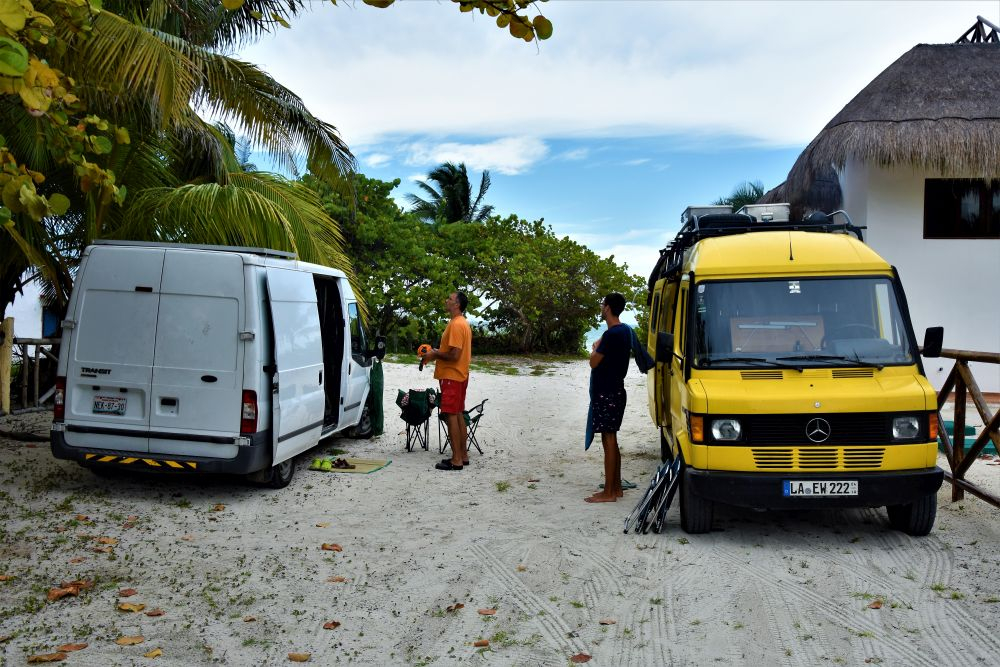 Als wir dann (gottseidank heil) in Tulum ankamen empfingen uns die beiden Vermieter schon und baten uns eine Übergangslösung an, solange das Wohnmobil repariert wurde. Nachdem Sie nur ein Wohnmobil – und keinen vollwertigen Ersatz haben – fiel die Lösung relativ dürftig aus. Ein kleiner Kastenwagen mit einem Bett und etwas Stauraum. Zwar ein komplett neues Fahrzeug das derzeit noch aufgebaut wird, jedoch viel kleiner und nicht wirklich praktikabel. Es blieb uns aber keine andere Wahl und Köpfe in den Sand stecken hätte uns auch nicht weiter gebracht. Wir wollten ja auch unsere Tour fortsetzen und nicht um Tulum rumgurken und auf die eventuell vielleicht irgendwann fertige Reparatur warten. Mexiko gehört so gesehen immer noch zu Südamerika… man geht eben alles gemütlich an. Zum Leid unseres gemeinsamen Urlaubes. Nach zwei Tagen stellte sich dann auch heraus, dass die Reparatur länger dauert als geplant und blabla… lange Rede kurzer Sinn – wir haben Gisela 2.0 behalten für den Rest des Urlaubs. So versuchten wir einfach das Beste daraus zu machen und wir sind uns sicher – das haben wir auch geschafft. Man muss fairerweise sagen, dass die beiden Vermieter sehr bemüht waren uns trotz der Situation so gut es geht zu helfen. Wir waren eher von der komplizierten Problemlösung und den Fähigkeiten des Mechanikers enttäuscht. Das hätten Sie eleganter und für uns besser lösen können.