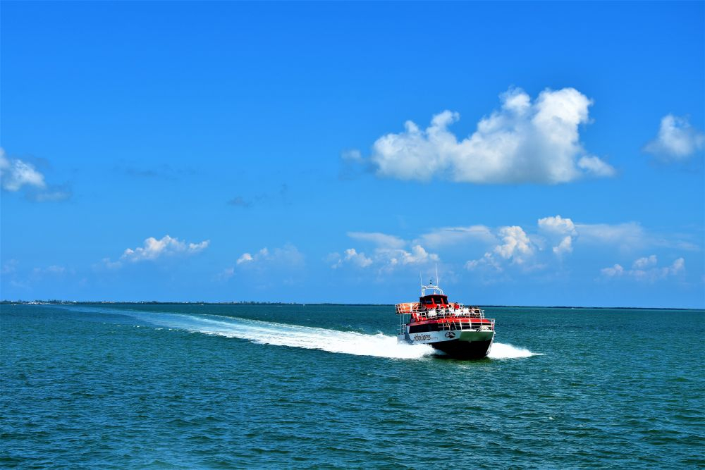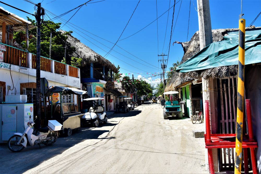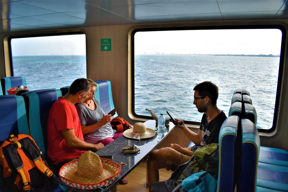Zum Abschluss unseres Roadtrips wollten wir uns noch drei schöne Tage auf der Isla Mujeres machen. Das war vom Weg her auch recht praktisch, denn die Isla liegt direkt neben Cancun und so hatten wir am letzten Tag nur ein paar Minuten zum Flughafen. Wir hatten ein kleines Apartment gebucht, da die Insel keine Campingplätze oder sonstige Stellplätze für Wohnmobile besitzt. Zudem sind die Straßen sehr eng, die Fähre teuer und die Apartments in der Zeit relativ günstig. Für uns vier war das jedenfalls ideal. Mit der Fähre ging es für umgerechnet 2€ pro Person in einer halben Stunde rüber zur Insel. Da wurde uns dann auch gleich klar, dass es eine gute Entscheidung war Erwin und Gisela 2.0 auf dem Festland zu lassen. Taxis, Roller und Golf-Caddys bestimmen auf der Insel das Straßenbild. Die engen Gassen können mit größeren Autos gar nicht befahren werden. Im Norden ist die Insel auch komplett zugebaut, hier hätten wir niemals einen passenden Stellplatz für uns gefunden.