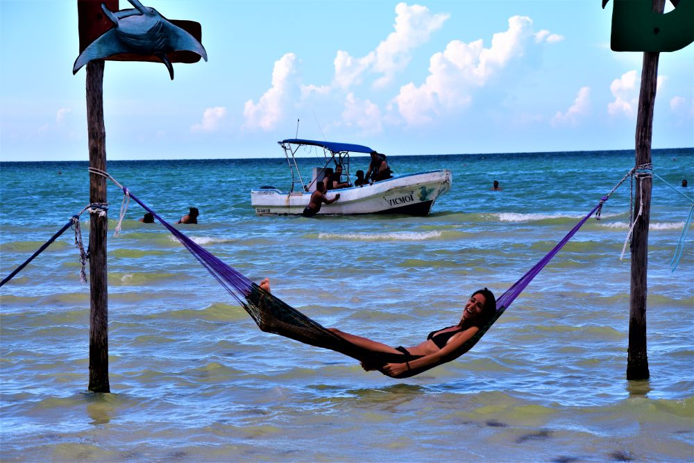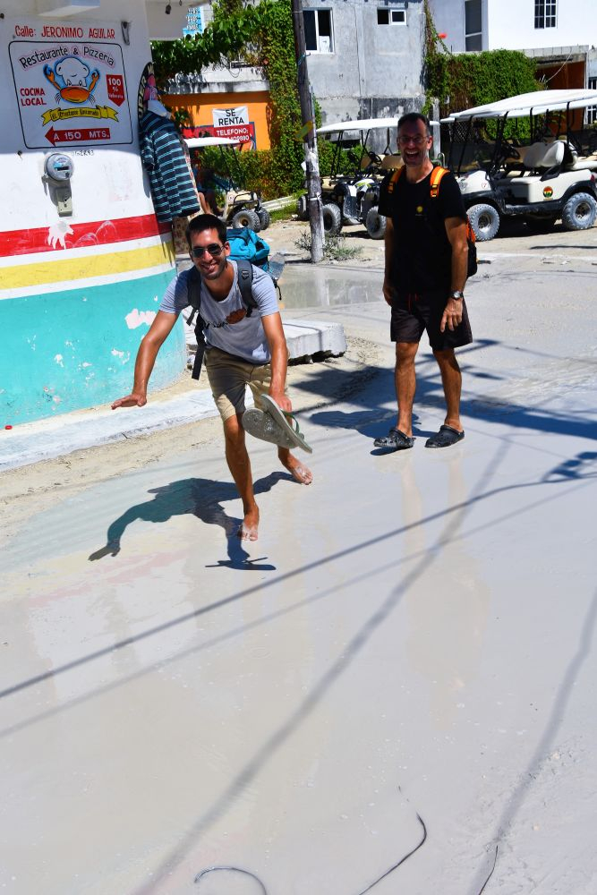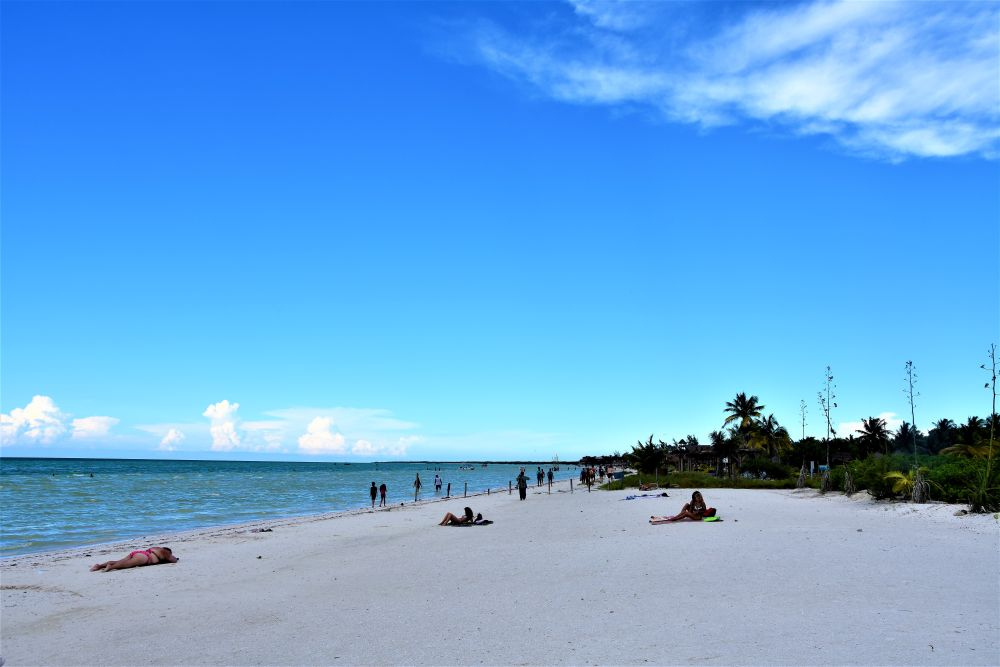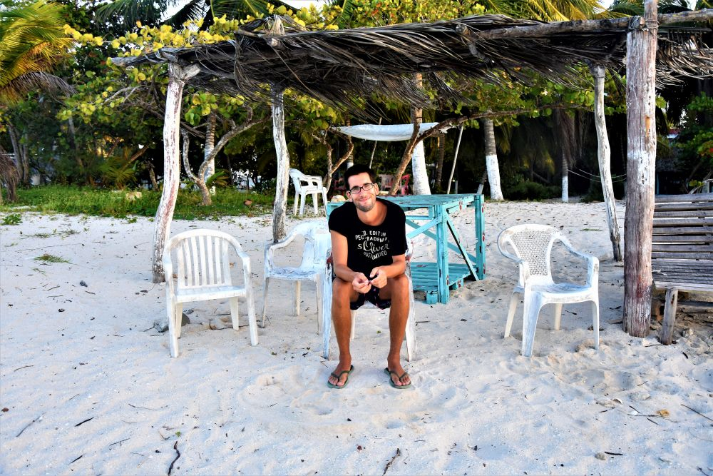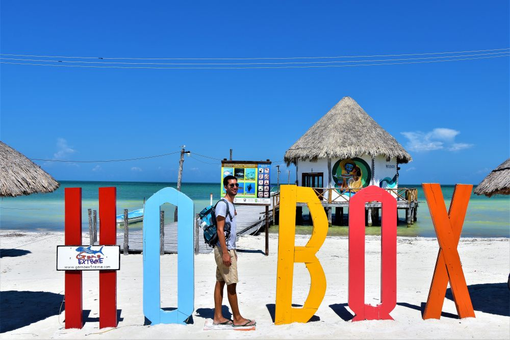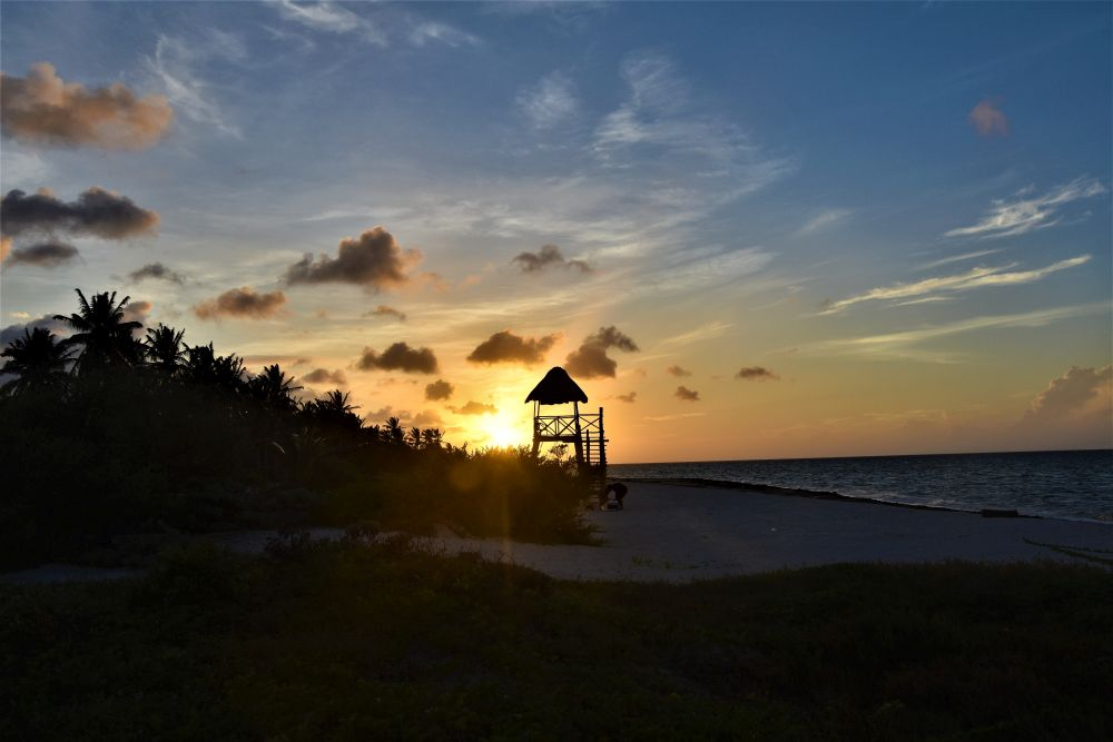 Wir haben uns ja im Vorfeld schon den Kopf zerbrochen wie wir die drei Wochen am besten nutzen können und so viel wie möglich von der Yucatan Halbinsel gemeinsam sehen können. Wie schon erwähnt, machte uns die Seegrasplage die Routenplanung etwas einfacher, da wir fast die gesamte Karibikküste aus dem Reiseprogramm gestrichen haben. Wir wollten auch etwas weg von den ganzen Touristenhochburgen wie Cancun und Playa del Carmen um das „richtige“ Mexiko kennenlernen. Am zweiten Tag der Reise machten wir uns erst einmal auf Richtung Insel Holbox. Einen Tag an weißen Sandstränden mit glasklarem Wasser zwischen Kokospalmen und Cocktailbars verbringen – das war ein willkommener Zwischenstopp. Nach dem wir eine Nacht noch vor der Insel auf einem kleinen Campingplatz Halt machten, ging es per Fähre (ohne Auto) vom Festland auf die Insel. Ein Geheimtipp ist die Insel zwar mittlerweile nicht mehr, doch wir waren ja in der Nebensaison unterwegs und von daher war es wirklich erträglich. Wir machten uns einen ganz entspannten Badetag, genossen herrlich leckere Tacos und Cocktails und spazierten beim Sonnenuntergang noch ein wenig an den Traumstränden entlang.