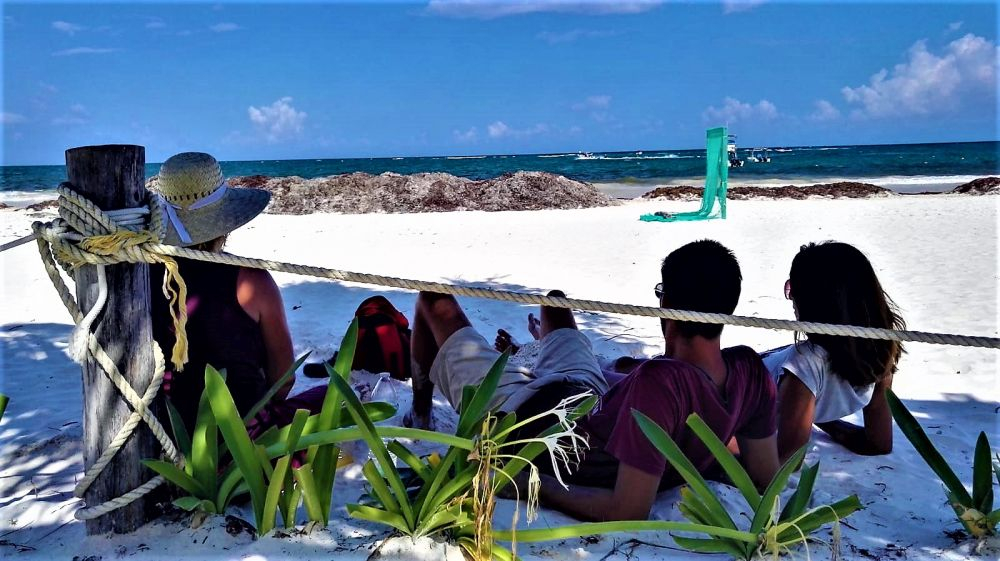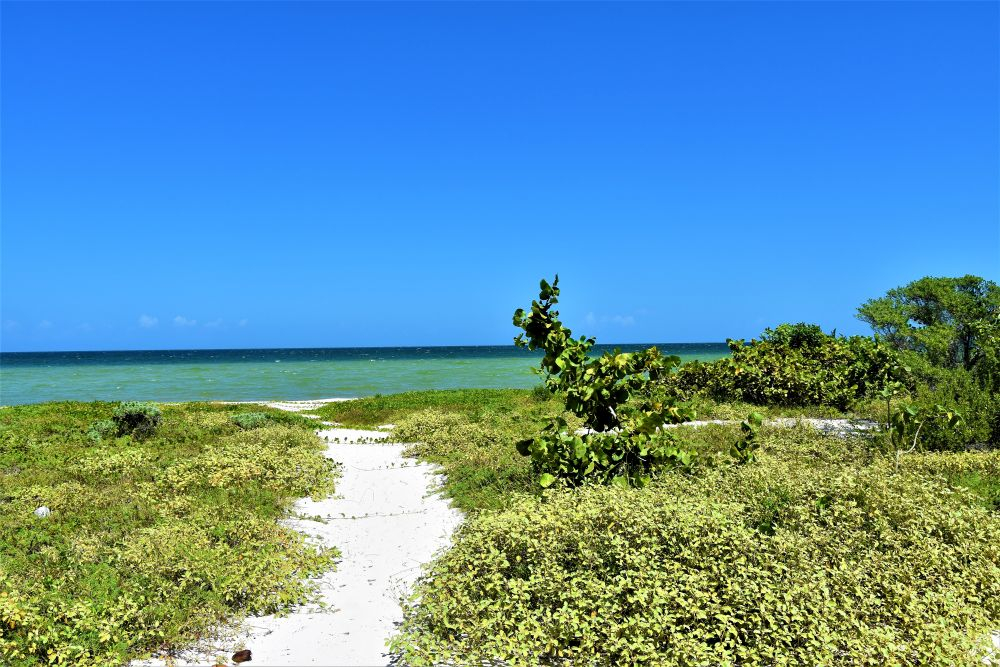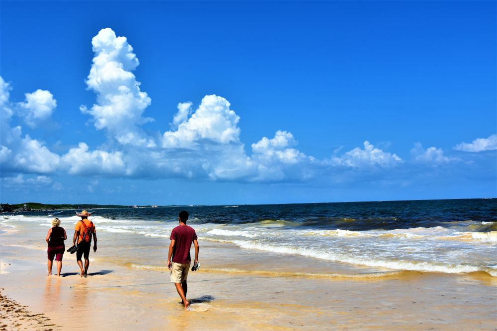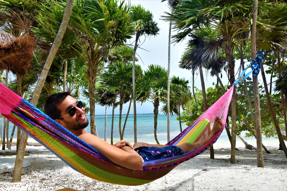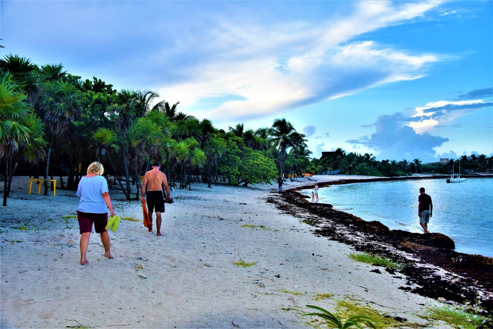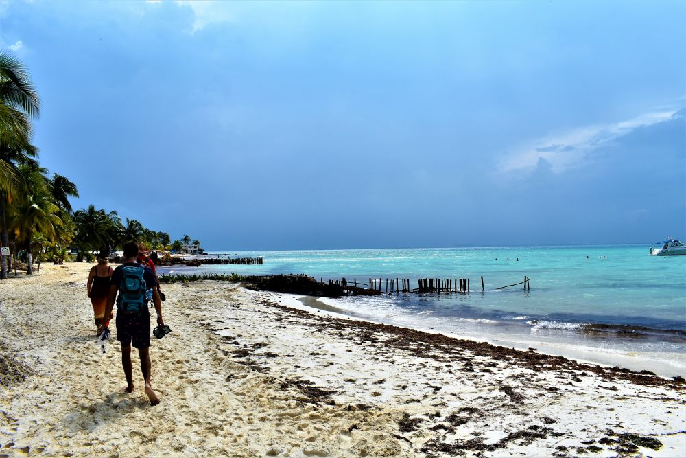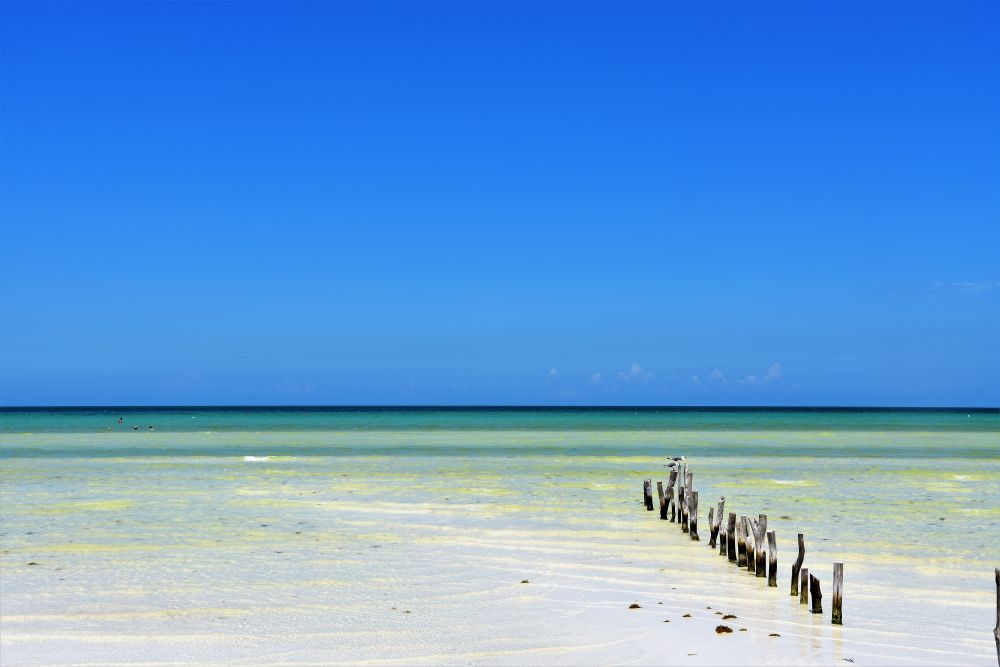 Wir haben uns ja im Vorfeld schon den Kopf zerbrochen wie wir die drei Wochen am besten nutzen können und so viel wie möglich von der Yucatan Halbinsel gemeinsam sehen können. Wie schon erwähnt, machte uns die Seegrasplage die Routenplanung etwas einfacher, da wir fast die gesamte Karibikküste aus dem Reiseprogramm gestrichen haben. Wir wollten auch etwas weg von den ganzen Touristenhochburgen wie Cancun und Playa del Carmen um das „richtige“ Mexiko kennenlernen. Am zweiten Tag der Reise machten wir uns erst einmal auf Richtung Insel Holbox. Einen Tag an weißen Sandstränden mit glasklarem Wasser zwischen Kokospalmen und Cocktailbars verbringen – das war ein willkommener Zwischenstopp. Nach dem wir eine Nacht noch vor der Insel auf einem kleinen Campingplatz Halt machten, ging es per Fähre (ohne Auto) vom Festland auf die Insel. Ein Geheimtipp ist die Insel zwar mittlerweile nicht mehr, doch wir waren ja in der Nebensaison unterwegs und von daher war es wirklich erträglich. Wir machten uns einen ganz entspannten Badetag, genossen herrlich leckere Tacos und Cocktails und spazierten beim Sonnenuntergang noch ein wenig an den Traumstränden entlang.