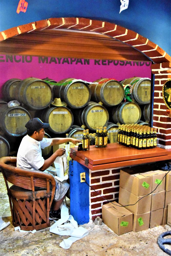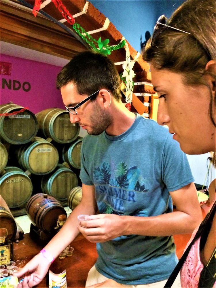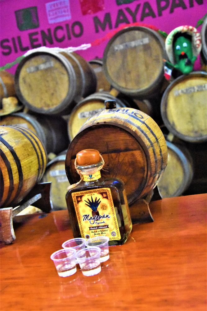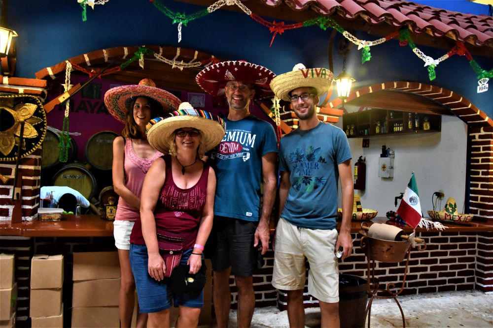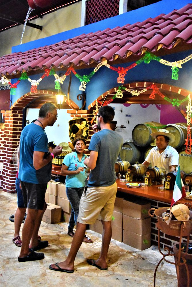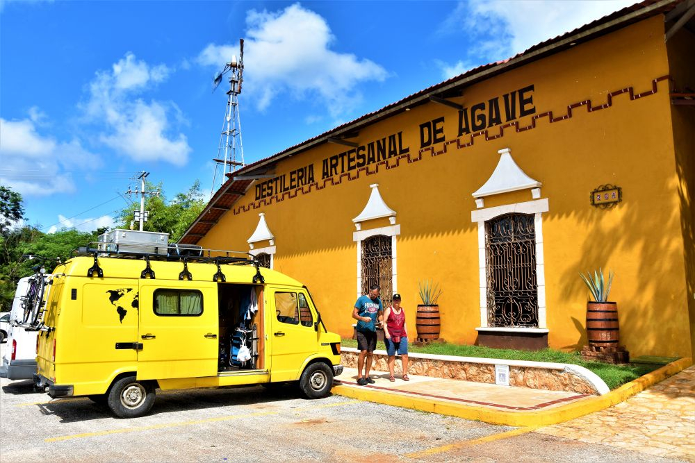 Was verbinden viele mit Mexiko? Sombreros, gutes Essen und Tequila. Bei unserem Start der Reise bekamen wir schon im Walmart einen ersten Crashkurs bei der Wahl des richtigen Tequilas. Trotzdem wollten wir uns eine Destillerie (wenn möglich mit Verkostung ;)) nochmal genau anschauen. Kurz vor der Stadt Valladolid, bei der Tequila Brennerei Mayapan ist dies möglich. Man kann dort eine kleine geführte Tour durch das Gelände machen und sieht den Herstellungsprozess des Tequila von der Agave auf dem Feld bis zur fertig etikettierten Flasche. Wir hatten auf jeden Fall Spaß, was nicht zuletzt an den 5 „Probetequila“ um 11:00 Uhr vormittags lag…