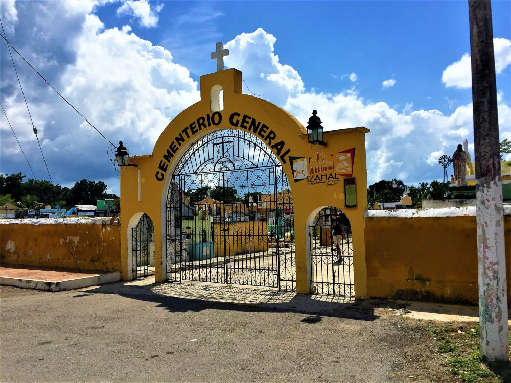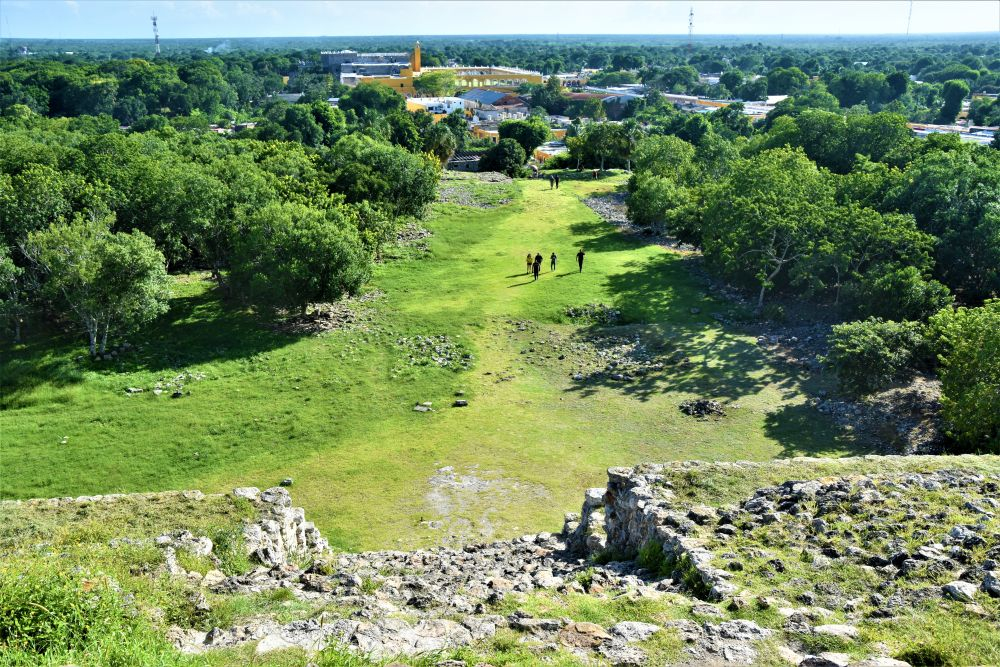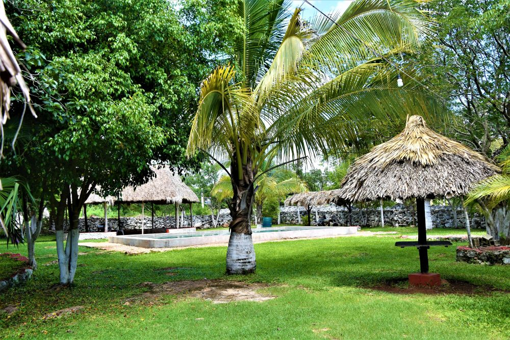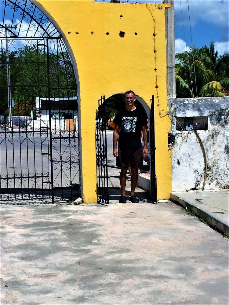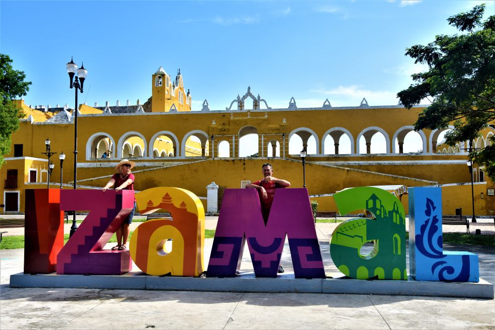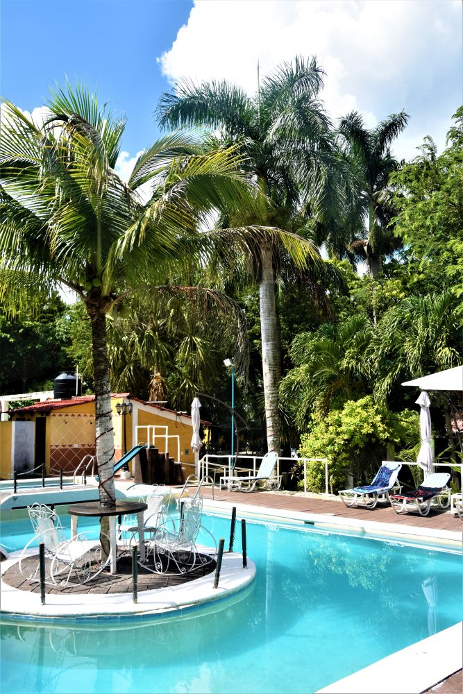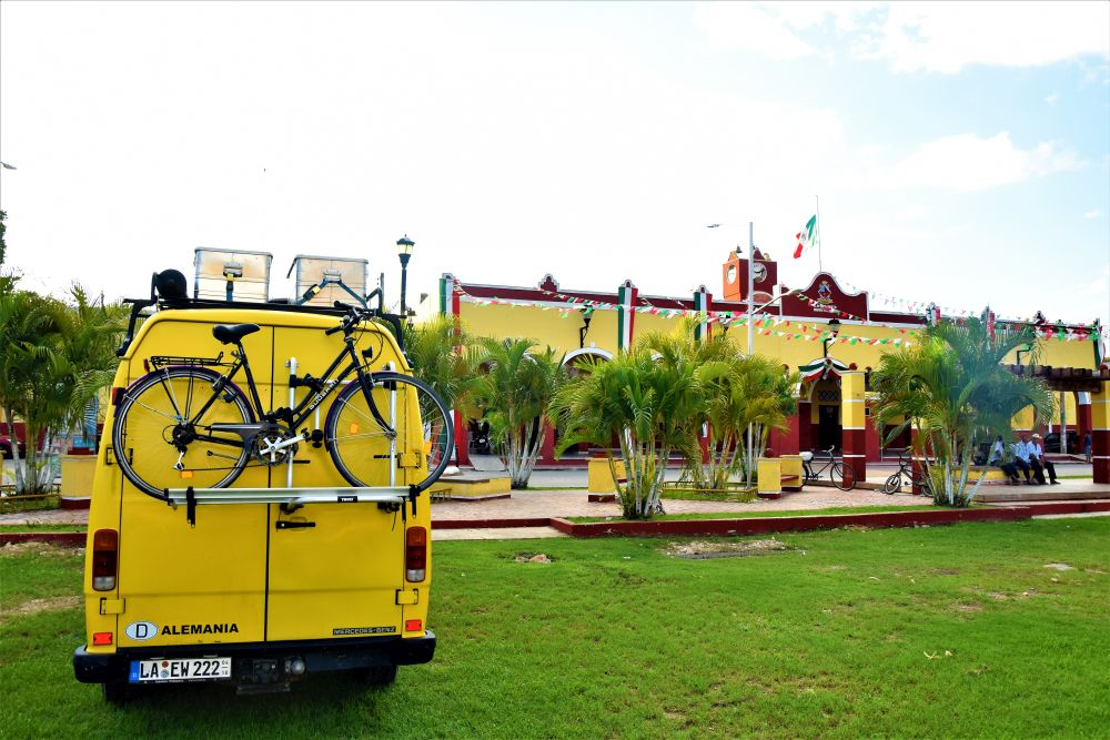 Weiter gings mit unserer geplanten Tour durch Yucatan. Die Stadt Izamal stand auf dem Programm, da es hier tolle alte Gebäude, alle in Gelb, zu sehen gibt. Die ganze Stadt ist bekannt für seine gelben Fassaden. Wir parkten am zentralen Plaza der Stadt und erkundeten die umliegenden Gebäude. In Izamal befinden sich sogar alte Maya Ruinen, die man kostenlos betreten darf. Man kann auf eine Pyramide steigen und bekommt einen wunderbaren Ausblick über die Kleinstadt. Uns hat die Stadt sehr gut gefallen. Das Beste war, dass wir noch einen richtig tollen Platz zum Übernachten gefunden haben. Ein altes Hotel, das leider schon etwas in die Jahre gekommen ist aber den Hotelgarten für Wohnmobile anbietet. Wir campieren mitten im Grünen und können die sanitären Anlagen und den Swimmingpool benutzen.
