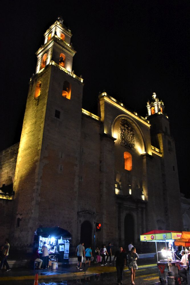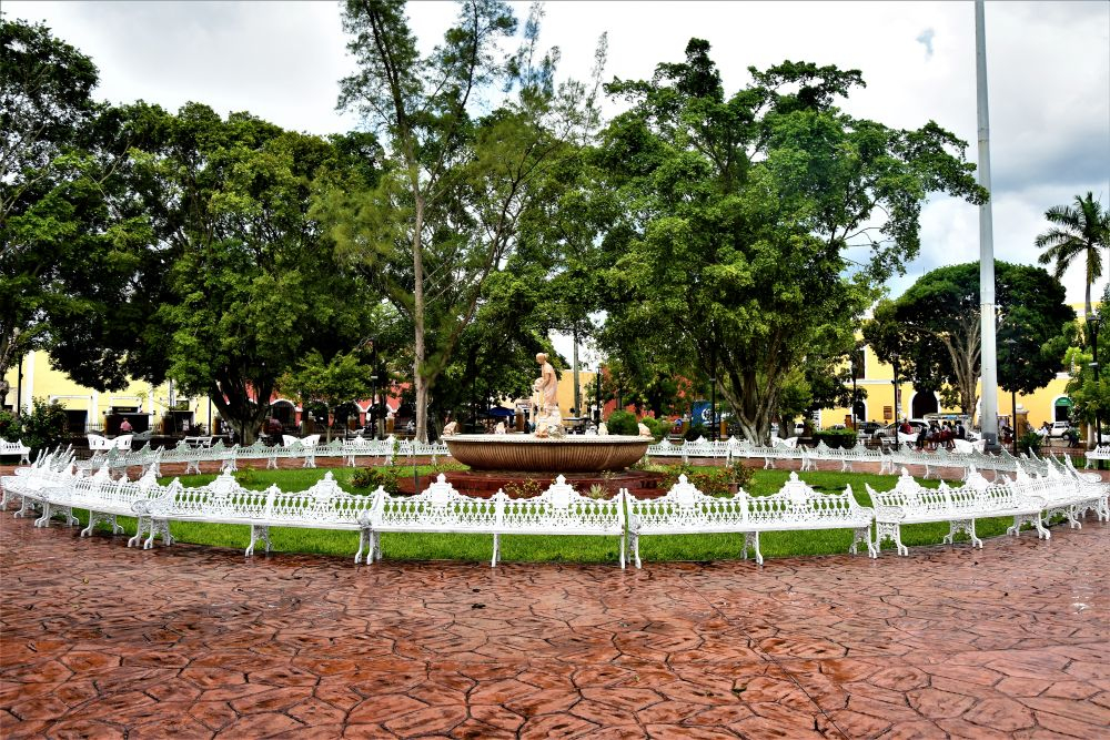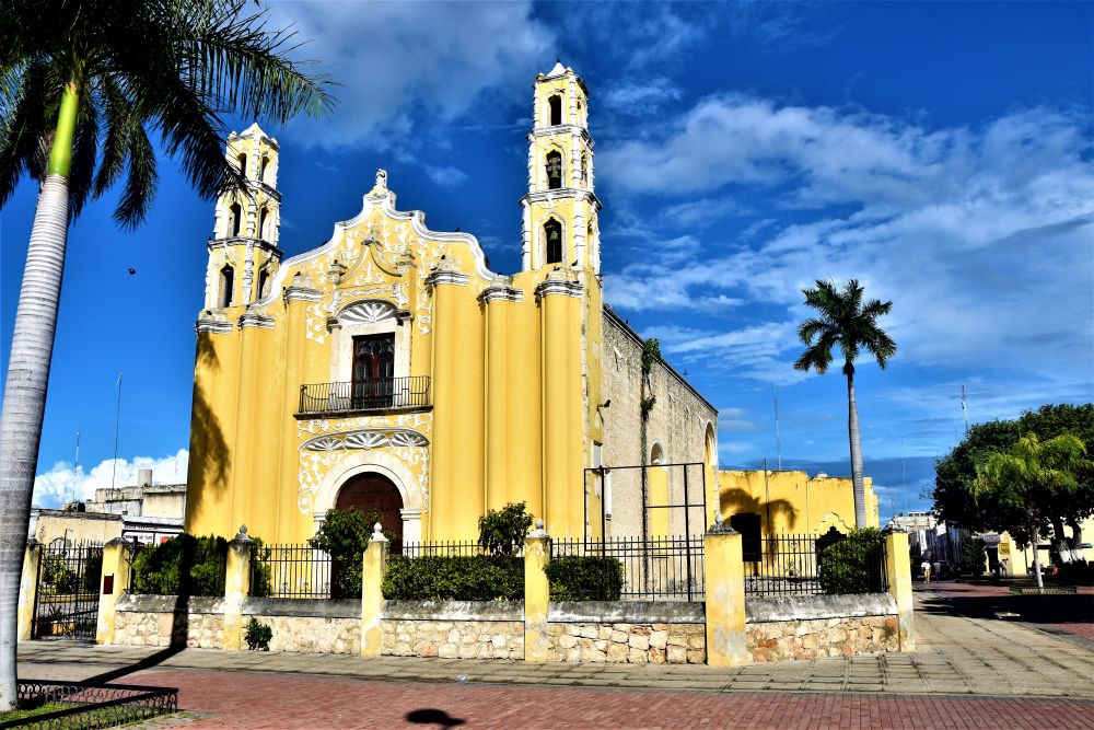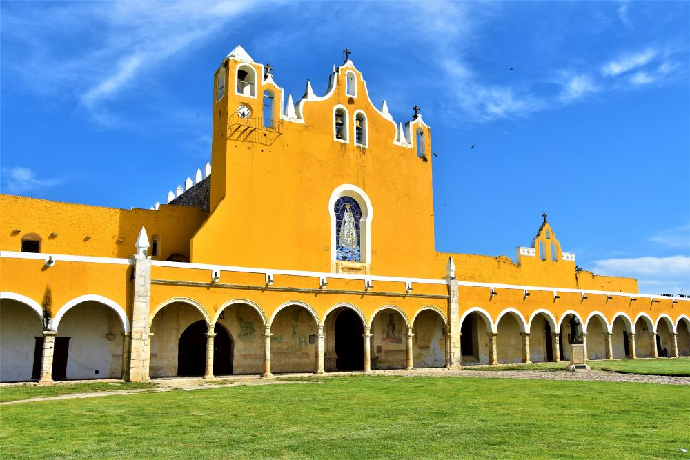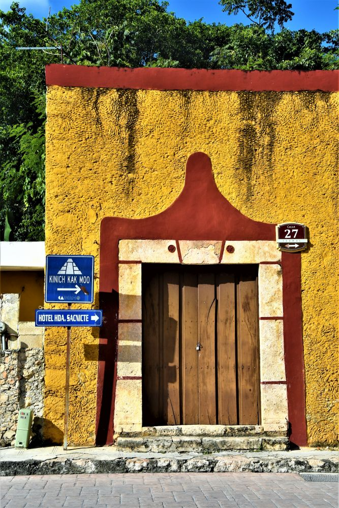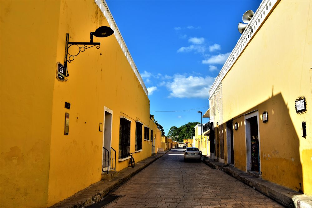 Weiter gings mit unserer geplanten Tour durch Yucatan. Die Stadt Izamal stand auf dem Programm, da es hier tolle alte Gebäude, alle in Gelb, zu sehen gibt. Die ganze Stadt ist bekannt für seine gelben Fassaden. Wir parkten am zentralen Plaza der Stadt und erkundeten die umliegenden Gebäude. In Izamal befinden sich sogar alte Maya Ruinen, die man kostenlos betreten darf. Man kann auf eine Pyramide steigen und bekommt einen wunderbaren Ausblick über die Kleinstadt. Uns hat die Stadt sehr gut gefallen. Das Beste war, dass wir noch einen richtig tollen Platz zum Übernachten gefunden haben. Ein altes Hotel, das leider schon etwas in die Jahre gekommen ist aber den Hotelgarten für Wohnmobile anbietet. Wir campieren mitten im Grünen und können die sanitären Anlagen und den Swimmingpool benutzen.