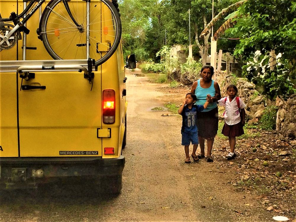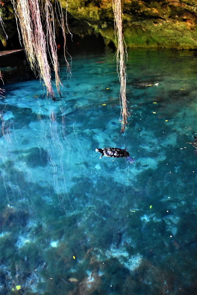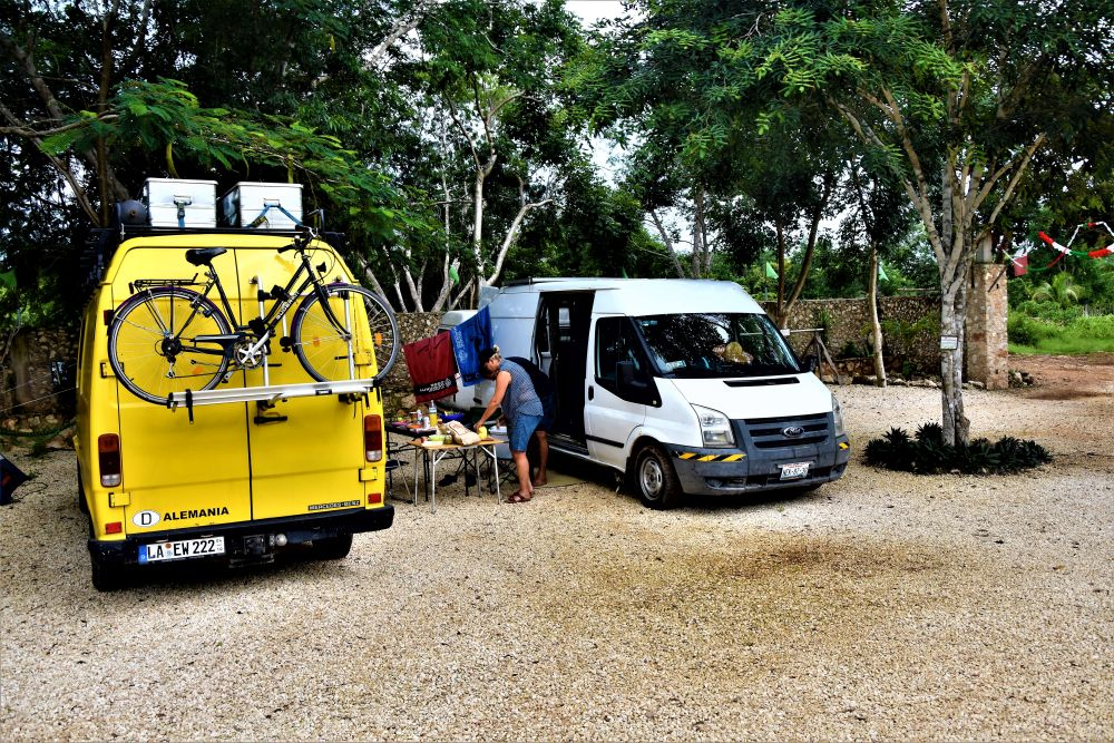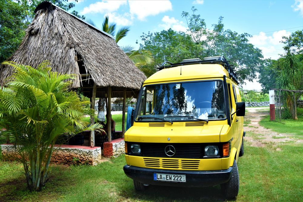 Die Tage während wir unwissend unnötig auf die Reparatur von Gisela 1.0 warteten, verbrachten wir in und um Tulum. Ein Campingplatz am Meer und einer im Dschungel ließen uns die Tage gut überstehen. Man kann sich in Tulum sehr gut aufhalten – das Nachtleben ist einmalig! Unzählige Bars, Restaurants und Kneipen haben jeden Tag geöffnet, für jeden Geschmack und Geldbeutel ist etwas dabei. Wir verbringen tolle Abende bei Cocktails, leckerem Essen und genießen einfach die gemeinsame Zeit. Wer in Tulum Cocktails trinken möchte, sollte unbedingt im „Bateys“ vorbeischauen. Dort gibt es jeden Tag Live-Musik und super leckere Cocktails mit frisch gepresstem Zucker aus Zuckerrohr. Den letzten Tag in Tulum verbrachten wir vier dann getrennt. Bärbel und Christian wollten noch eine Schnorchel Tour mit Schildkröten in Akumal machen, und wir gingen derweil in die Grande Cenote, etwas nördlich von Tulum. Der Schnorchelausflug war, so wie Sie uns berichteten wunderschön. Meeresschildkröten, Rochen, bunte Fische… alles wie im Bilderbuch. Dafür ist die Riviera Maya ja berühmt… und Akumal sowieso wegen der vielen Schildkröten. Unseren Besuch in der Grande Cenote werden wir auch nicht vergessen, war es doch die bisher schönste Cenote. Kleine Schildkröten, Fische und Höhlen gab es zu bewundern und zu „beschnorcheln“. Es war zwar recht touristisch, aber man konnte sich den ganzen Tag gut aufhalten. Nachdem es an diesem Tag schon recht spät war, musste wegen fehlender Campingplätze in Tulum nochmal der Chedraui Parkplatz (Für einen Supermarkt Parkplatz ein echter Overlander Hotspot) herhalten. Am nächsten Morgen brachen wir dann früh auf um unsere ursprüngliche Tour da fortzusetzen, wo uns Gisela 1.0 verlassen hat – kurz vor der gelben Stadt.
