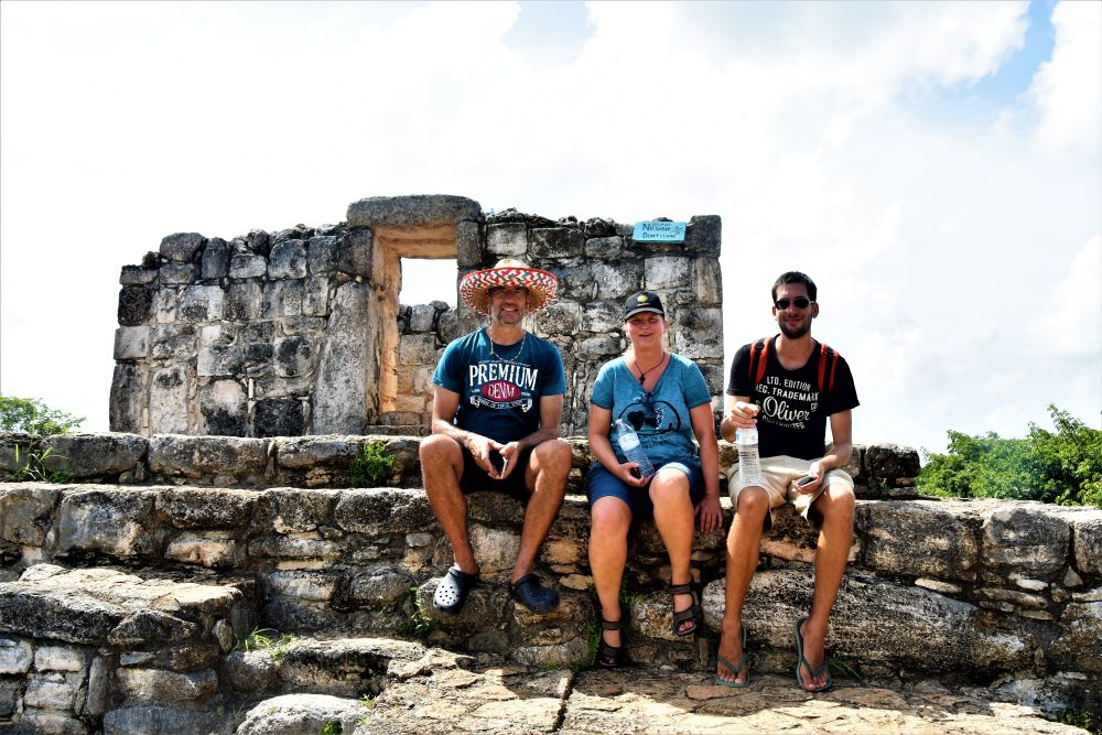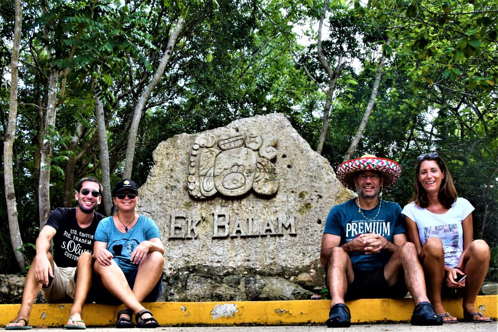 Schon nach wenigen Tagen kehrte ein richtig toller Reisealltag zu viert ein. Einkaufen, Kochen, Reiseplanung… alles lief Bestens. Und so folgte auch schon der nächste größere Programmpunkt. Die Ruinen von Ek Balam. Ähnlich wie Chichen Itza, Uxmal und wie sie alle heißen kann man hier alte Maya Ruinen besichtigen. Als eine der letzten bietet Ek Balam jedoch die Möglichkeit, die Ruinen auch zu besteigen. So kam bei uns eine Art von „Indianer-Jones-Gefühl“ auf….wie die kleinen Kinder 😉 Die Anlage ist wirklich wunderschön und das Hauptgebäude ist eines der größten, vollständig erhaltenen Komplexen. Die einzigen Bewohner – die Iguanas – ließen sich auch immer wieder blicken. Sie fühlen sich bei den Temperaturen erst richtig wohl, was man bei uns nicht gerade sagen konnte. Zwischen den heißen Steinen fühlt man sich doch relativ schnell wie ein verwelkendes Gänseblümchen. Als wir gleich am Eingang gesehen haben, dass in der Nähe der Ruinen eine Cenote liegt, war schnell klar, dass es genau diese Abkühlung nachher dringend braucht. Ein toller Abschluss für einen gelungenen Tag.