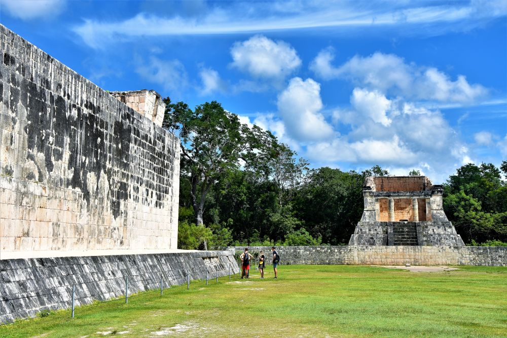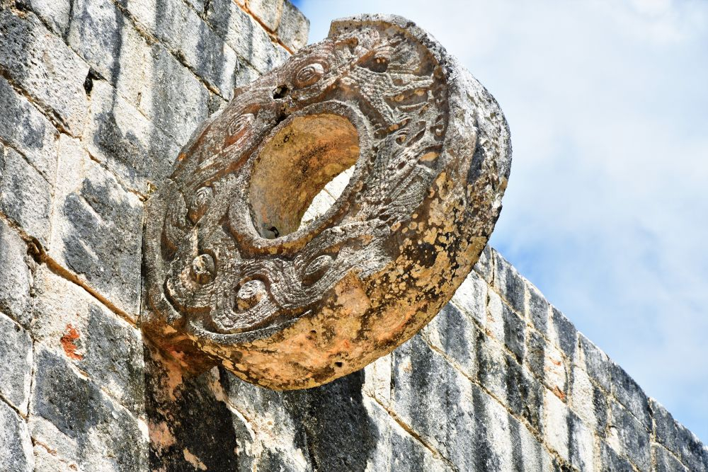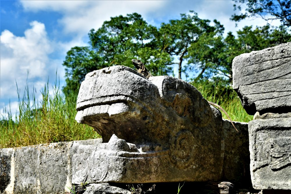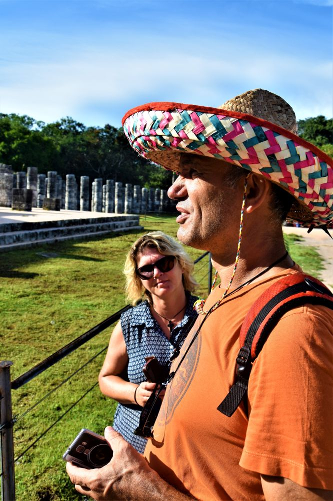 Natürlich durften bei unserem Yucatan Roadtrip die klassischen Hotspots nicht fehlen. Ein Besuch des neuen Weltwunders, den Maya Ruinen Chichen Itza, zählte zum Pflichtprogramm. Wir verbrachten die Nacht davor recht nah am Eingang der Archäologischen Stätte, damit wir am darauf folgenden Morgen gleich recht früh los starten können und so den meisten Touristen und (aufdringlichen) Händlern entfliehen können. Gleich um 08:00 Uhr früh ging es los. Wir fuhren zum Parkplatz und bewaffneten uns mit Wasser und Moskitoschutz. Was uns den Eintritt dann noch etwas vermiest hat, war die Tatsache, dass Gisela (so wurde das zweite Wohnmobil mittlerweile genannt – irgendeinen Namen musste es ja neben Erwin bekommen) plötzlich zickte und die Annahme eines Ganges verweigerte. Die Kupplung funktionierte nicht mehr. Wir beschlossen dem Vermieter Bescheid zu geben und während seiner Problemlösung derweil die Ruinen zu besuchen. Der Eintritt war, sogar für Extranjeros, überraschenderweise günstig. Wir hätten nicht gedacht, dass man sich hier für umgerechnet 14€ pro Person den ganzen Tag aufhalten darf. Ein Guide ist bei diesem Preis natürlich nicht inbegriffen, der war uns dann mit 60-70€ auch ehrlichgesagt etwas zu teuer. Wir verbrachten den ganzen Vormittag in der großen Anlage. Zeit hatten wir ja genug, und es gab einfach unendlich viel zu entdecken und zu bewundern. Wirklich von Vorteil war, dass wir so früh dort waren. Es waren zwar schon einige andere Besucher dort, doch wir konnten z.B. den großen Haupttempel gut ohne Menschen fotografieren. Die Ruinen sind äußerst beeindruckend, vor allem wenn man bedenkt zu welcher Zeit diese erbaut wurden und dass davon erst ein kleiner Teil freigelegt und der Öffentlichkeit zugänglich gemacht wurde. Richtig fasziniert waren wir vom „Sportplatz“ der Mayas. Auf dem Gelände befindet sich ein großer Platz, den die Maya früher für ein spezielles Ballspiel genutzt hatten. Zwei Teams versuchten einen Ball (der angeblich bis zu 5 Kilo wog) mit Händen und Füßen durch einen gegnerischen Ring zu werfen… oder schießen. Der Ball durfte den Boden nicht berühren soweit wir das verstanden haben. Dieser steinerne Ring befand sich ungefähr in 3-4 Metern Höhe… kaum vorstellbar dass man hier einen so schweren Ball hindurch bekommen hat. Am Ende des Spiels wurde ein Team dann geopfert. Es ist irgendwie noch nicht so genau überliefert, zumindest haben wir es nicht rausbekommen, ob das Gewinner- oder Verliererteam, das ganze Team oder nur ein bestimmter Spieler geopfert wurde. Für die Mayas war es damals ja scheinbar eher eine „Ehre“ wenn man für die Götter sterben durfte. Naja… auf jeden Fall ziemlich makaber wie wir finden. Zum Abschluss ergatterten wir noch günstige Souvenirs und verließen die Ruinen wieder.