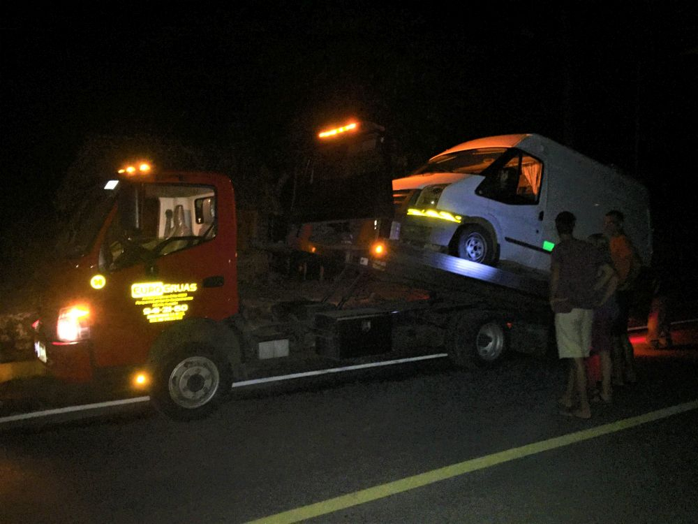 Am Parkplatz wartete immer noch das nicht mehr fahrbereite zweite Wohnmobil. Wir hatten inzwischen ja Kontakt zum Vermieter aus Tulum aufgenommen und baten um Problemlösung. Die kam auch gleich ein paar Minuten später in Form von zwei gut beleibten, dreckigen und schmierigen Mechanikern. Als wir den beiden erklärten was das Problem sei und was wir vermuten, stimmten sie uns zu und meinten aber, dass wir hier keine Chance mit Ersatzteilen hätten. Defekt war eigentlich nur der Kupplungs-Nehmerzylinder am Getriebe. Wenn man das passende Ersatzteil hat ist der Austausch unkompliziert und in einer halben Stunde bis Stunde zu erledigen. Es wäre also (unserer Meinung nach) die einfachste Lösung gewesen wenn wir in der nächst größeren Stadt einfach den Schaden reparieren lassen hätten, doch der Vermieter wollte das Fahrzeug abschleppen lassen. Wegen sowas das Auto gleich 250 Kilometer abschleppen und unsere ganze Planung über den Haufen zu werfen war natürlich das letzte was wir zu dem Zeitpunkt gebrauchen konnten, doch es half nichts. War ja immerhin auch nicht unser Fahrzeug, da hätten wir anders gehandelt und wahrscheinlich am nächsten Vormittag wieder on the road gewesen. Wir harrten also am Parkplatz von Chichen Itza aus bis der vom Vermieter bestellte Abschleppdienst eintraf. Das zog sich bis es dunkel wurde, da dieser einen weiten Anfahrtsweg hatte. Gegen 20:30 Uhr traf dieser dann ein und lud Gisela auf. Matthias Eltern fuhren beim Abschleppdienst mit, wir mit Erwin hinterher. Es war die wohl abenteuerlichste Fahrt die die beiden wohl gemacht haben. Wir konnten es ja recht gut beobachten wie der Abschlepp-LKW immer wieder auf längeren ermüdenden Abschnitten den Fahrstreifen voll ausnutzte. Zum Teil sogar gefährlich nah an den Graben fuhr. Der Fahrer war sichtlich übermüdet und einmal mussten Matthias Eltern sogar ins Lenkrad greifen…