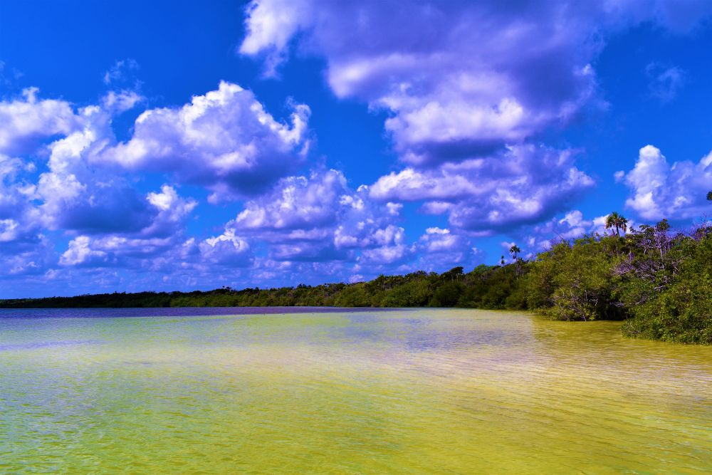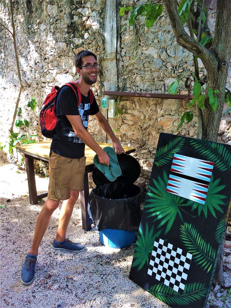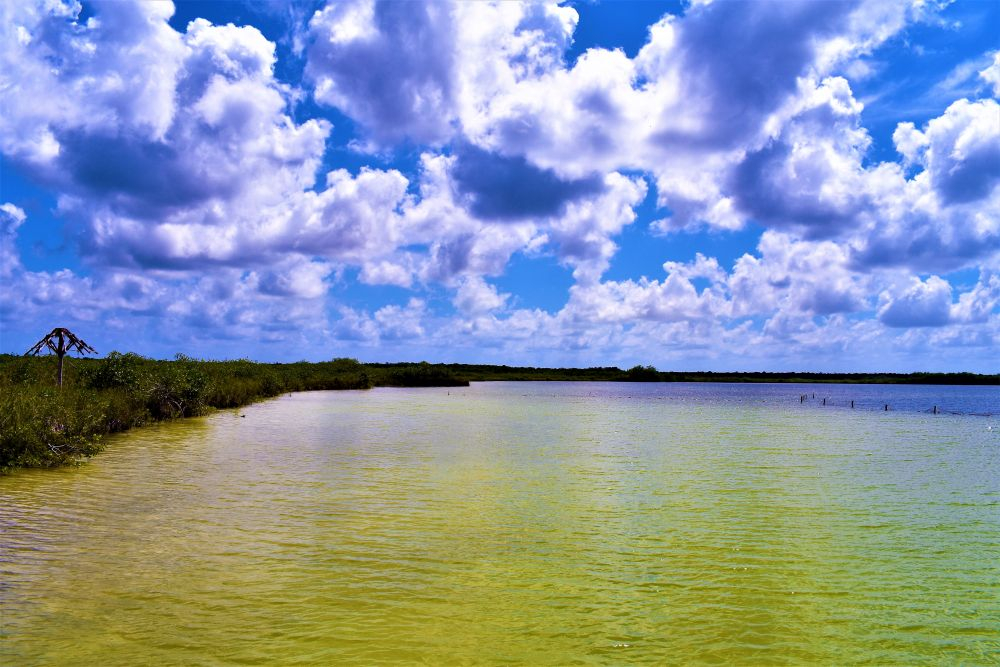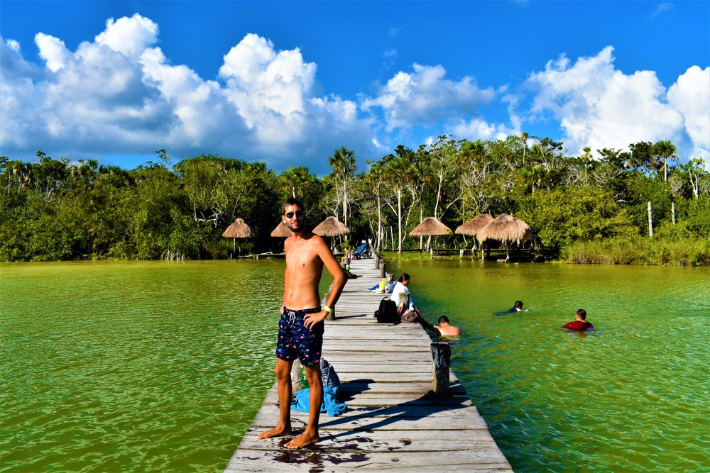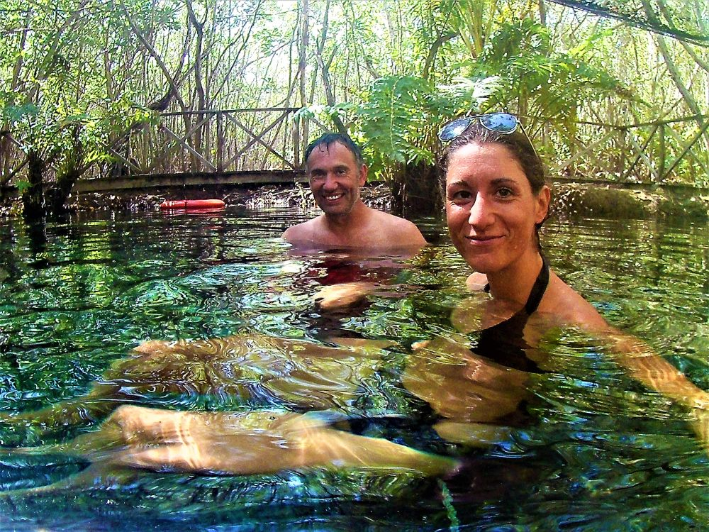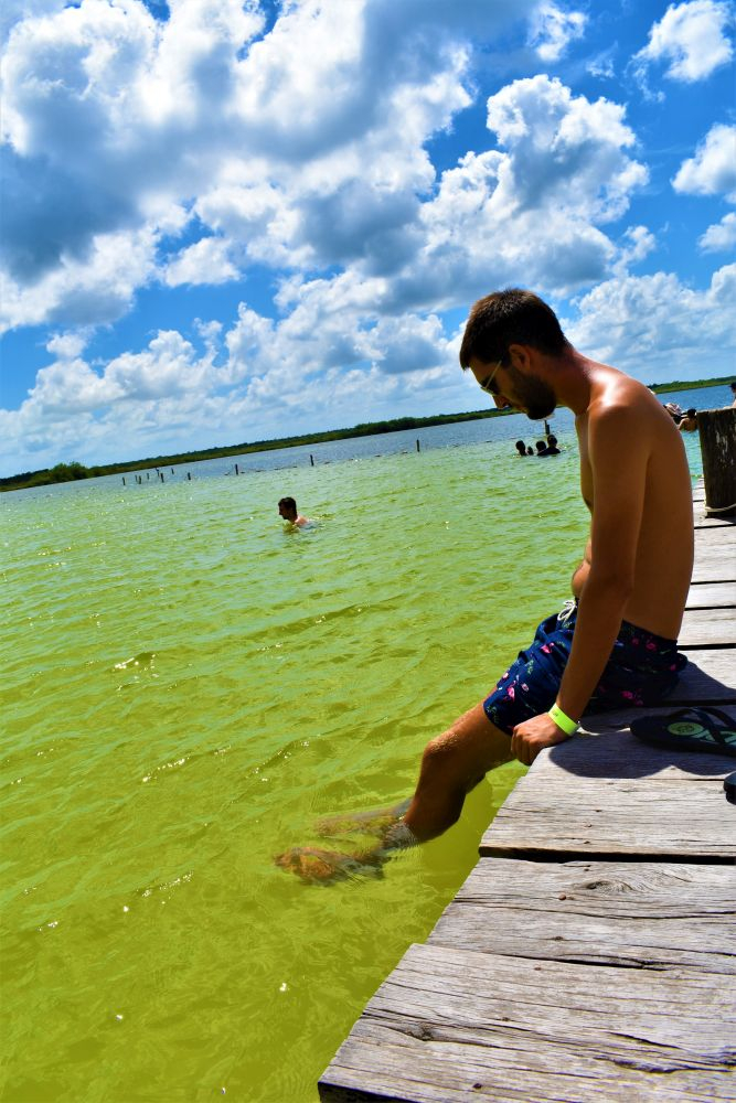 Ganz zufällig entdeckten wir am Straßenrand ein Schild „Laguna Kaan Luum“ und dachten, dass wir ja einfach mal vorbei schauen können. So ein Badetag ist auch ganz angenehm und richtig in Reisestimmung waren wir eh noch nicht. Die Lagune hatte sogar einen kleinen Eintrag in unserer „Reiseapp“, aus der wir immer wieder Empfehlungen anderer Overlander ziehen. Der Eintritt war mit ein paar Pesos recht human und so verbrachten wir an der glasklaren Lagune, die leider wegen starker Regenfälle eher gelb als blau war, einen schönen Badenachmittag. Das Wasser war, wie überall hier auf der Yucatan Halbinsel angenehm warm und man hatte beim Baden einen tollen Blick auf den umliegenden Dschungel.