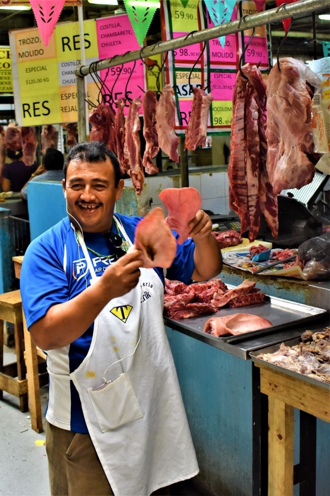 Unsere gemeinsamen Tage neigten sich langsam dem Ende zu. Der vorletzte Programmpunkt stand bevor. Wir fuhren nach Merida, der Hauptstadt des Bundesstaates Yucatan. Beim Hostel La Ermita fanden wir wieder mal einen idealen Stadt-Campingplatz mitten in der City. Wir hatten alles in fußläufiger Entfernung und konnten uns auch super im Innenhof des Hostels am Swimmingpool aufhalten. Sogar ein kleines Frühstück war im Preis mit inbegriffen. Am Abend erkundeten wir gleich mal das historische Zentrum und gingen noch lecker yucatanisch Essen. Es war richtig was geboten. Am Hauptplatz waren Verkaufsstände aufgebaut, es gab Streetfod und traditionelle Tänze. Am nächsten Tag besuchten wir noch den großen Markt in Merida, wo Matthias eeendlich seit einem Jahr neue Flip Flops in passender Größe fand!! Deshalb auch das Flip-Flop-Wegwerfbild 😉 Wir ließen es uns wirklich gut gehen, genossen am Abend noch selbst gemachte Shrimp Tacos und versuchten, nicht an das Ende der gemeinsamen 3 Wochen zu denken. Als wir Merida wieder verließen, freuten wir uns (besonders Matthias) auf eine traditionelle deutsche Metzgerei. Die wurde und schon in Veracruz von einem Einheimischen empfohlen und die Vorfreude war natürlich riesengroß. In Matthias Gedanken kreisten schon Tüten voller Weißwürste, Wiener, Leberkäse, Wollwürste und tausende andere Leckereien umher. Doch es war leider sehr enttäuschend. So richtig authentisch war die Metzgerei nicht. Niemand sprach Deutsch und die Auswahl der Fleisch- und Wurstwaren hatte auch nicht viel mit der Heimat gemeinsam. Schade… aber um nicht ganz umsonst den Umweg in Kauf genommen zu haben kauften wir ein paar Weißwürste. Ein Fehlkauf, wie sich später rausstellte. Dahoam schmeckts einfach am besten.