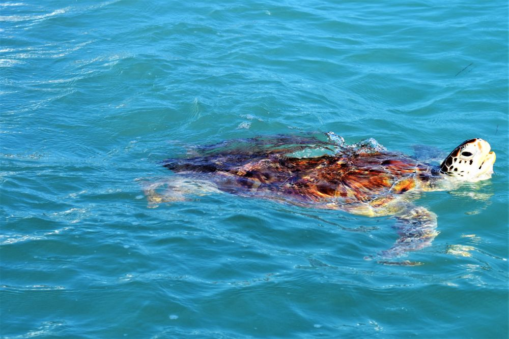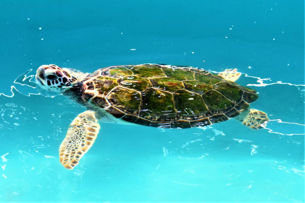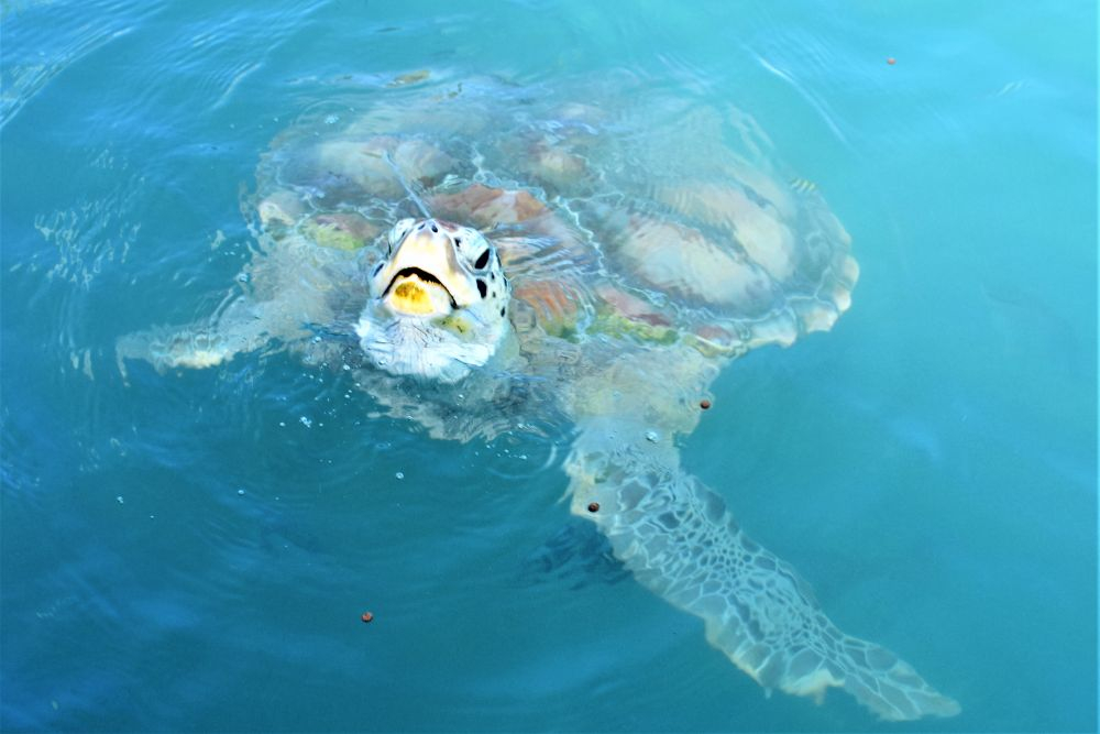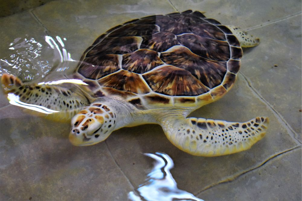 Ein Grund, auf die Isla Mujeres zu fahren war unter anderem die Schildkrötenfarm im Süden. Dort werden seit Jahrzehnten Schildkröten gerettet und wieder freigesetzt. Die Helfer holen die Eier vom Strand um sie vor Feinden wie z.B. den ganzen Meeresvögeln zu retten. Die Eier werden dann in der Aufzuchtstation behutsam gesammelt, dokumentiert und ausgebrütet. Dann bleiben die geschlüpften Schildkröten noch ein ganze Zeit in gesicherten Meeresbecken bevor sie wieder zurück in den Ozean schwimmen dürfen. Auf diese Weise können die Schildkröten vor den natürlichen Feinden etwas geschützt werden. Die Anzahl der Schildkröten geht nämlich jährlich zurück. Das liegt zum Großteil auch – wie soll es anders sein – am Menschen, der die Tiere seit Jahren jagt und als Delikatesse serviert. Wir verstehen nicht wo hier die Delikatesse sein soll, aber leider sehen das viele Menschen anders und machen gezielt Jagd auf Meeresschildkröten.