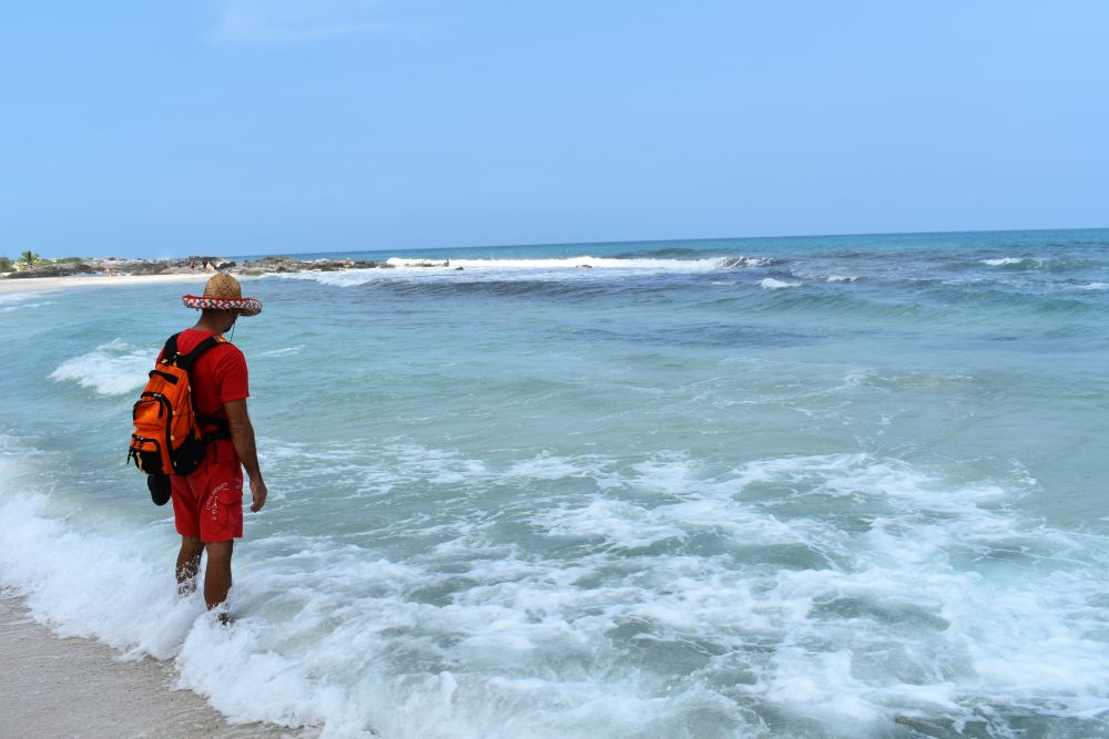 Nicht weit entfernt von Holbox befindet sich das kleine Fischerdorf El Cuyo. Hier ist das Meer zwar nicht ganz so schön wie auf der Insel Holbox, dafür kann man hier mit sehr wenig Touristen ein sehr ursprüngliches Mexiko erleben. Wir schlugen unser Lager nur ein paar Meter entfernt vom Meer auf und verbrachten einen schönen Tag in dem Ort. Das Meer hatten wir fast für uns alleine. Zu später Stunde und auch am nächsten Tag machten wir dann noch Bekanntschaft mit den vielen kleinen aber auch größeren Krabben.