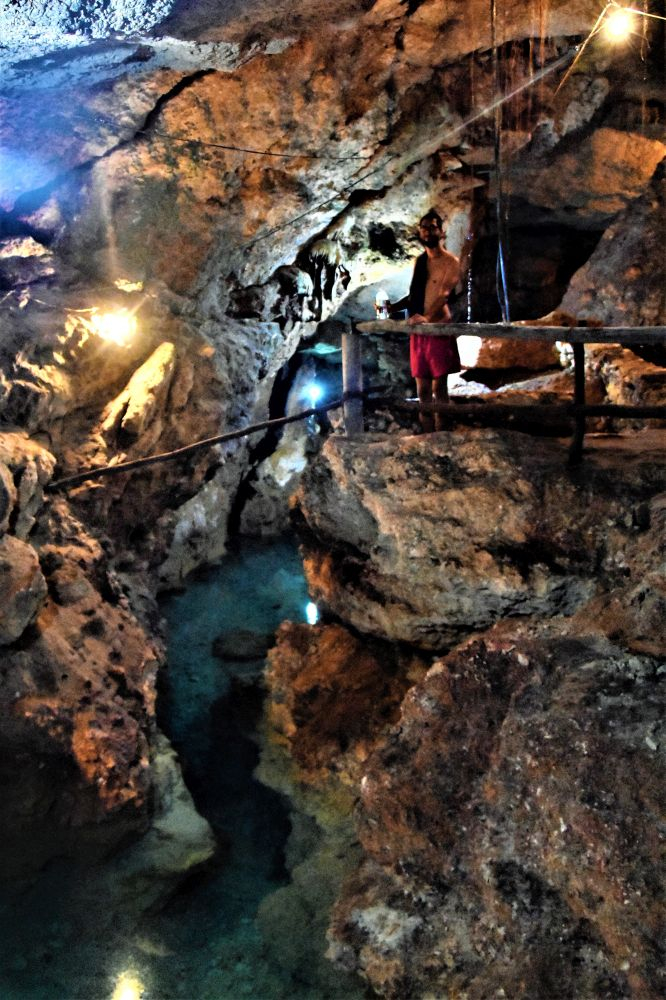 Nach unserem Aufenthalt in Campeche fuhren wir weiter über Merida Richtung Karibikküste, wo wir am 20. September Matthias Eltern in Empfang nehmen können. In dem kleinen friedlichen Ort Honum legten wir einen zweitägigen Zwischenstopp ein. Der Ort ist touristisch wenig erschlossen, bietet aber für Reisende durchaus ein paar tolle Sehenswürdigkeiten. Wir wurden sehr freundlich empfangen und bekamen sogar eine kurze Polizeieskorte zu unserem Übernachtungsplatz mitten auf dem hiesigen Hauptplatz. Der Polizist war so überfreundlich als wir nach einem geeigneten Stellplatz für Erwin fragten, dass er sich gleich auf sein Motorrad schwang. Wir erfuhren dann auch noch von den Beamten, dass in dieser Region nur Maya leben und es die kommenden beiden Tage ein großes Fest am Plaza de la Independencia gibt. Das wollten wir uns natürlich nicht entgehen lassen. Davor wollten wir aber noch unsere erste Cenote besuchen. Als Cenote werden hier in Mexiko, speziell auf der Yucatan Halbinsel, Höhlenartige Krater mit Süßwasser bezeichnet. Man kann darin meist schwimmen, Schnorcheln und mit Glück Fische und Schildkröten beobachten. Diese Cenoten sind überall auf der Halbinsel verstreut und angeblich Zeugen des Urknalls (Theorie nicht bewiesen). Wir marschierten also früh am Morgen los zu einer nahe gelegenen Cenote. Wobei es sich hierbei mehr um eine Gruft handelte. Die Gruta de Candelario ist eine ca. 10 Meter tiefe Höhle in der mehrere Süßwasserbecken entstanden sind. Das Wasser wird unterirdisch gespeist und bleibt somit immer sauber und auf gleichem Niveau. Es ist glasklar und zu den ständigen schwülen 35°C eine willkommene Abkühlung. Wir erkundeten die Höhle und genießen das kalte Nass. Stephanie traute sich recht weit in die verwinkelten engen Gänge der Höhle vor und machte ein paar schöne Fotos von den Stalaktiten und Stalagmiten. Der Besitzer des Grundstücks, auf dem die Gruft entdeckt wurde, baute zudem sein Gelände mit Swimmingpools, Duschen, Hängematten und schönen Plätzen zum Verweilen aus. Den Platz für unsere zweite Nacht fanden wir aber dann vor einem kleinen Restaurant im Ortskern. Nach einem leckeren Abendessen mit typischer Yucatan-Küche durften wir dort kostenlos auf dem Parkplatz übernachten und sogar den hauseigenen Pool sowie die Toiletten und Duschen benutzen. Nachdem es schon Samstagabend war, machten wir uns auf den Weg zum zentralen Plaza, da die große Party zum Unabhängigkeitstag schon in vollem Gange war. Wir kamen gerade rechtzeitig zum großen Feuerwerk und mischten uns unter die Einheimischen. Eine Live Band spielte tolle mexikanische Musik und die Menschen tanzten und feierten. Wir bekamen noch zwei sog. Tortas geschenkt (Auf Bayrisch: Wurschtsemmel) und dann ging es auch schon wieder zurück zum Erwin. In dem kleinen Dorf und auch in der umliegenden Gegend findet man quasi beinahe alle 200 Meter ein Schild, auf dem wieder einen Cenote angeschrieben ist. So entschieden wir uns noch eine weitere zu besichtigen. Wirklich jedes dieser Wasserlöcher ist für sich ein Wunder und wieder ganz anders als die zuvor besucht. Aus diesem Grund lassen wir einfach unsere Bilder sprechen.