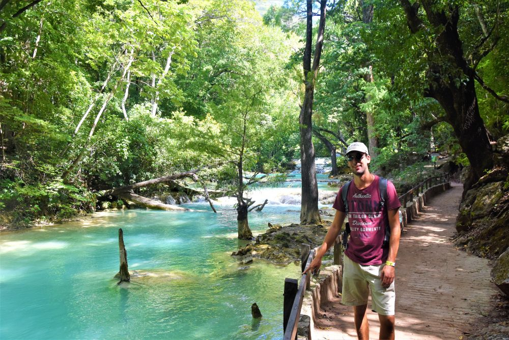 Nach einer letzten Nacht in Palenque brachen wir am nächsten Tag auf zur MEX307, die von Palenque nach Comitan führt. Allerdings über einen etwas längeren Weg, entlang der guatemaltekischen Grenze. Wir wählten die Strecke zum einen deshalb, weil wir die MEX199 nach San Cristobal vermeiden wollten (es handelt sich um die Straße auf der zwei Radfahrer vor einiger Zeit ermordet wurden und bewaffnete Raubüberfälle sowie gesperrte Straßen keine Seltenheit sind, auch das Auswärtige Amt warnt vor dieser Strecke) und zum anderen hatten wir von anderen Reisenden gehört, dass die MEX307 landschaftlich wirklich lohnenswert sein soll. Das Gebiet ist recht dünn besiedelt, doch bietet immer wieder tolle Stellplätze entlang einiger Flüsse oder Seen. Wir haben unsere Entscheidung jedenfalls nicht bereut und können die Strecke allen Reisenden uneingeschränkt weiterempfehlen.