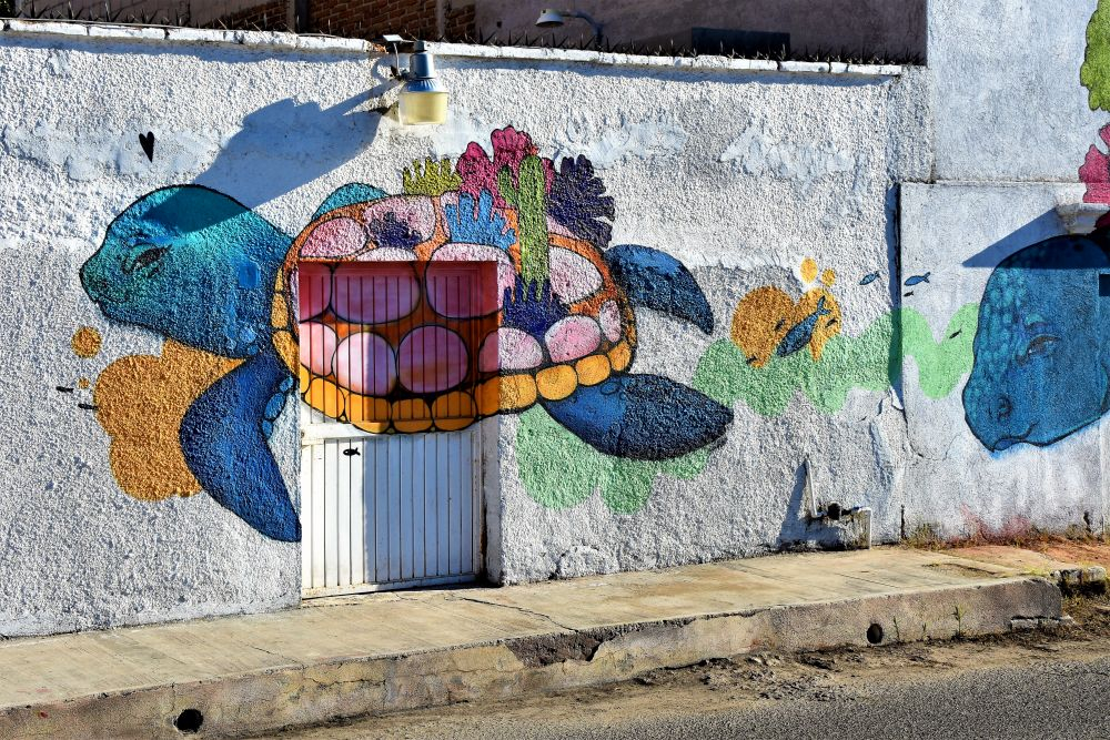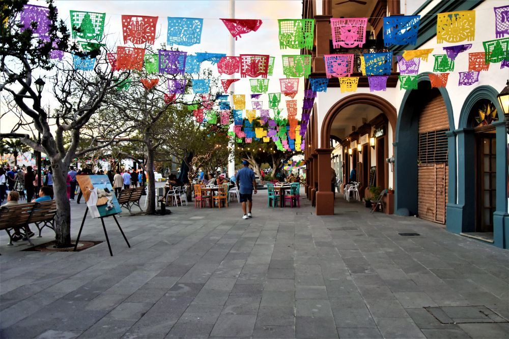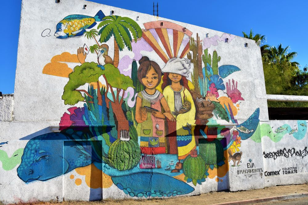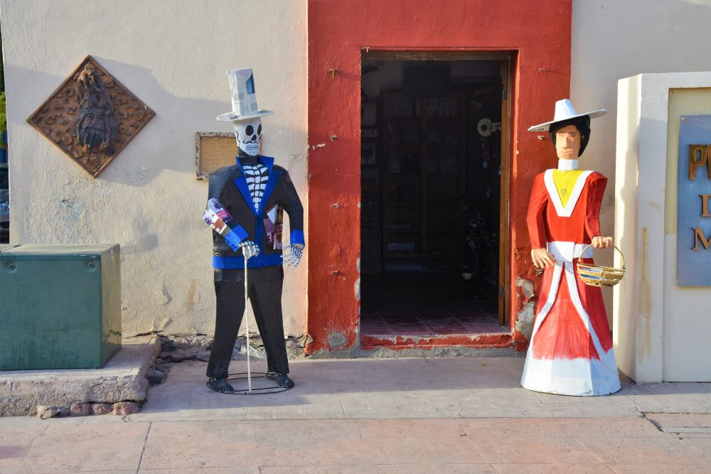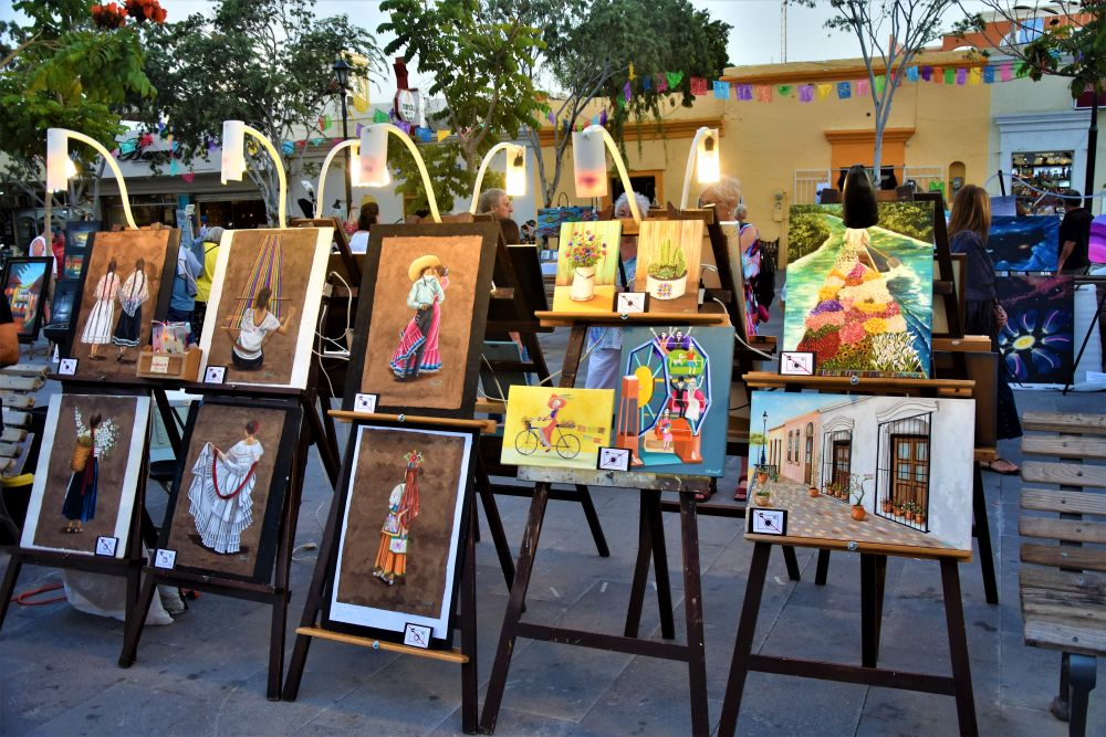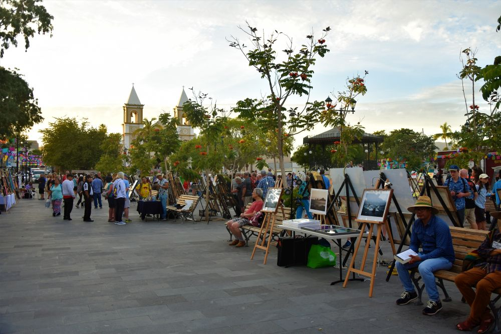 Bevor wir uns langsam Richtung Norden aufmachten, wollten wir erst noch den südlichen Teil der Insel erkunden. Nach einem Übernachtungsstopp in der Nähe von Todos Santos ging es weiter Richtung Cabo San Lucas. Wir hatten zeitweise schon den Eindruck eher in den USA zu sein als in Mexiko. Egal ob bei Einkaufen oder am Strand, überall hörten wir die Leute Englisch reden und auf den Straßen begegneten uns neben amerikanischen Nummernschildern nun auch unzählige dieser riesigen Mobilehomes samt Auto im Schlepptau. Für die Amerikaner und Kanadier ist es natürlich der ideale Ort um dem Winter zu entfliehen und schnell ins Warme zu kommen. Bei Cabo San Lucas handelt sich quasi um die „touristische Hauptstadt“ von Baja. Sie ist bekannt für die zahlreichen Ausgehmöglichkeiten… entsprechend sind auch die Preise dort. Wir wollten eigentlich nur einen kurzen Zwischenstopp machen und uns die berühmten Felsformationen ansehen. Leider sind diese nur vom Boot aus erreichbar und über genau diese Bootstouren in San Cabo hatten wir noch nicht viel Gutes gehört. Daher entschieden wir uns für eine nicht ganz offizielle Wanderung entlang der Klippen. Ganz schön anstrengend in der Sonne, aber wir wurden mit einem tollen Blick über die Stadt und die tollen, sauberen Strände belohnt. Ansonsten hielt uns aber hier nichts und wir machten uns im Anschluss noch nach San Jose del Cabo auf. Leider blieb es recht touristisch, jedoch gibt es hier in der Hauptsaison jeden Donnerstag einen Künstlermarkt, den wir uns nicht entgehen lassen wollten. In der Abenddämmerung konnten wir uns dann die Bilder der Aussteller ansehen.