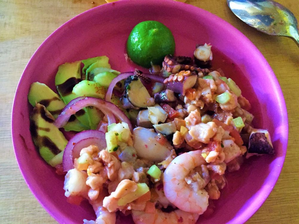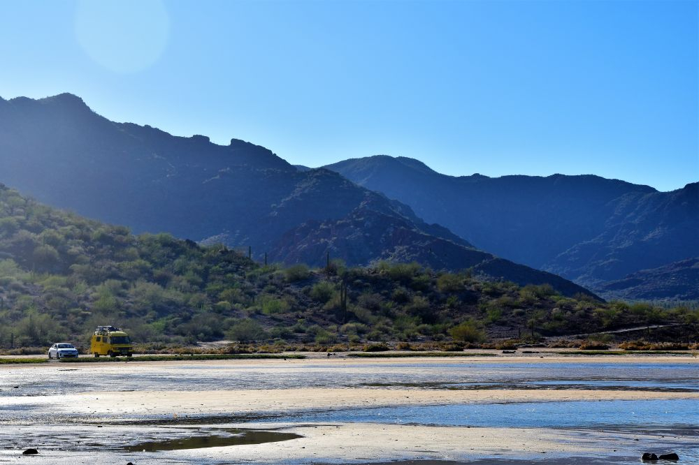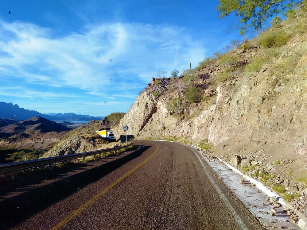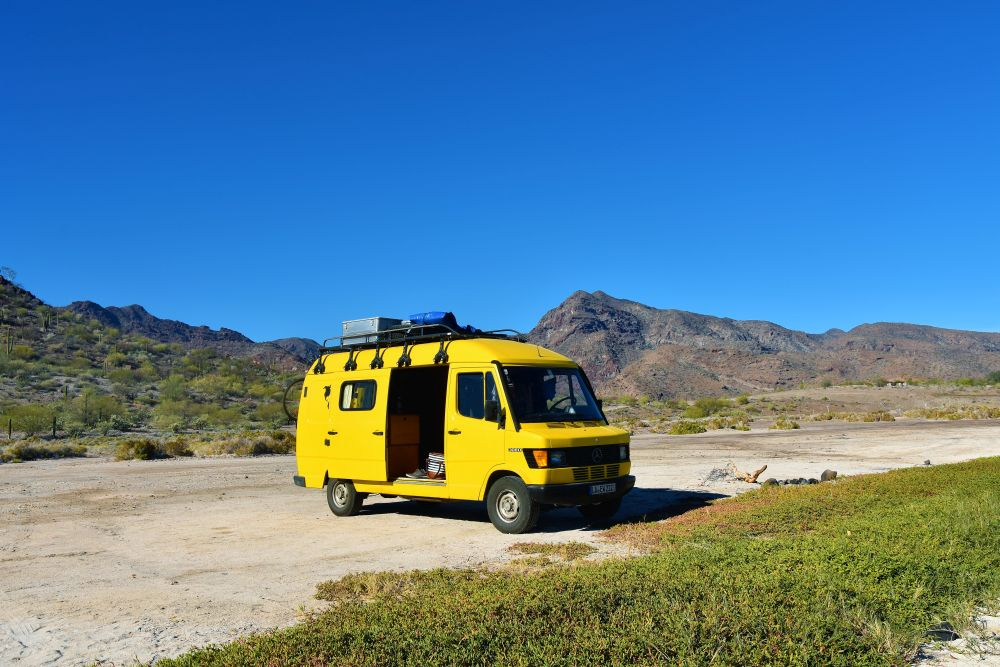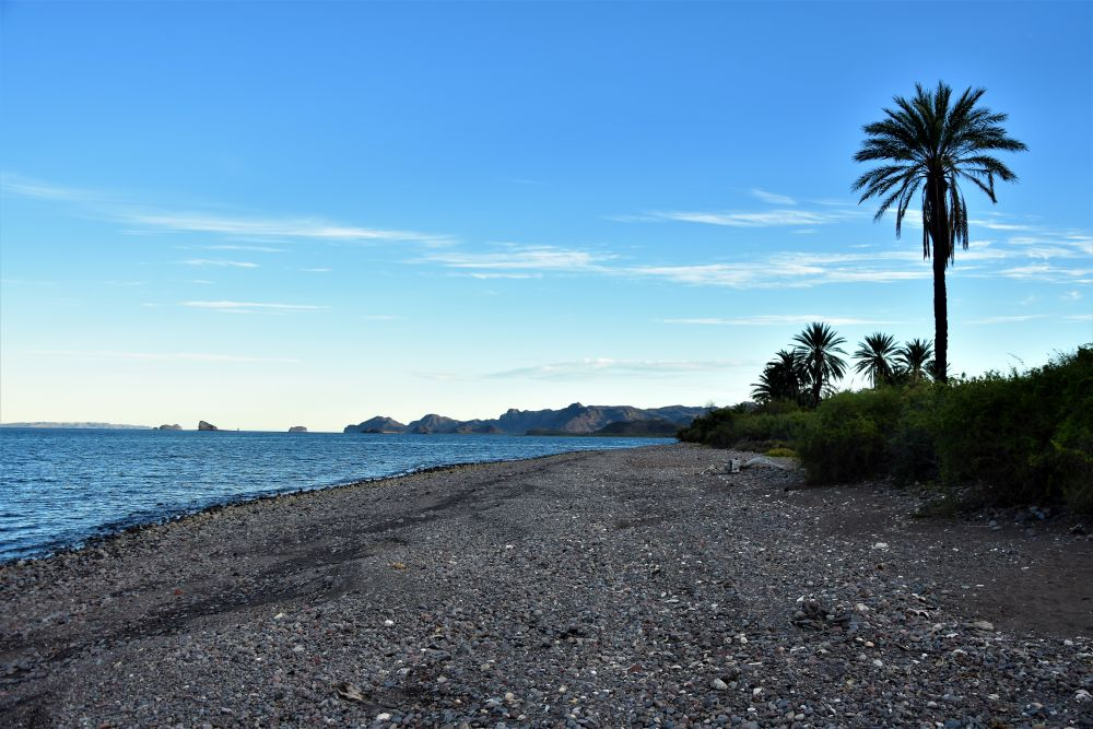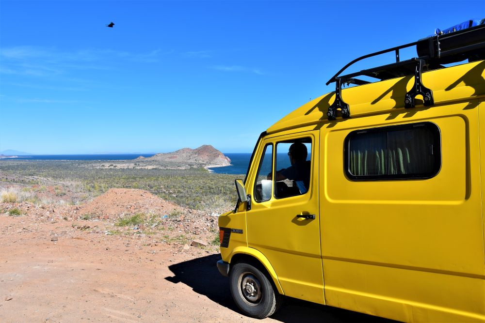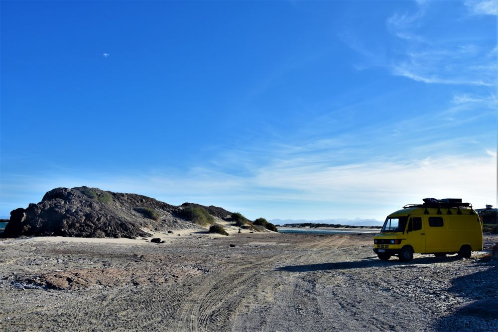 In Loreto angekommen füllten wir erst mal Vorräte auf, tankten Wasser und Diesel. Dann schlednerten wir ein bisschen durch das kleine Städtchen und schauten uns die Missions-Kirche „Misión de Nuestra Senora de Loreto Conchó“ von 1697 an. Unweit des Zentrums bezogen wir unseren Schlafplatz, wieder mal mit herrlichem Meerblick. Am nächsten Tag stärkten wir uns noch mit unserem neuen Lieblingsessen (Tacos wahlweise mit Shrimp oder Fisch) und machten uns auf den Weg zur Bahia Concepcion. Eine gut asphaltierte sonnige Küstenstraße und ein wunderschönes Meer mit vielen kleinen Inseln umrahmt von Bergen – da macht das Fahren einfach richtig viel Spaß. Es brauchte allerdings recht lange bis wir einen geeigneten Schlafplatz für die Nacht gefunden hatten. All unsere anvisierten Stellplätze waren entweder überbevölkert mit amerikanischen Superluxus-Mobilehomes oder schlichtweg zu teuer. Letzten Endes fanden wir aber dann doch wieder einen tollen Platz direkt am Meer für unsere „sieben Zwetschgen“.