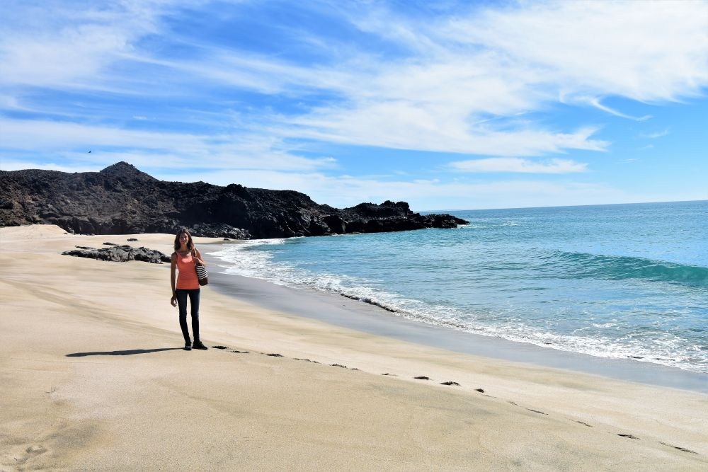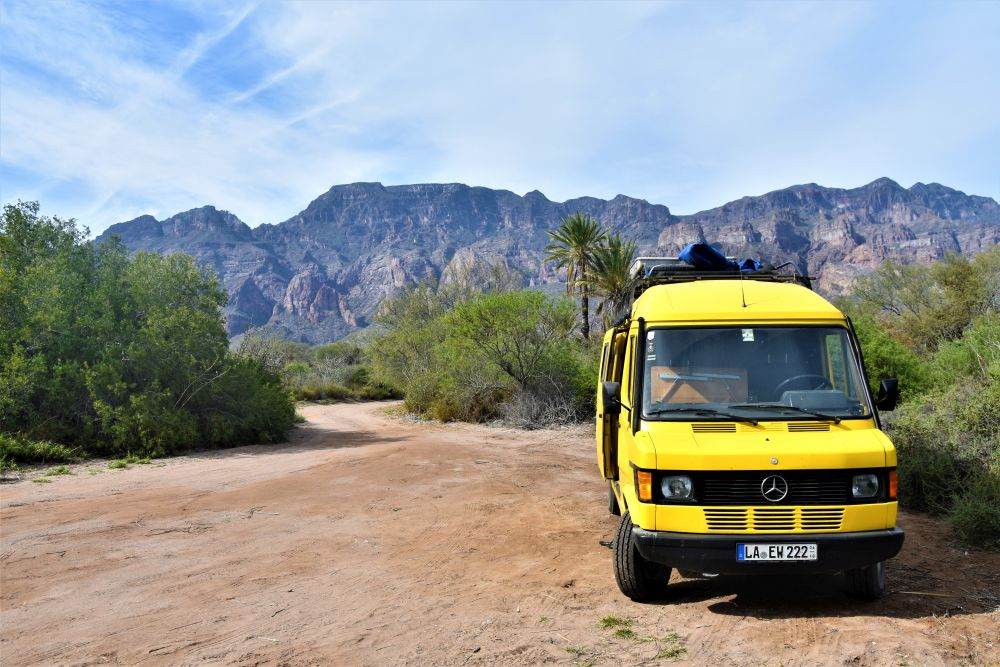 Auf unser nächstes Ziel „Punta Chivato“ freuten wir uns umso mehr, da es dieses mal wirklich so weit ab von Schuss war, dass wir zum ersten Mal einen Platz für uns alleine hatten. Leider machte uns weiterhin der Wind einen Strich durch die Rechnung. Wir versuchten dem Ganzen zu trotzen und verlagerten unsere Mittagspause nach Draußen. Aber so eine Wurstsemmel mit Sandbeilage… das macht nicht wirklich Spaß. Der Sand war wirklich überall. Aber das ist natürlich alles Meckern auf hohem Niveau und somit wollten wir uns auch einen Spaziergang in der schönen Umgebung nicht nehmen lassen. Wir waren absolut begeistert von unserem Platz! Auf dem Weg kamen wir auch noch an dem kleinen Ort San Ignacio vorbei, der mit seiner Missionskirche wirklich einen Stop Wert ist. Es handelt sich dabei um eine Oase mitten in der Wüste. Man fährt stundenlang durch trockenes Gebiet und landet dann plötzlich in diesem grünen Fleckchen Erde. Ein echter Geheimtip!