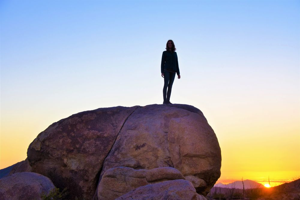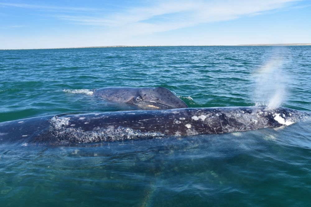 Ojo de liebre ist einer von drei Orten auf der Insel, die für Whalewatching bekannt sind. Die „Wal-Mamas“ schwimmen von Alaska bis nach Mexiko und bringen hier ihre Jungen zur Welt. Sie bleiben dann mit ihnen in der Bucht bis die Kleinen groß genug sind um ins offene Meer zu schwimmen. Wir haben schon im Vorfeld gehört, dass es sich hier um einen besonderen Ort handelt und die Giganten manchmal bis auf ein paar Zentimeter zu den Booten kommen. Natürlich wollten wir uns das nicht entgehen lassen. Wir kamen erst spät abends an, aber waren sofort von unserem Stellplatz und der Abendstimmung begeistert. Von unserem Frühstück aus konnten wir am nächsten morgen auch schon die Wale pusten hören und die Wasserfontänen aus dem Wasser spritzen sehen. Dies sind sind solche Momente in denen wir uns einfach nur glücklich schätzen, wie schön unsere Welt ist und was wir für ein Glück haben, diese Reise machen zu können. Natürlich wollten wir die Wale auch gerne vom Boot aus sehen, aber als wir vor Ort von dem stolzen Preis von 50 Dollar pro Nase für die Tour hörten, waren wir uns beide einig, dass wir uns das lieber sparen, da wir ja schon in Südamerika die Gelegenheit hatten, Wale bei einer Bootstour zu beobachten. Etwas traurig waren wir schon, aber das war uns dann doch einfach zu viel Geld. Als wir dann unsere „Stellplatz-Nachbarn“, Heather und Rick, kennenlernen durften, konnten wir unser Glück nicht fassen als uns die beiden nach einem kurzen Ratsch zu der Waltour einluden. Rick sage, dass wir hier unmöglich ohne dieses Erlebnis wegfahren können. Nur eine Stunde später saßen wir zusammen in einem Boot und zwar nur wie Vier! Ein unglaublicher Glücksfall, da wir so einen freien Blick nach allen Seiten hatten und uns frei auf dem Boot hin und her bewegen konnten. Unsere Fahrt dauerte nicht lange und es war einfach wirklich unglaublich. Wir waren quasi umzingelt von Walen und teilweise wussten wir gar nicht mehr, wo wir hinsehen sollten. Wir hätten uns manchmal einen Eulenkopf gewünscht den man einfach beliebig drehen kann… Es war so beeindruckend die Wal-Mamas mit ihren zum Teil nur wenige Tage alten Jungen zu beobachten. Der absolute Höhepunkt unseres Trips war aber dann als eine Wal-Mama mit ihrem Baby wirklich direkt zu unserem Boot kam, fast so also wollte sie uns ihr Junges zeigen. Beide tauchten sie seitlich von unserem Boot auf und machten dann eine Drehung und schwammen unter uns davon. Rick gelang es sogar für einen kurzen Moment sie zu berühren… so nahe waren sie uns. Am liebsten hätten wir auf dem Boot übernachtet, aber irgendwann ging es aber dann leider doch zurück. Bei der Rückfahrt hatten wir auch noch das Glück, dass drei Define direkt neben uns her sprangen (leider war zu diesem Zeitpunkt die 8GB Speicherkarte schon voll). Es war nicht zu vergleichen mit einer unser bisherigen Touren und wir sind Heather und Rick unendlich dankbar, dass sie uns das ermöglicht haben. Mit den Beiden hatten wir wieder einmal unglaublich herzliche Menschen getroffen und nach einem gemeinsamen Essen, luden uns die Beiden auch noch zu sich nach Phoenix ein. Wir konnten es kaum erwarten die Zwei in ihrer Heimat wiederzusehen. Wir blieben noch eine weitere Nacht an diesem magischen Ort und genossen dieses mal wirklich herrlichstes Wetter ganz ohne Wind – sogar ein kleines Lagerfeuer konnten wir am letzten Abend noch machen.
