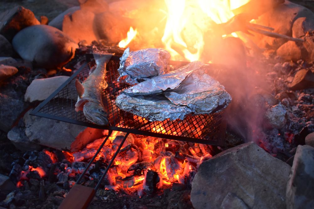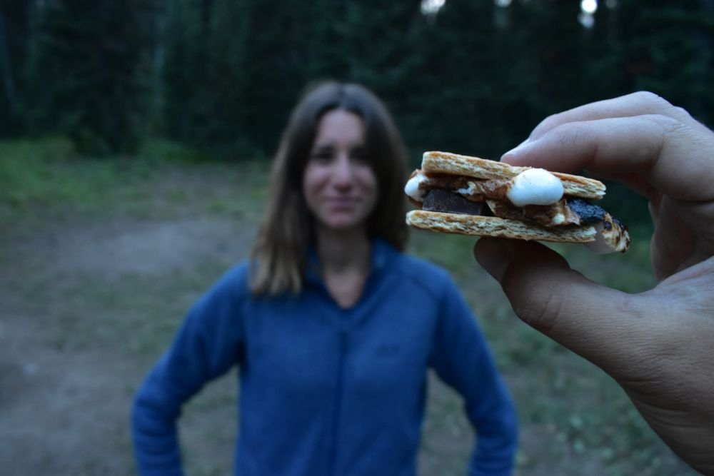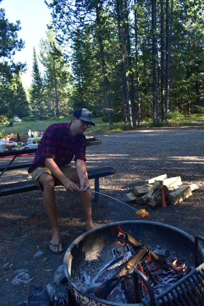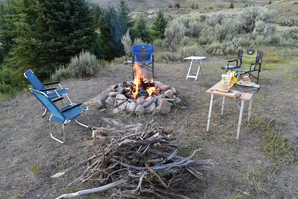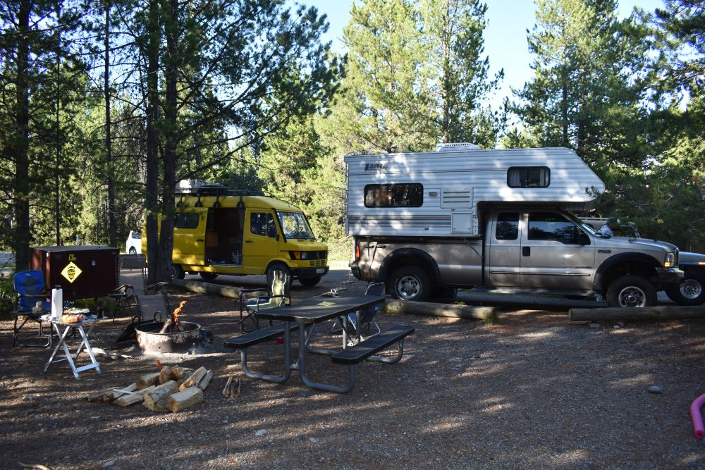 Am Abend unseres Abschiedes waren wir dann irgendwie ganz komisch drauf. Natürlich freuten wir uns auf die letzten Wochen unserer Reise, dennoch sind solche Abschiede immer mit einem faden Beigeschmack behaftet. Die Stellplatzsuche gestaltete sich dann der Stimmung entsprechend – wir fanden schlichtweg keinen. Erst nach etlichen Kilometern entlang der Grassy Lake Road tat sich ein geeigneter (und vor allem freier!) Stellplatz auf. Der war aber dafür wieder mal bombastisch, mit eigener Feuerstelle, Toilette und Campinggarnitur. Wir verbrachten dann die restlichen Stunden noch mit Feuerholz sammeln, gemütlich Kochen und der neuen Nachspeise über offenem Feuer – S´mores. Für alle die neu sind, S´mores sind zwei Cracker, in der Mitte ein gerösteter Marshmallow und ein Stück Zartbitterschokolade. Schmeckt tatsächlich sehr lecker und ist ein toller Gag bei jeder Lagerfeuer-Session 😉