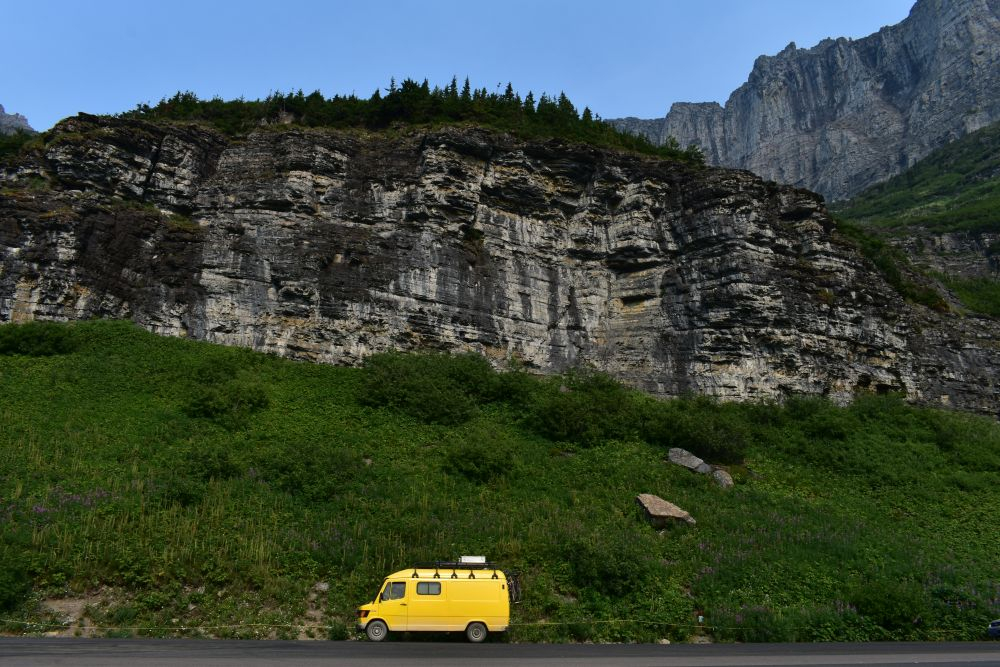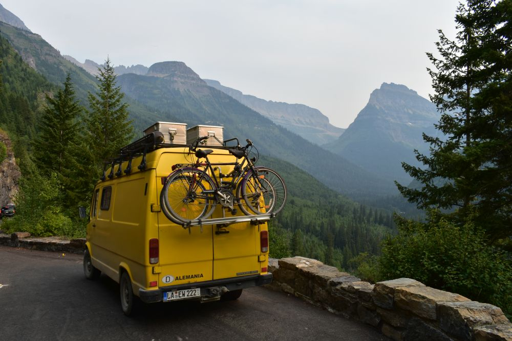 Zurück zu unserem eigentlichen Plan: wir wollten ja den Glacier Nationalpark besuchen. Wir entschieden uns nur den Logan Pass zu fahren und eine längere Wanderung zu machen. Es hätte noch viel mehr Möglichkeiten gegeben, aber am nächsten Tag sollte das Wetter umschlagen. Der Name Glacier Nationalpark ist etwas irreführend. Einen „richtigen Gletscher“ findet man eigentlich kaum mehr, aber die ganze Landschaft wurde von den früheren Gletschern geformt und ist wirklich wunderschön. Wir entschieden uns bis zum Logan Pass Visitor Center zu fahren und dann den Highline Trail zu gehen. Im Nachhinein hätten wir uns nicht besser entscheiden können. Die Wanderung war zwar wirklich lange, aber wir hatten von Beginn an eine wunderbare Aussicht und als Highlight hatten wir noch einen fantastischen Aussichtpunkt am Grinnell Glacier Overlook. Nach acht Stunden wandern, waren wir aber auch froh, als uns ein Shuttle zurück zu unsrem Erwin brachte. Für diesen Tag hatten wir genug Abenteuer.
