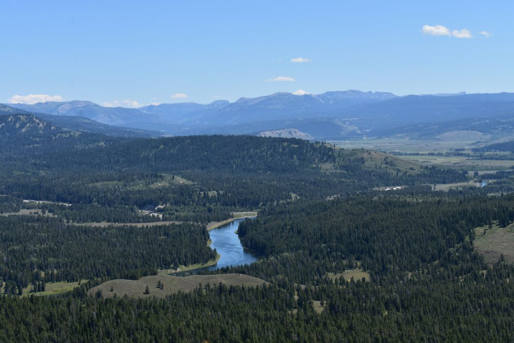 Nun hatten wir den ersten Teil des Yellowstone Nationalparks gesehen. Quasi die Westseite des Achters. Schaut man sich den Park mit Google Maps an, erkennt man die Acht ziemlich deutlich. Nun standen wir am südlichen Ende und verließen den Park um unsere kürzlich gewonnenen Freunde Heather & Rick wieder zu treffen. Die verbringen nämlich jedes Jahr ein paar Wochen in Wyoming im Grand Teton National Park und so machten wir uns auf zum Vereinbarten Treffpunkt – Jackson. In Jackson angekommen erhielten wir dann aber die Nachricht, dass sie in einen „Nahe“ gelegenen Campground gefahren sind und für uns auch einen Platz reserviert haben. Echt cool! Das freute uns total. Auch wenn wir kurz frustriert waren, da wir genau 70km wieder in die Richtung, aus der wir gekommen sind, zurück fahren mussten. Aber hey – was sind schon 70km bei so einer langen Reise wenn man gute Freunde wieder sehen will?