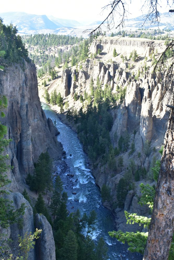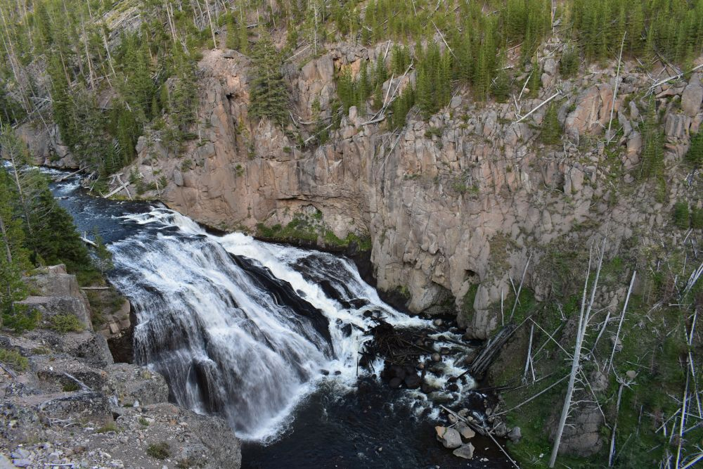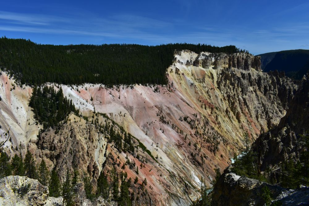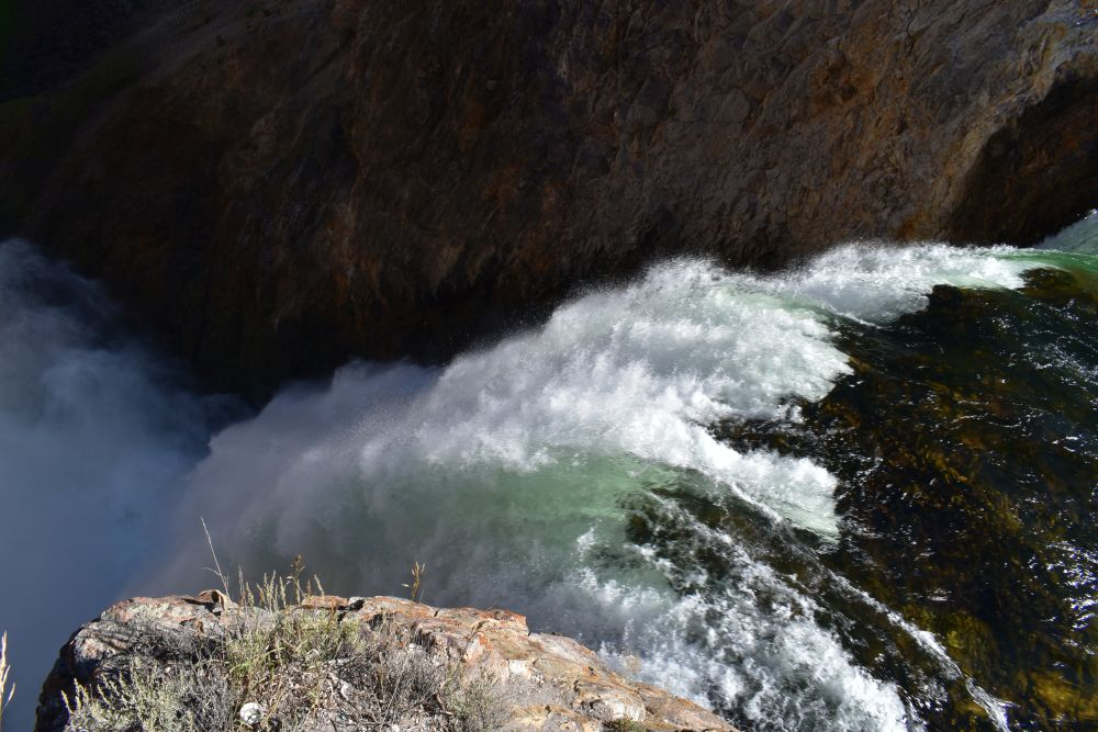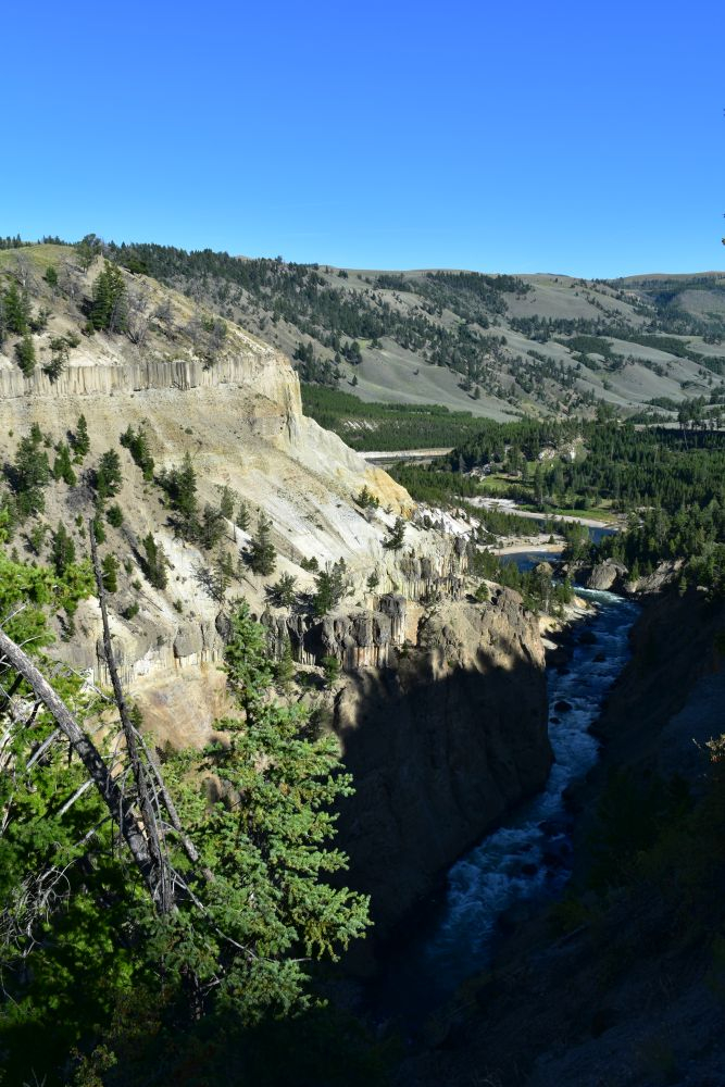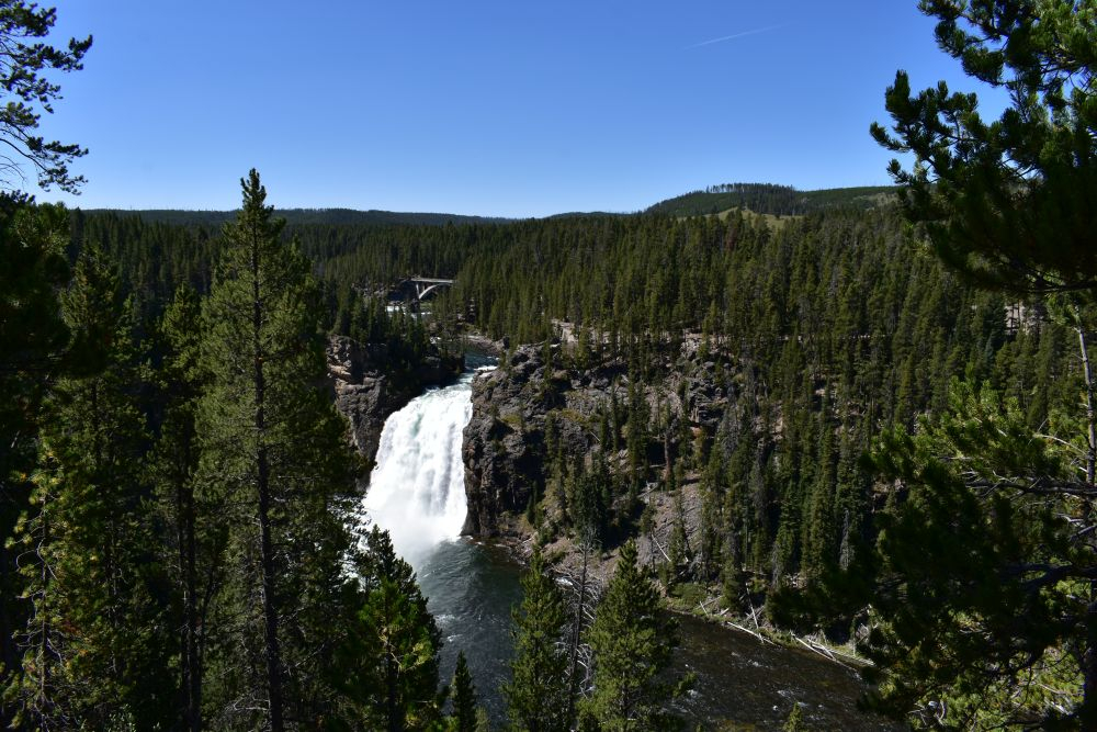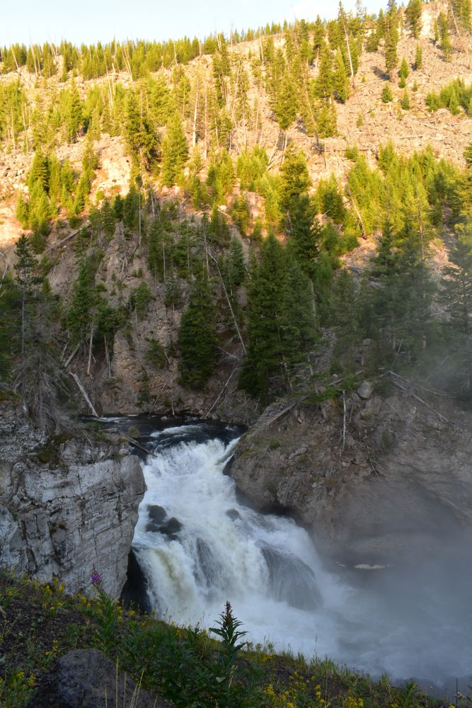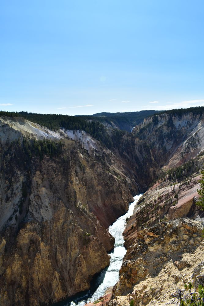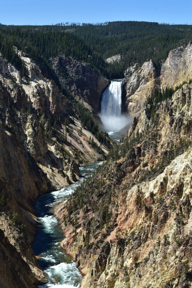 Wir fuhren weiter am Yellowstone River entlang und kamen zu den Upper und Lower Falls. Zwei gigantische Wasserfälle, die nur ein paar hundert Meter nacheinander liegen. Während das Wasser bei den Upper Falls „nur“ etwa 33 Meter in die Tiefe stürzt, sind die Lower Falls mit 94 m Fallhöhe schon deutlich beeindruckender. Die Höhe ist übrigens doppelt so hoch wie die Niagara Fälle. Von den nördlichen Aussichtspunkten bekamen wir einen tollen Blick auf den Wasserfall. Zudem erinnerte uns die farbenprächtige Schlucht an unsere Zeit in Nord-Argentinien.