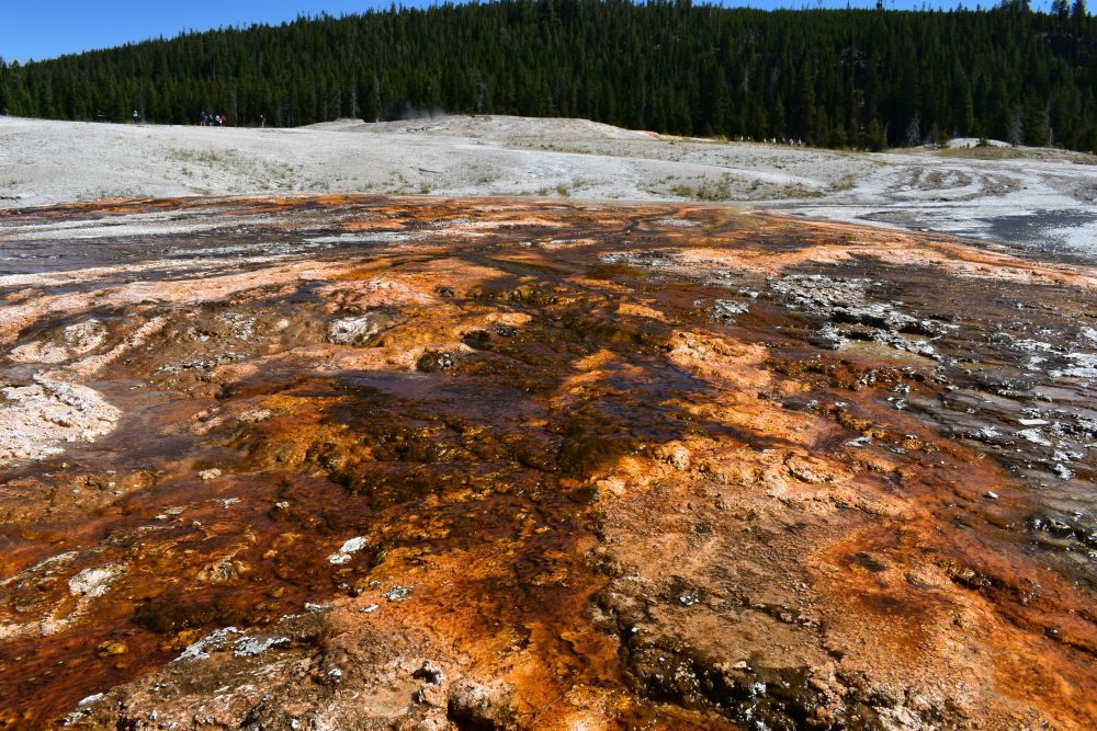 Um den Old Faithful herum gibt es noch viele andere Quellen und Geysire die einen kurzen Besuch wert sind. Unter anderem ein Pool mit besonders hohem Besucher (und Instagram-Selfie-Duckface-Model) Aufkommen – der Morning Glory Pool. Wir hatten echt Mühe ein Foto zu bekommen auf dem kein Selfie Stick zu sehen ist…